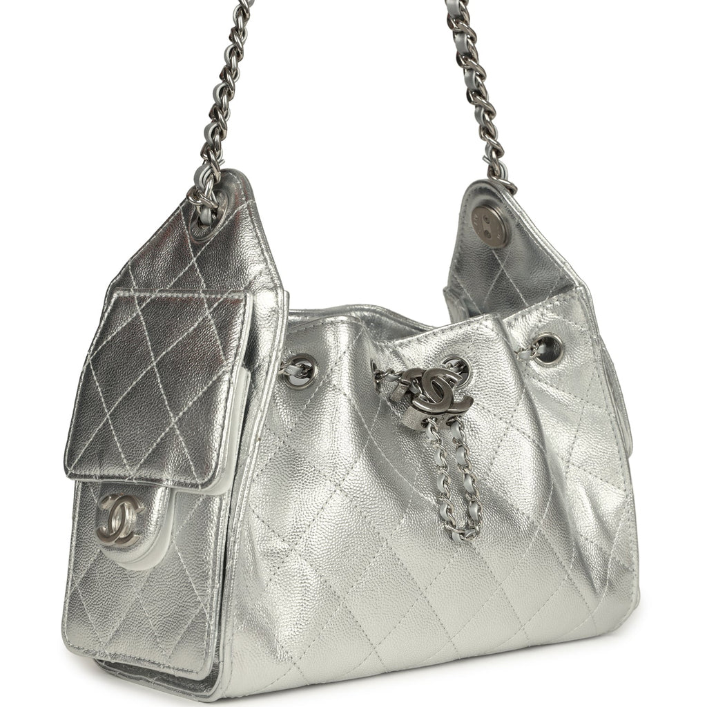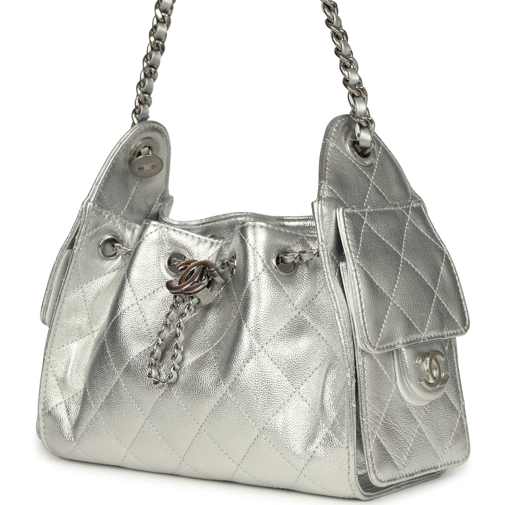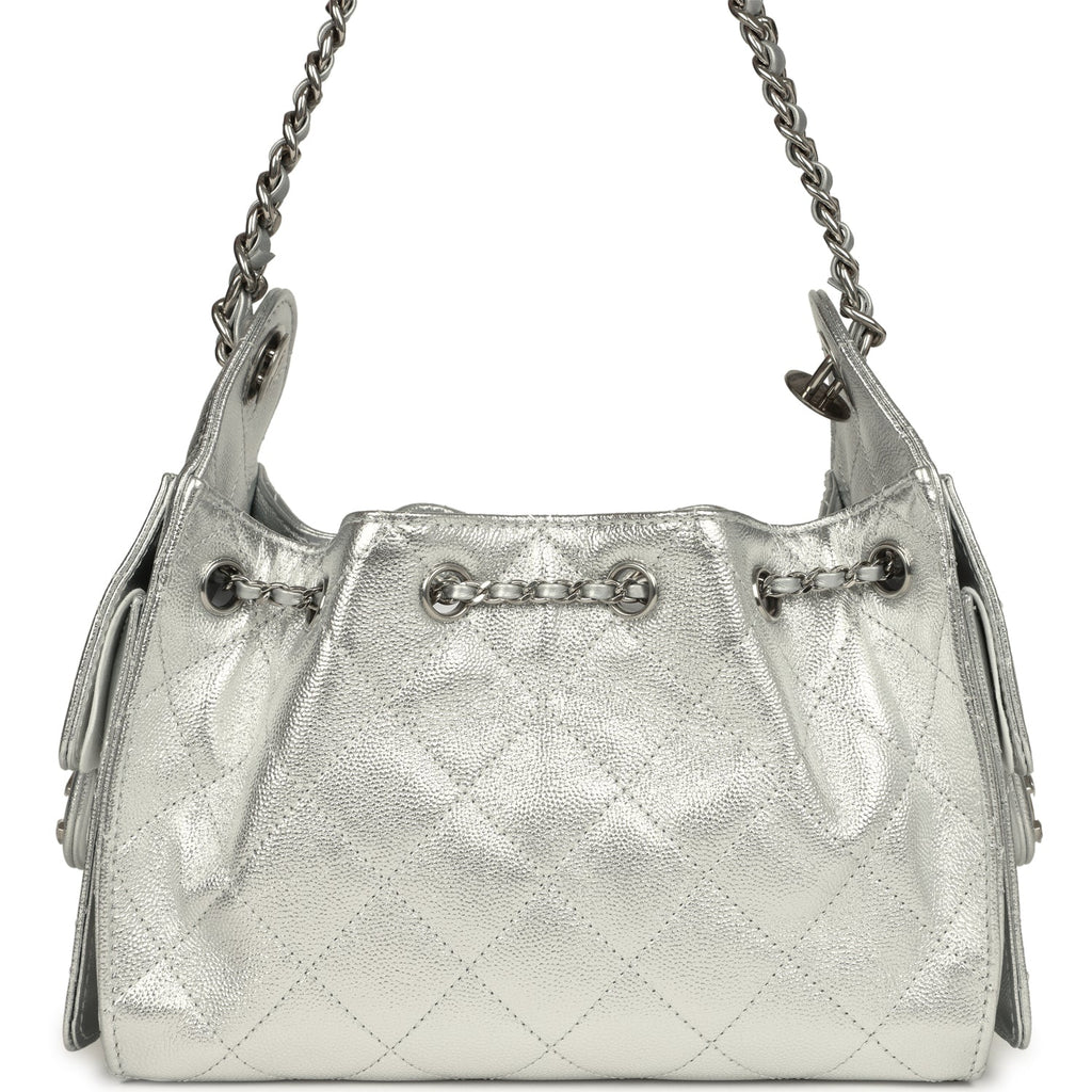 Chanel Mini 25 Hobo Bag Metallic Silver Caviar Silver Hardware