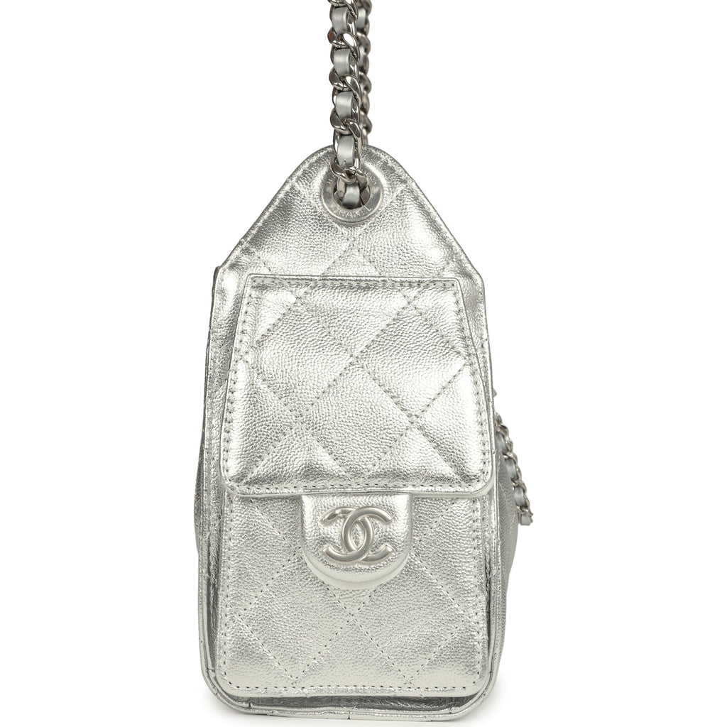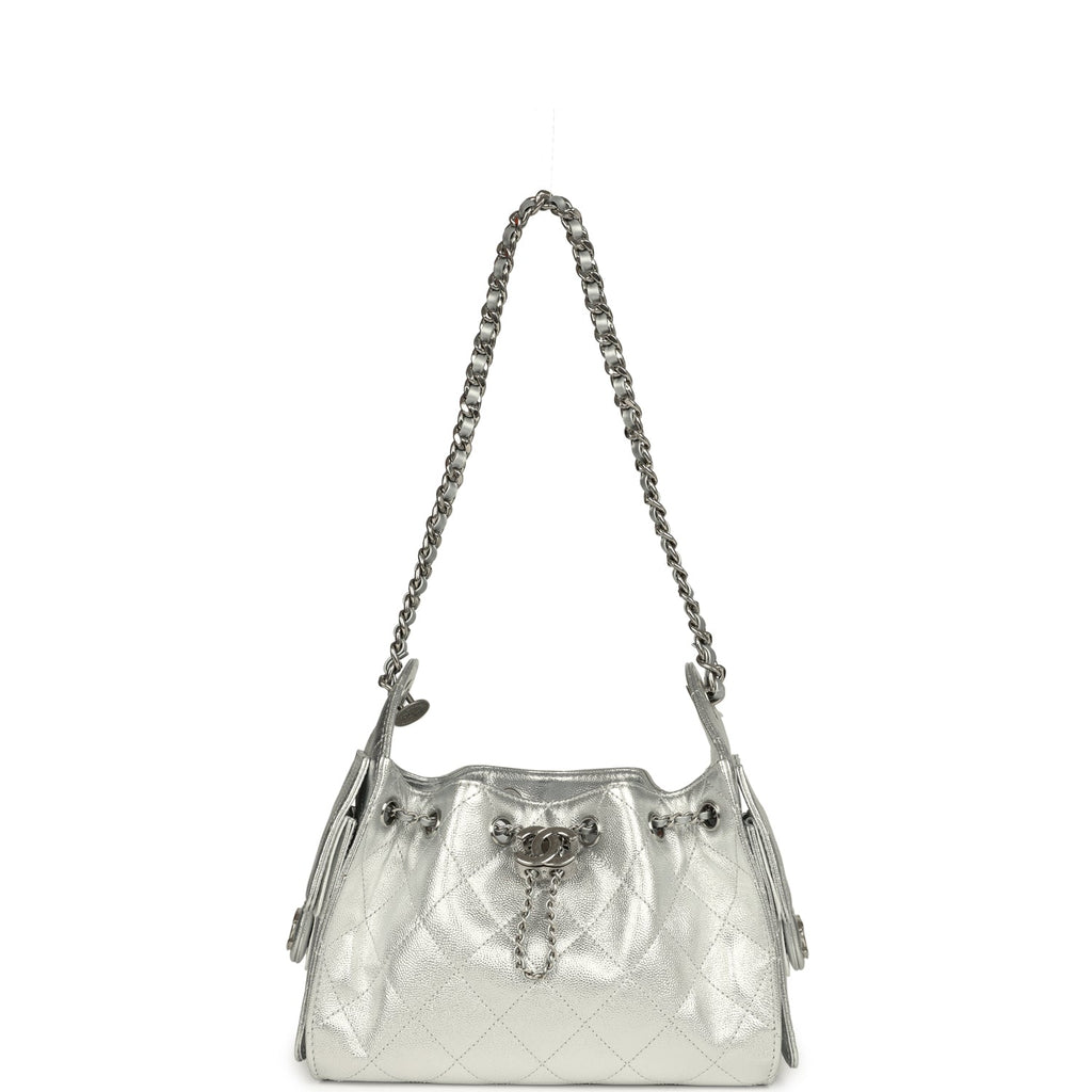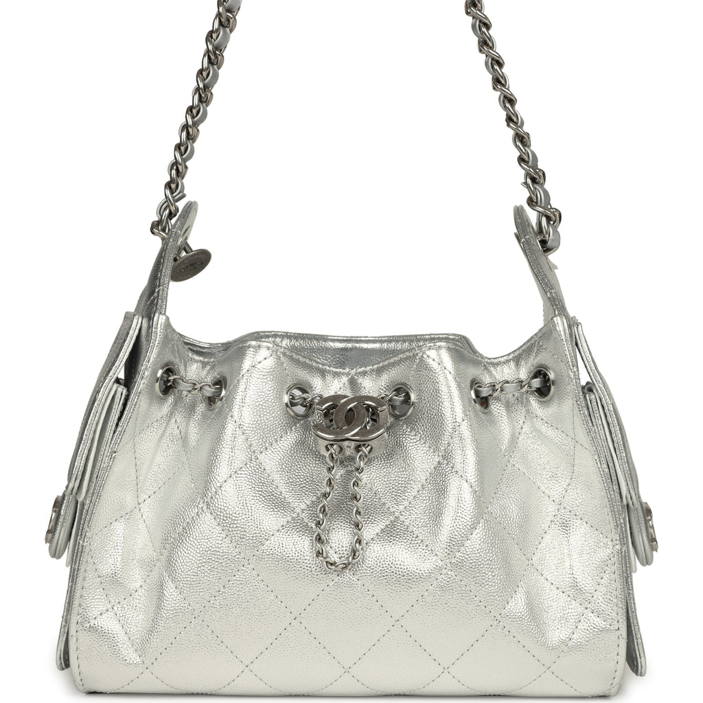 Chanel Mini 25 Hobo Bag Metallic Silver Caviar Silver Hardware