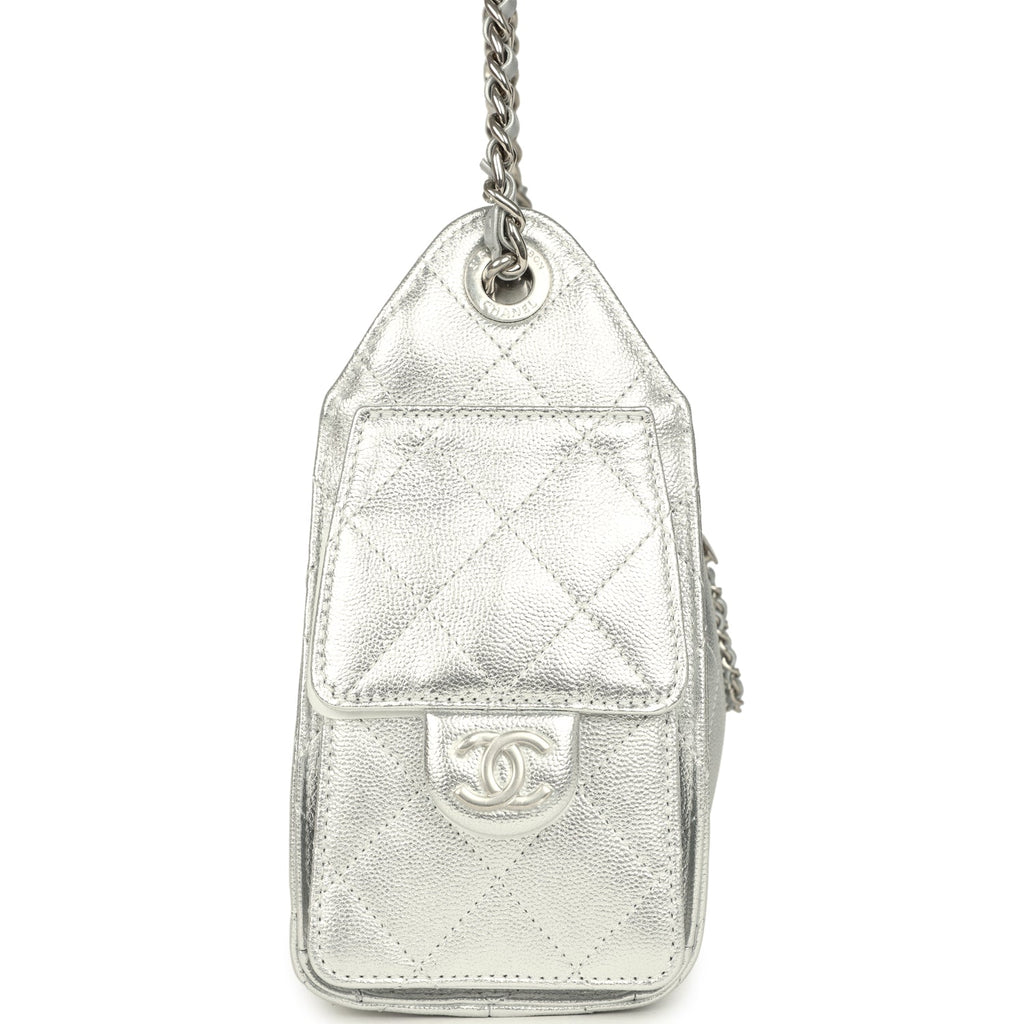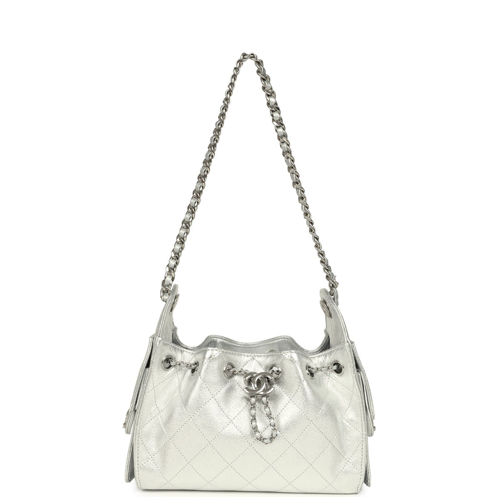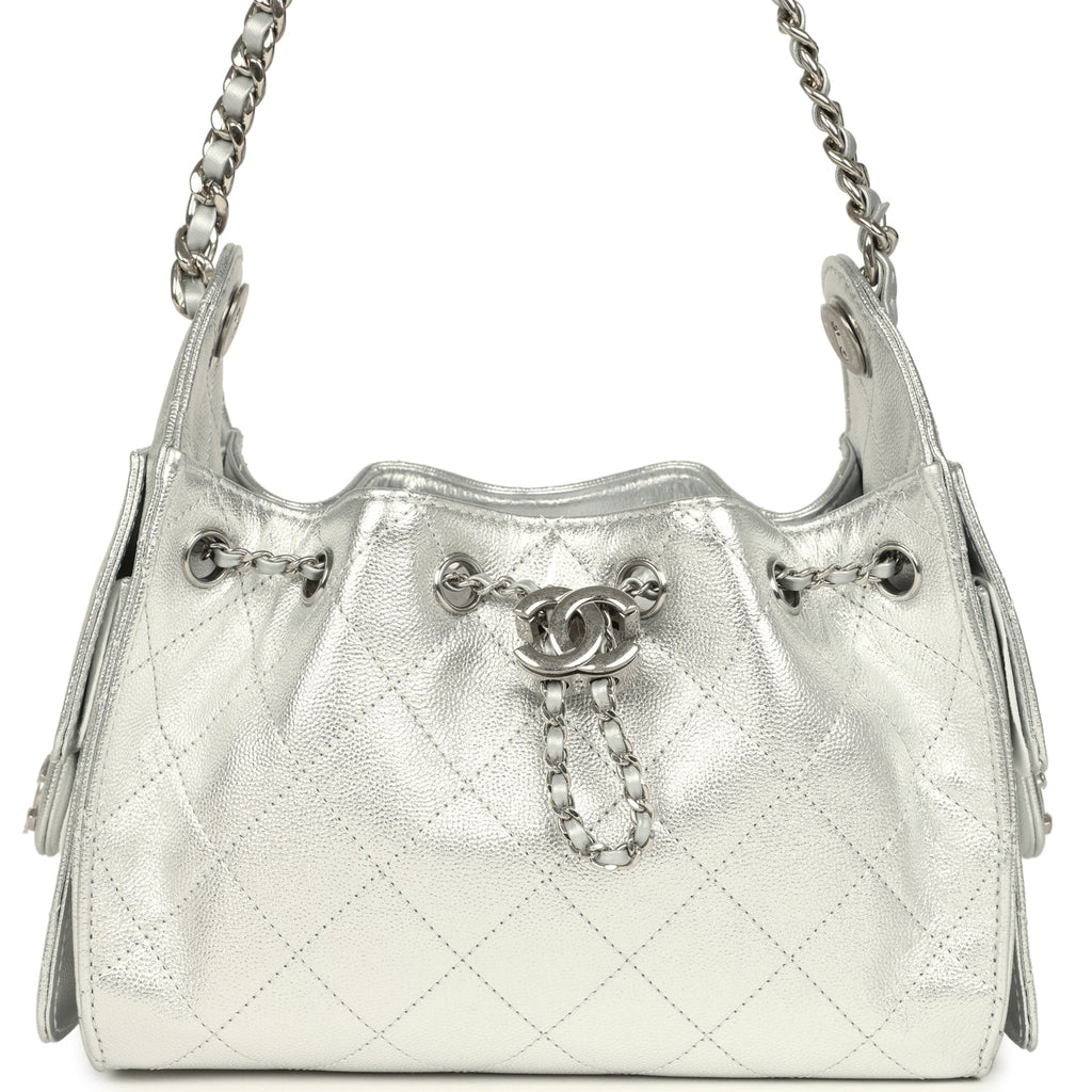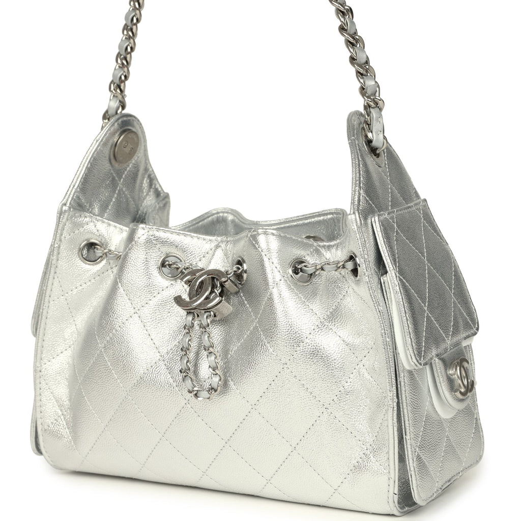Chanel Mini 25 Hobo Bag Metallic Silver Caviar Silver Hardware