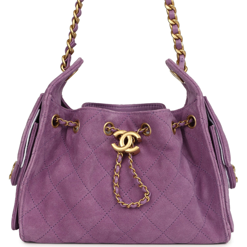 Chanel Mini 25 Hobo Bag Purple Suede Antique Gold Hardware
