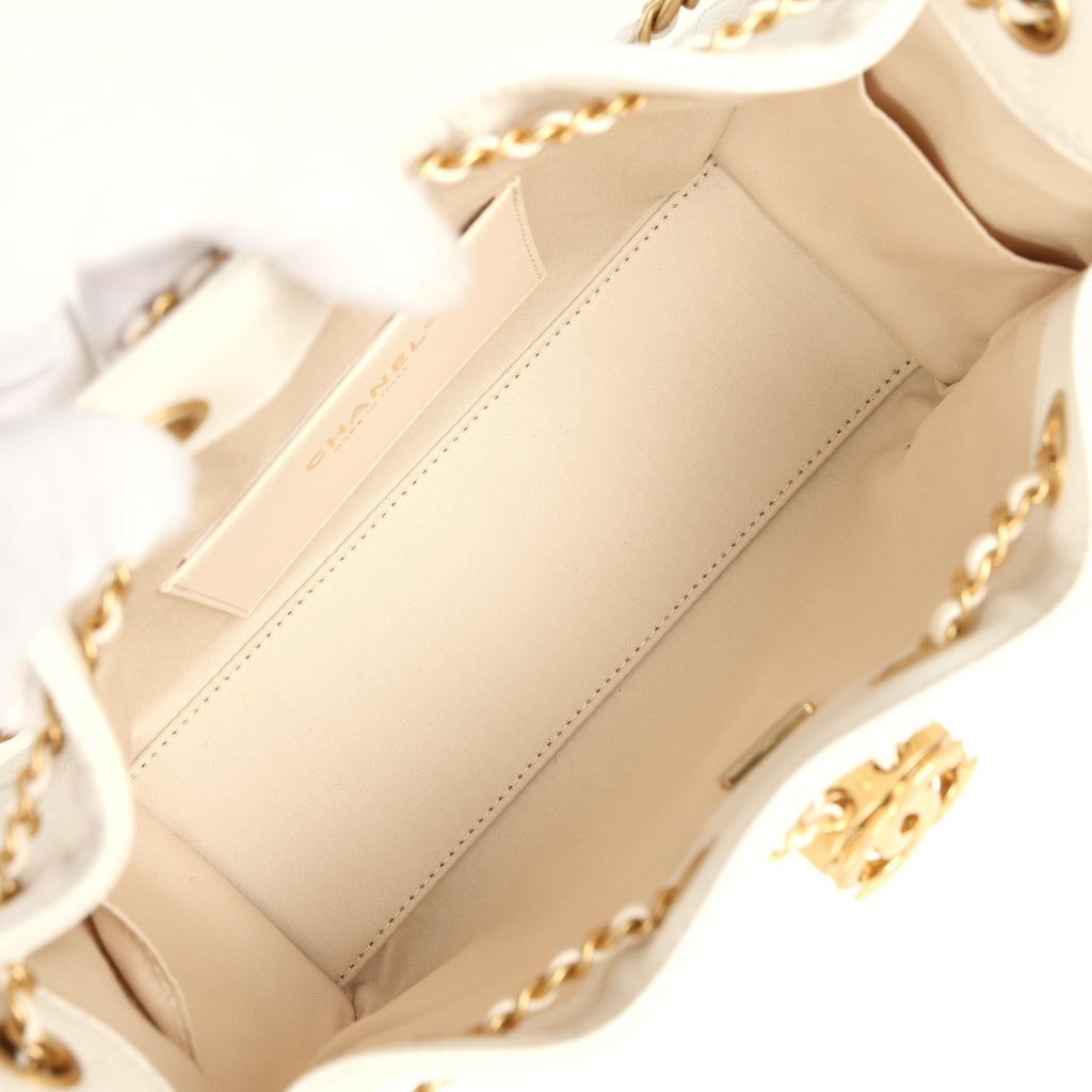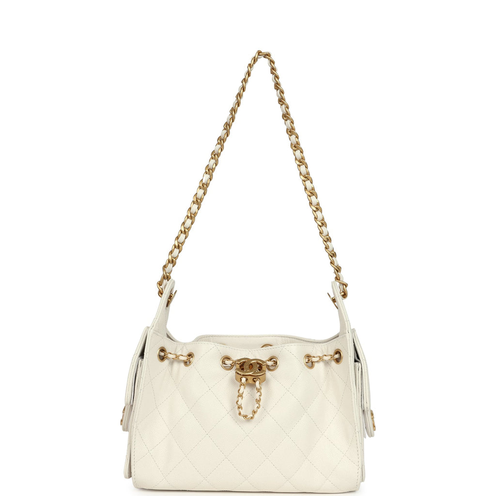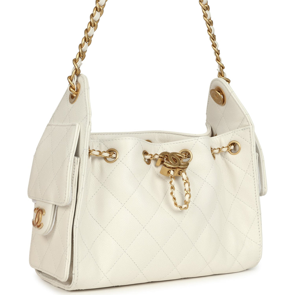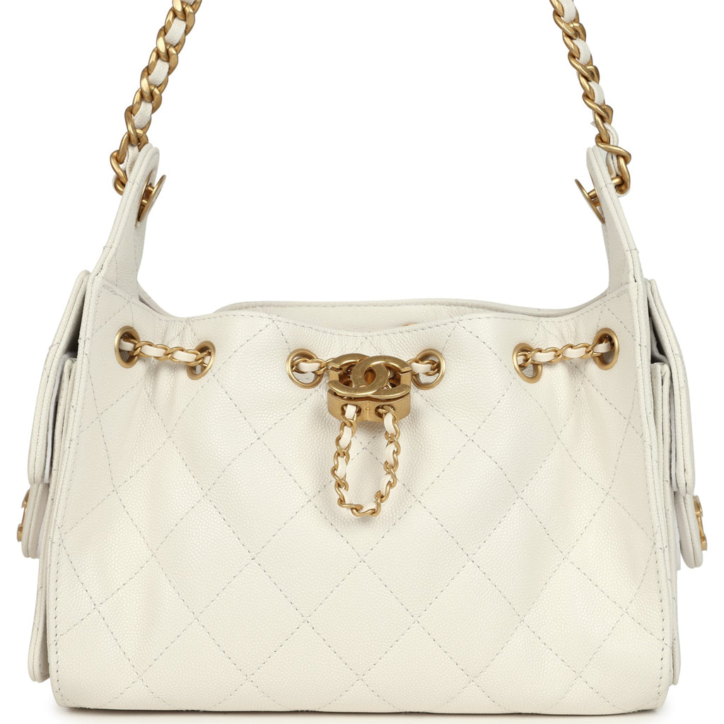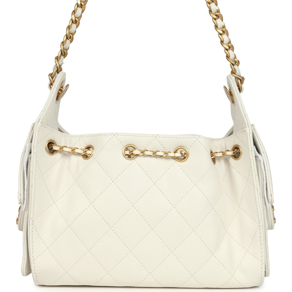 Chanel Mini 25 Hobo Bag White Caviar Antique Gold Hardware