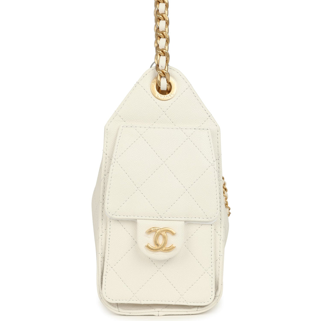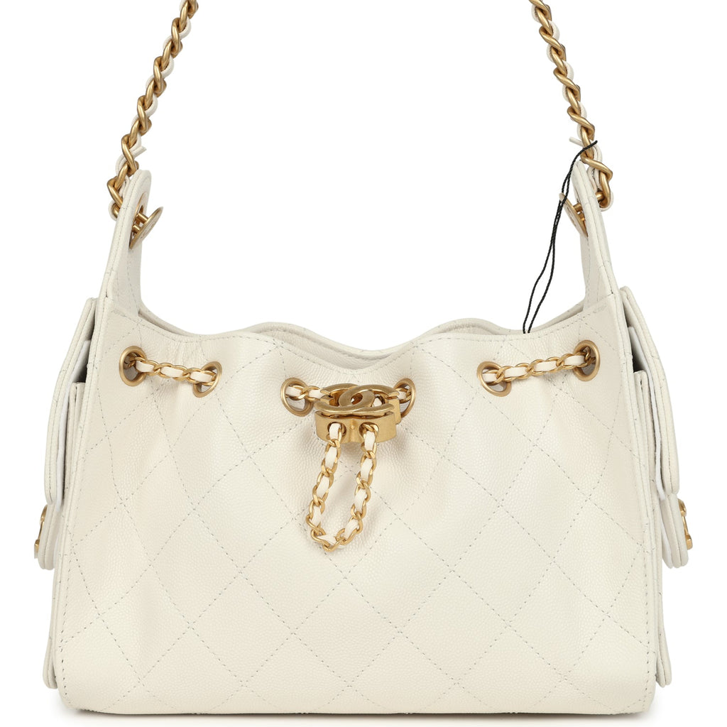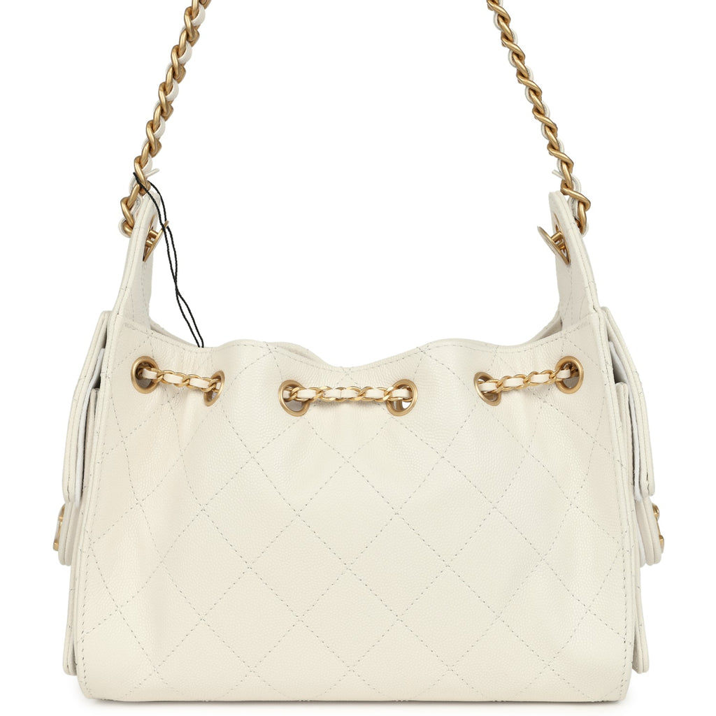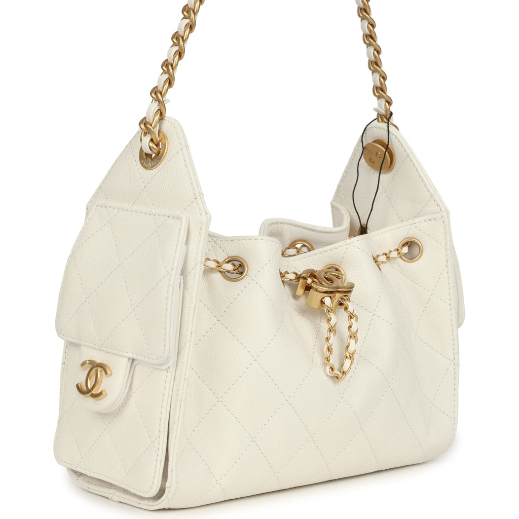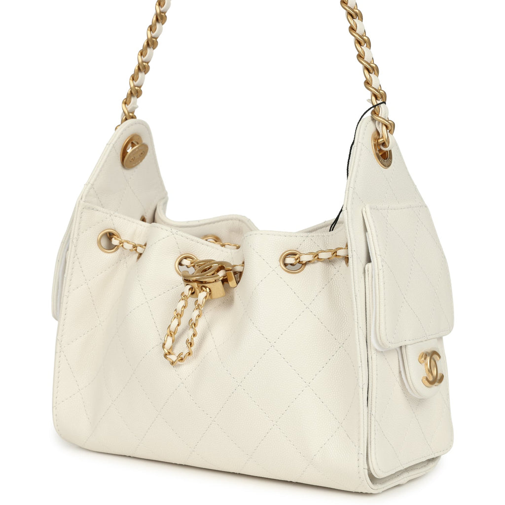 Chanel Mini 25 Hobo Bag White Caviar Antique Gold Hardware