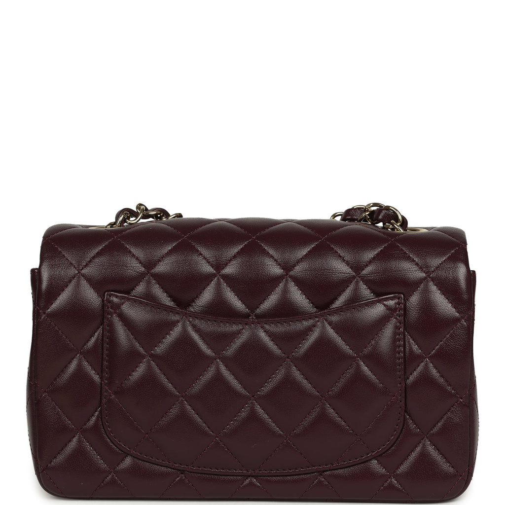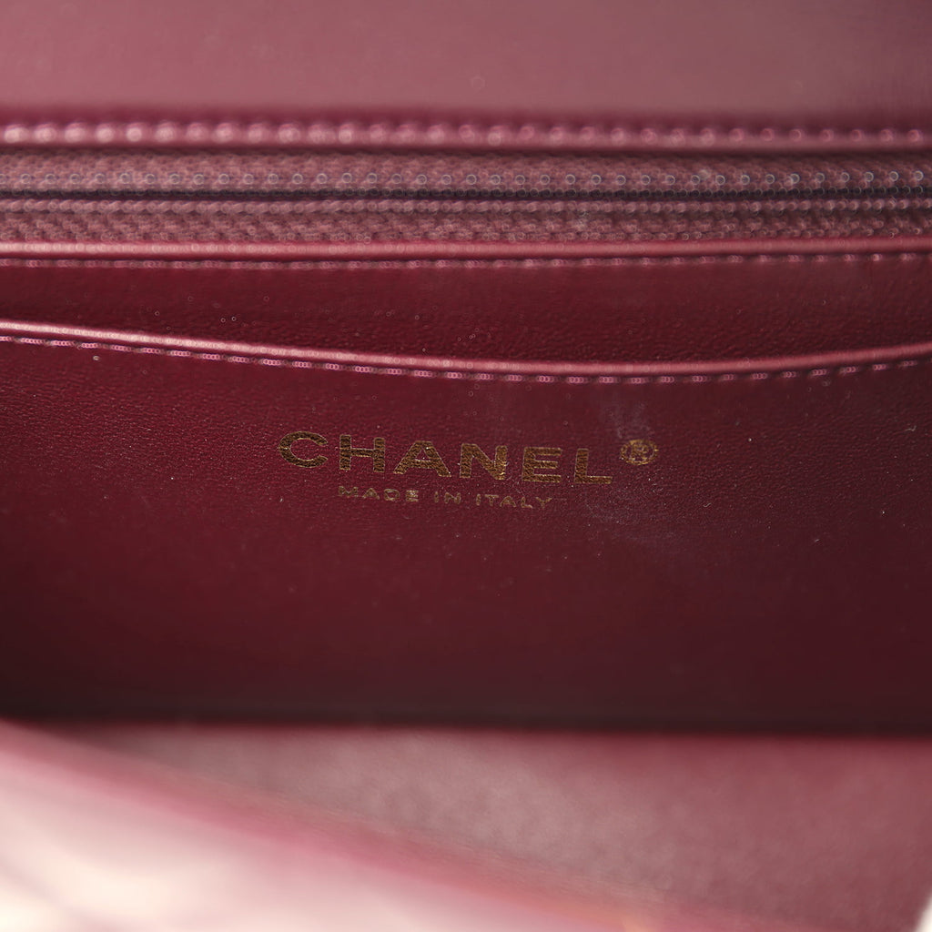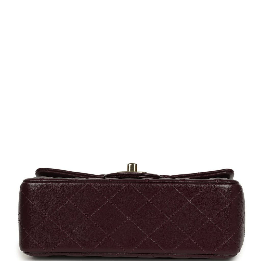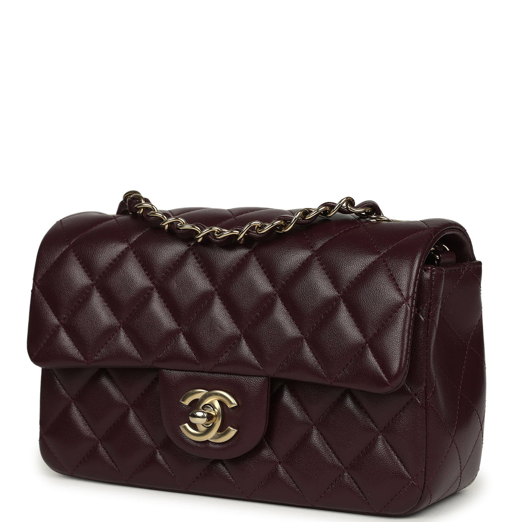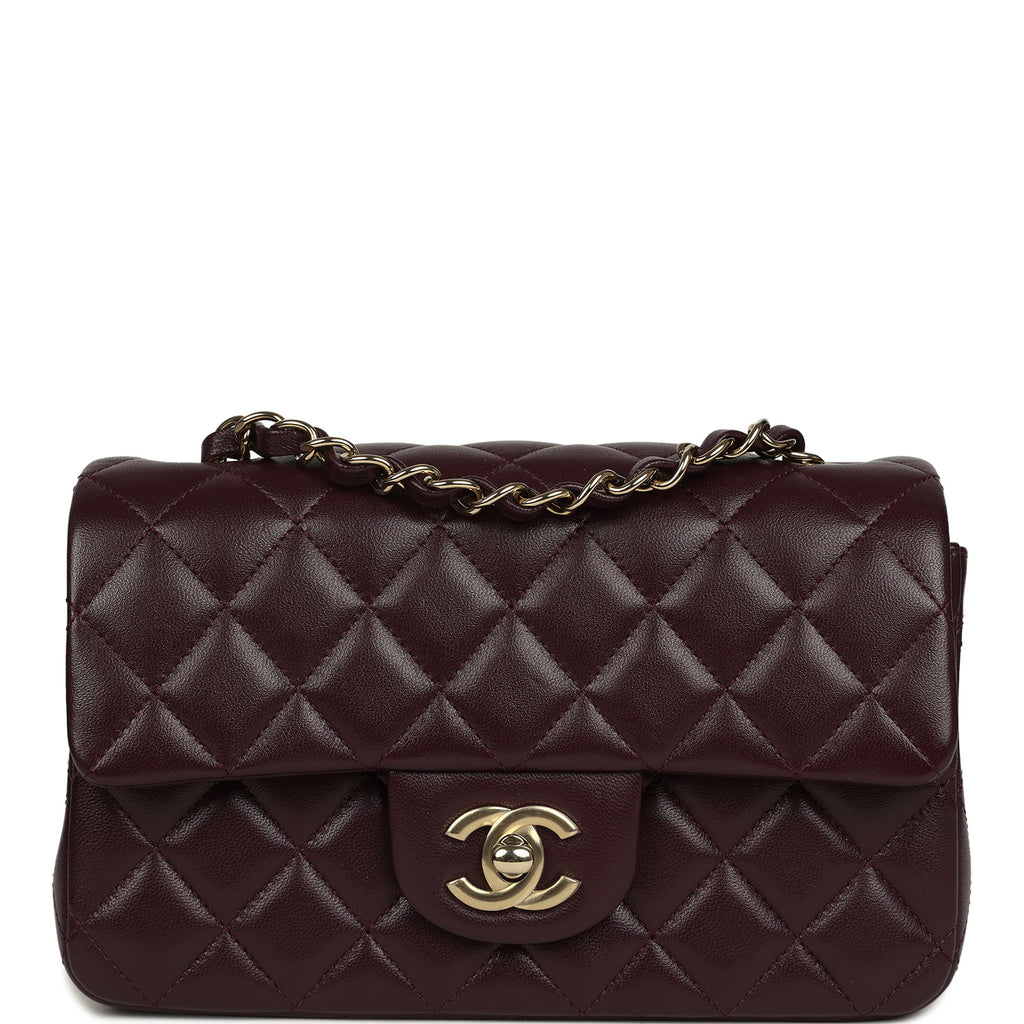 Chanel Mini Classic Rectangular Flap Bag Burgundy Shiny Lambskin Light Gold Hardware
