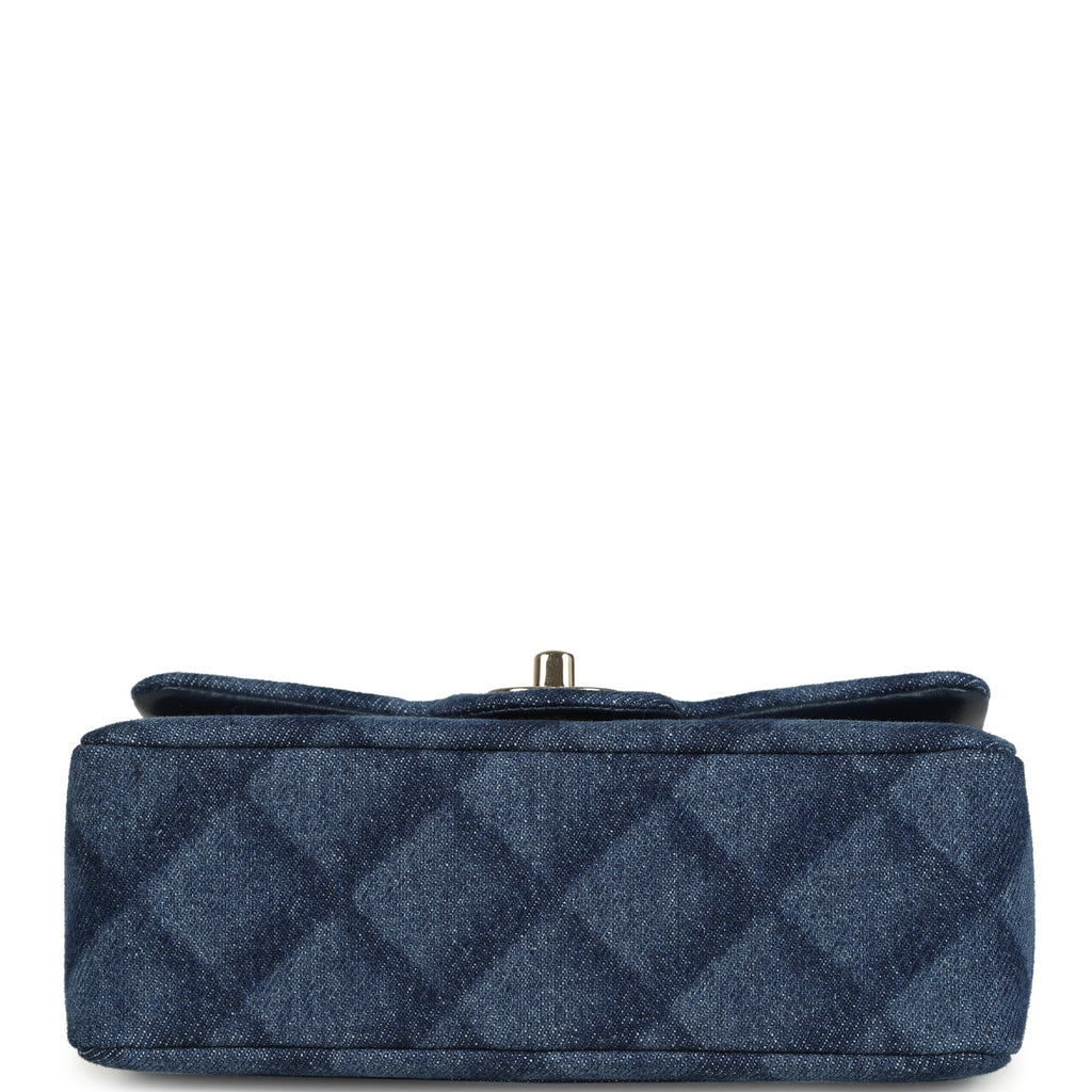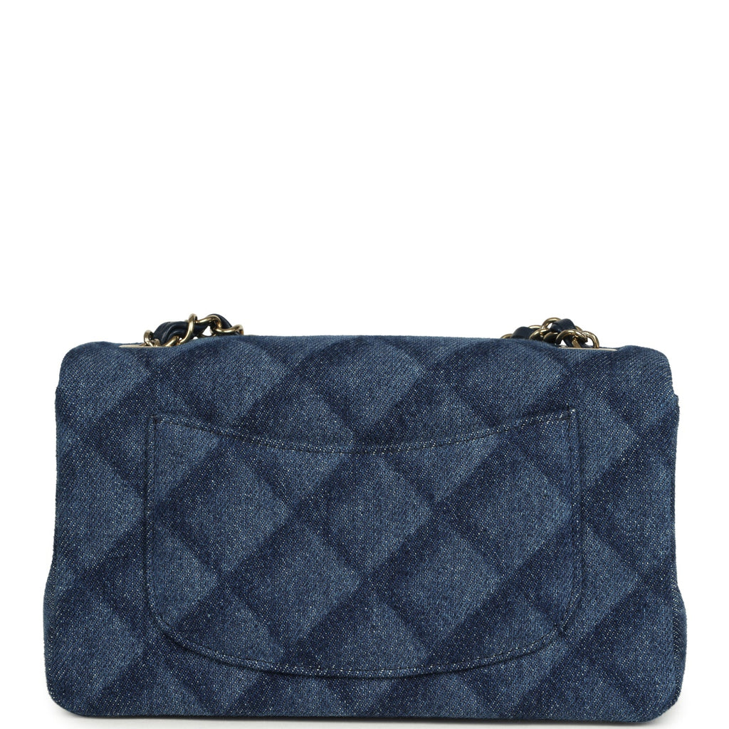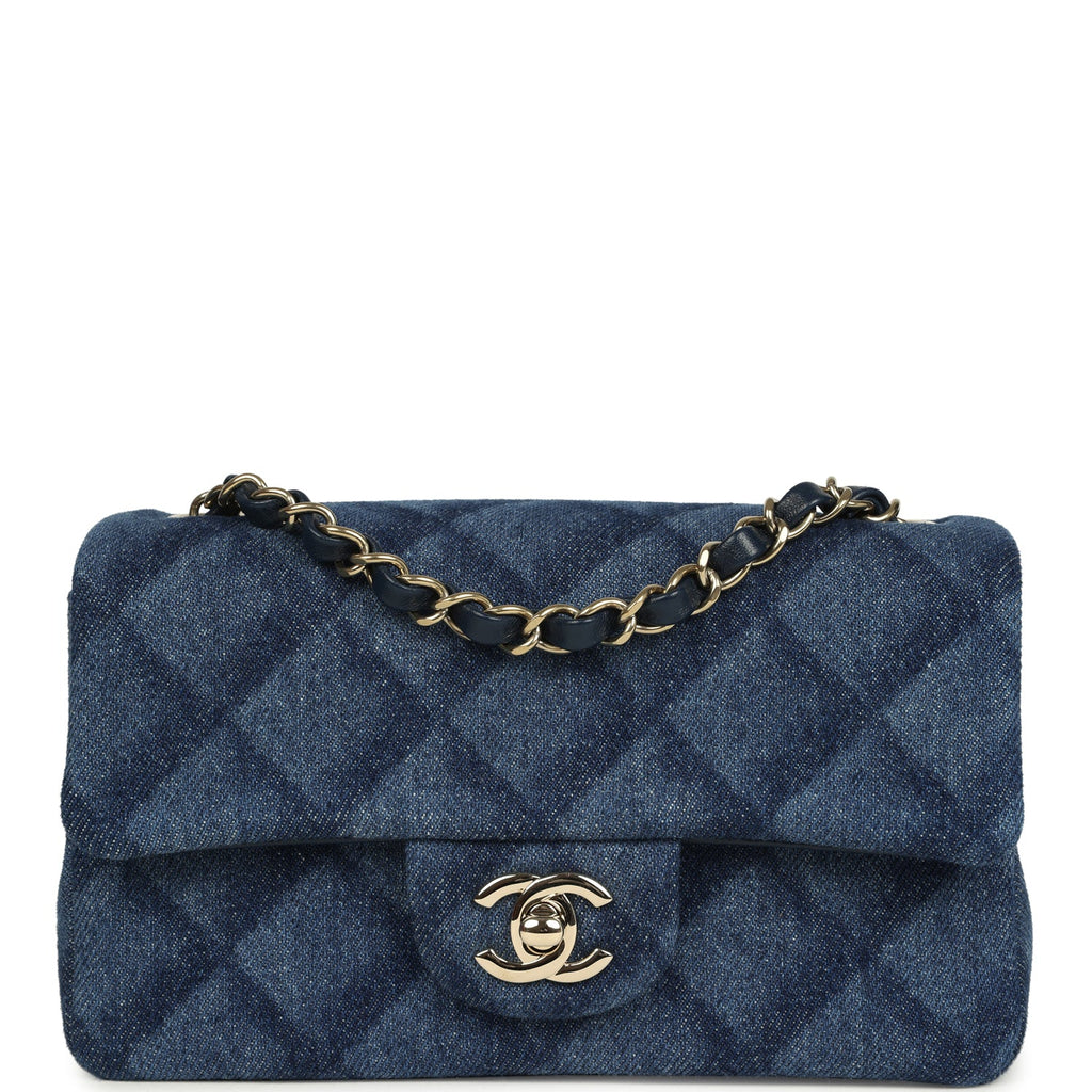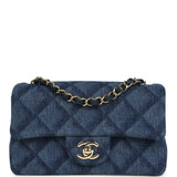 Chanel Mini Classic Rectangular Flap Bag Dark Blue Denim Light Gold Hardware