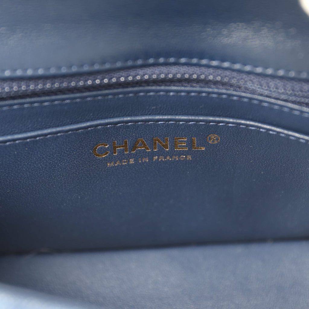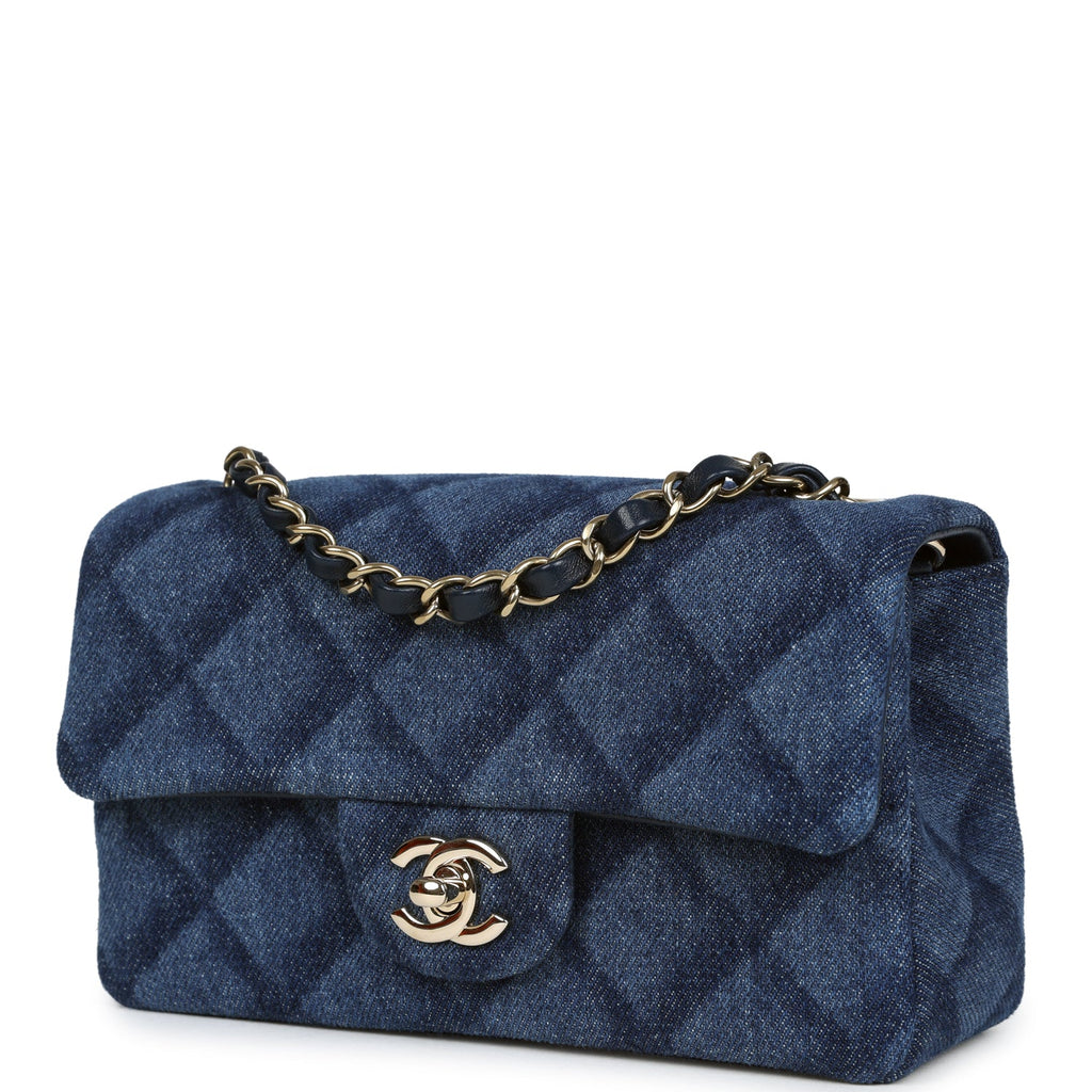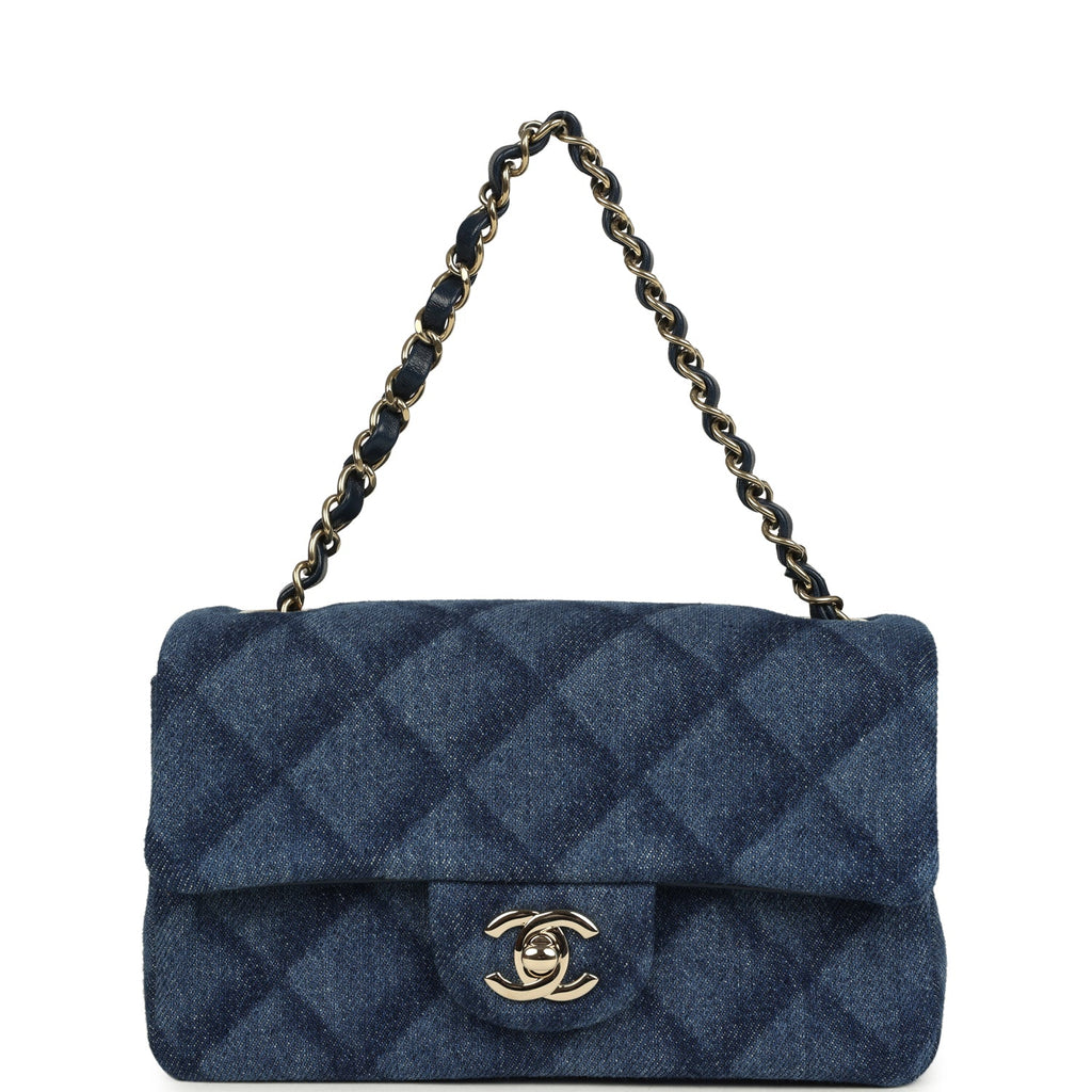 Chanel Mini Classic Rectangular Flap Bag Dark Blue Denim Light Gold Hardware