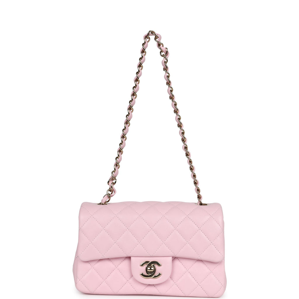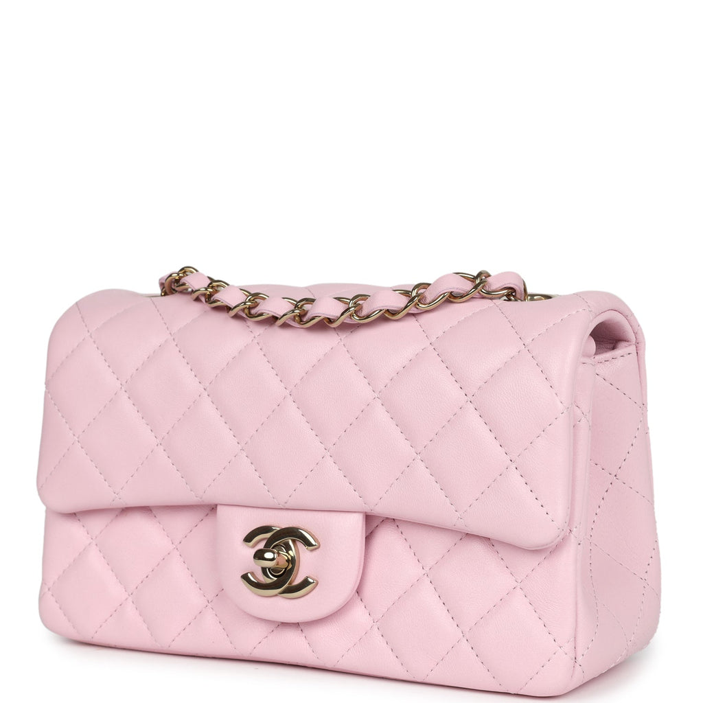 Chanel Mini Classic Rectangular Flap Bag Light Pink Lambskin Light Gold Hardware