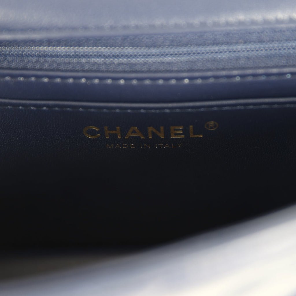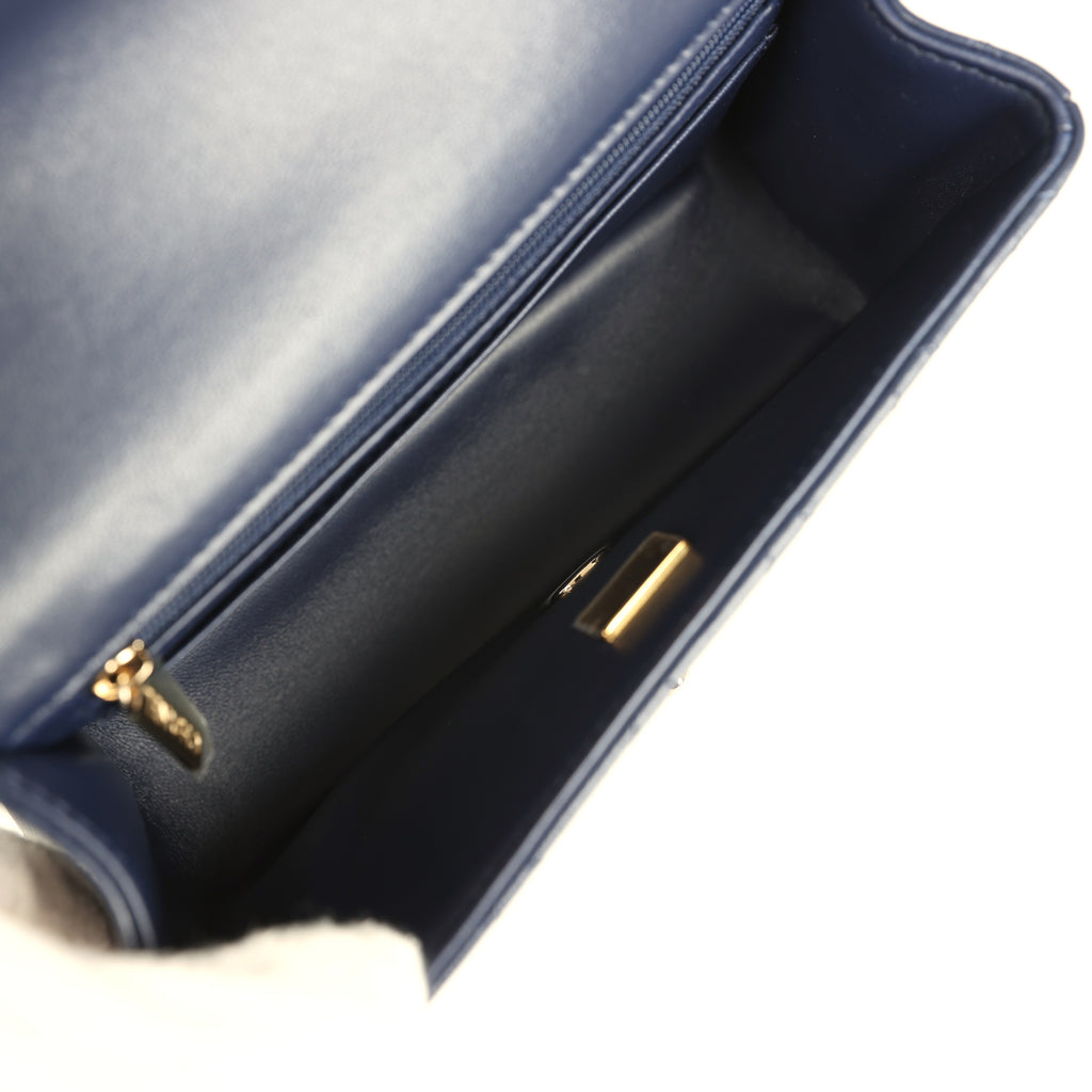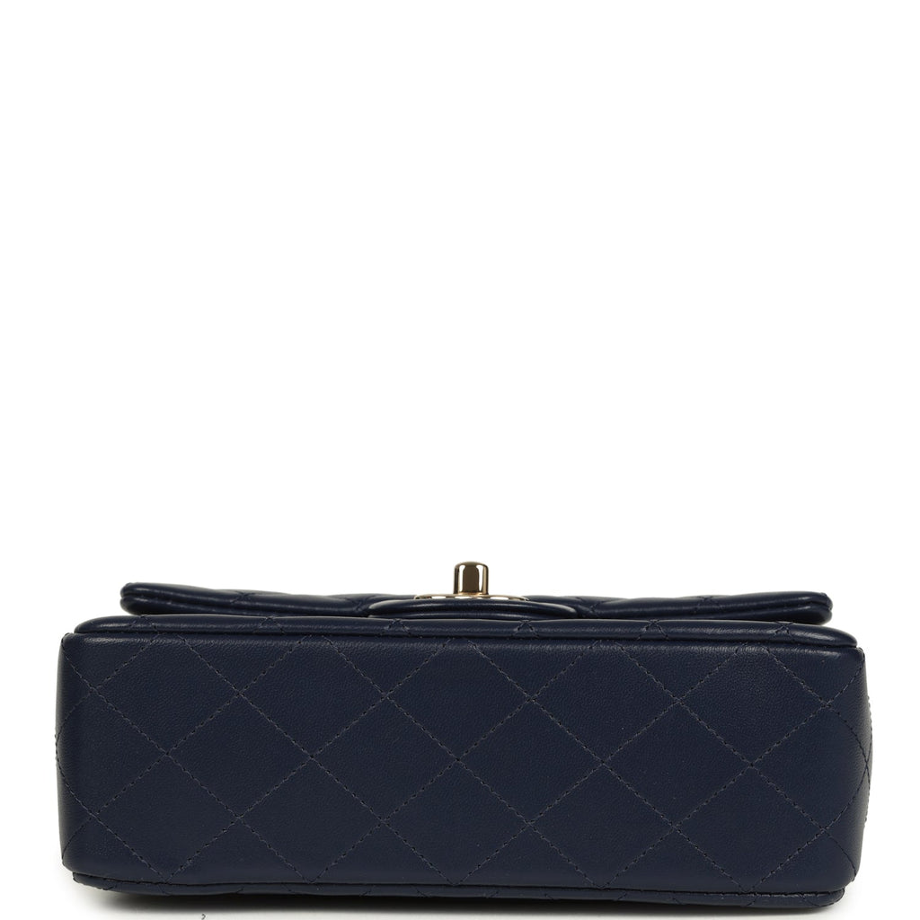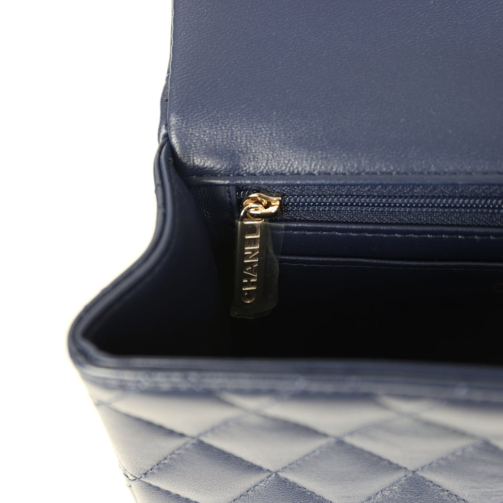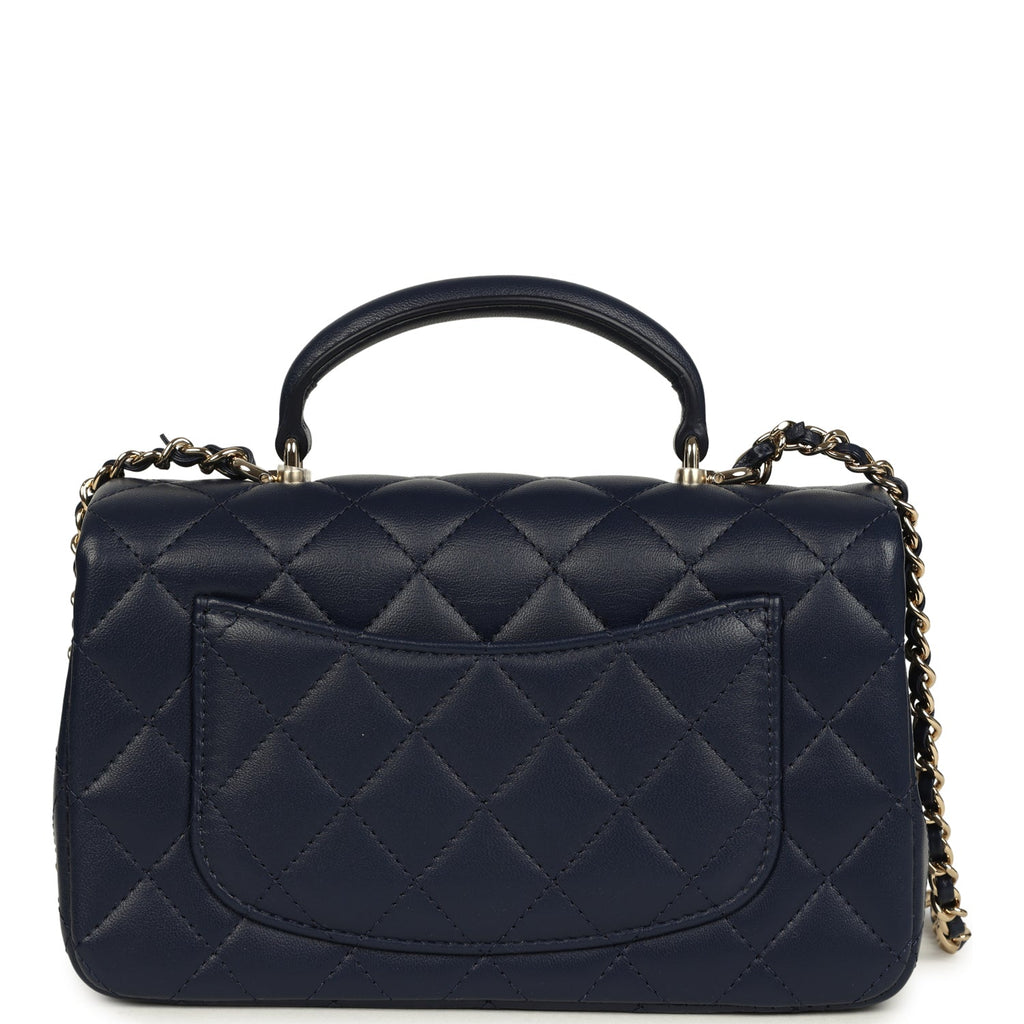 Chanel Mini Classic Rectangular Top Handle Flap Navy Lambskin Light Gold Hardware