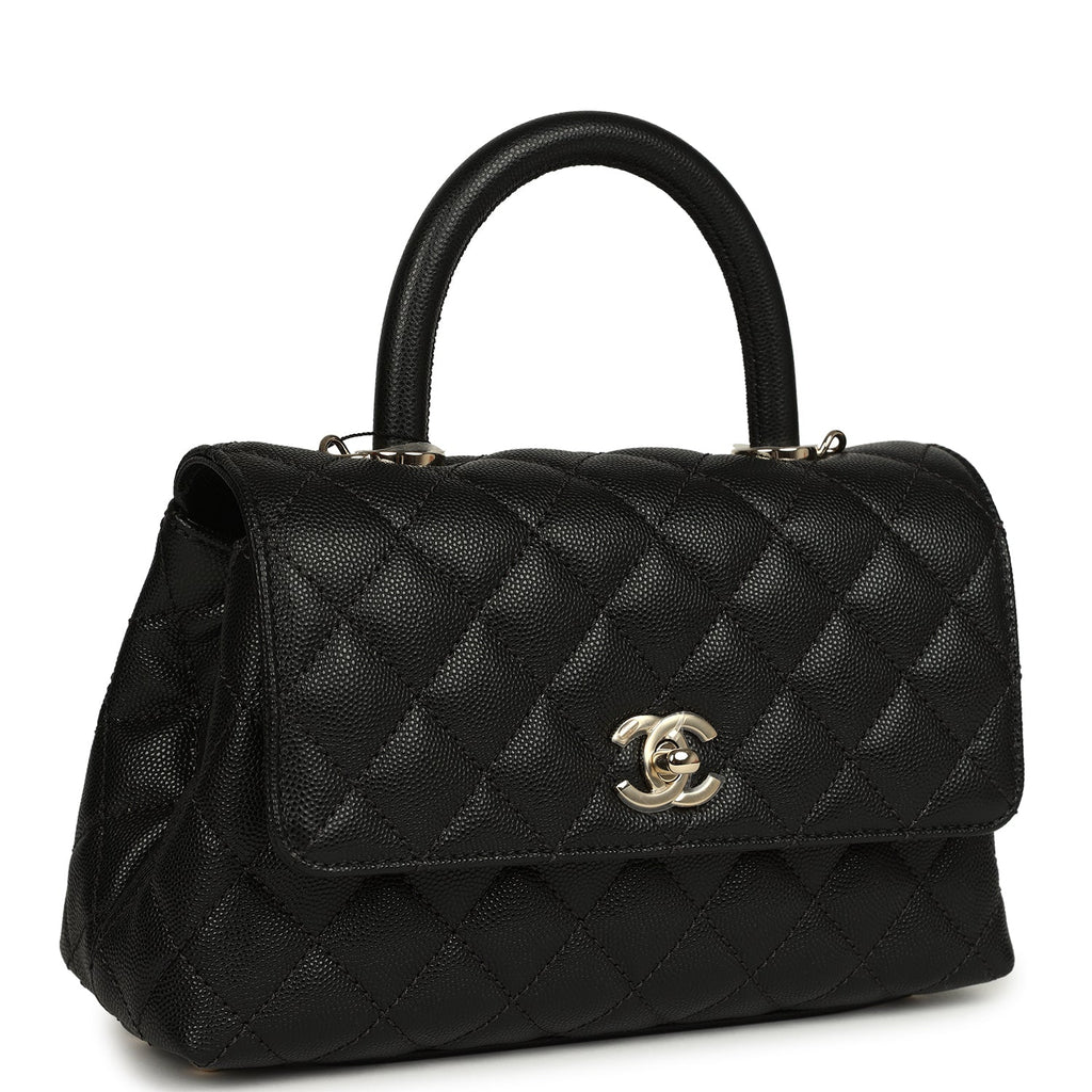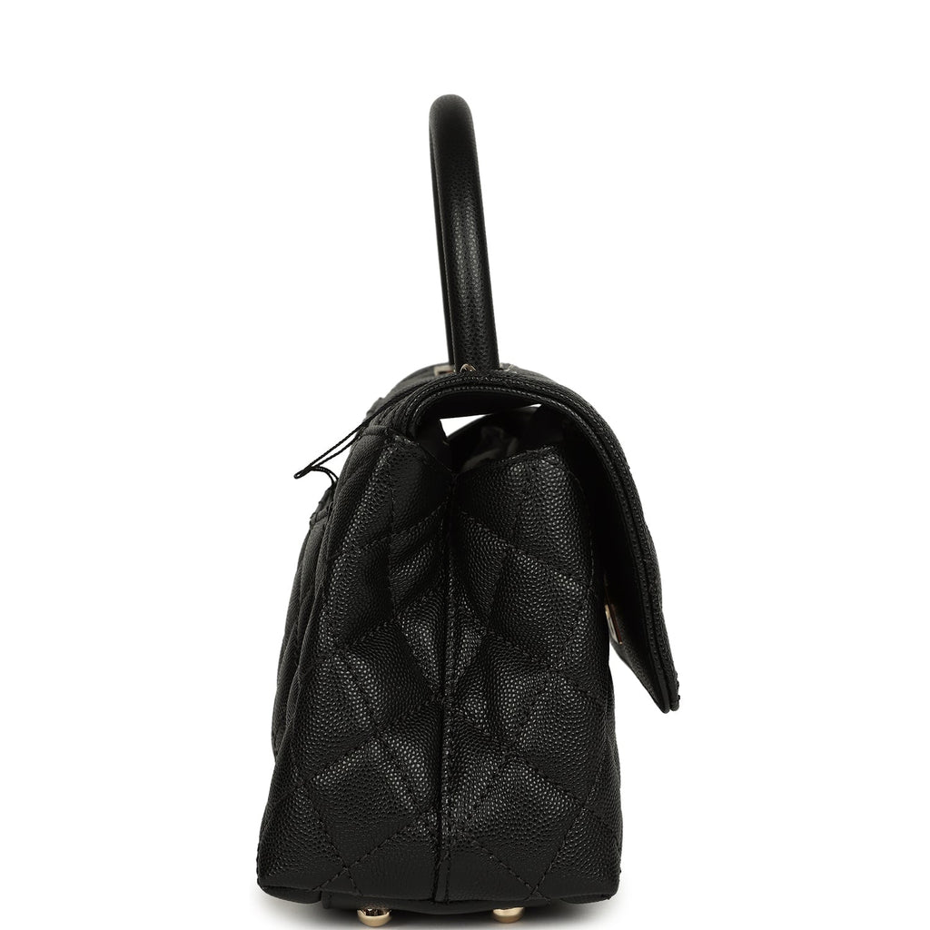 Chanel Mini Coco Top Handle Flap Bag Shiny Caviar Light Gold Hardware
