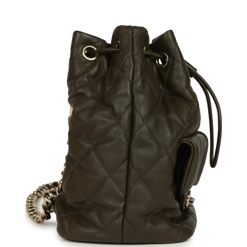Chanel Mini Duma Drawstring Backpack Khaki Lambskin Light Gold Hardware