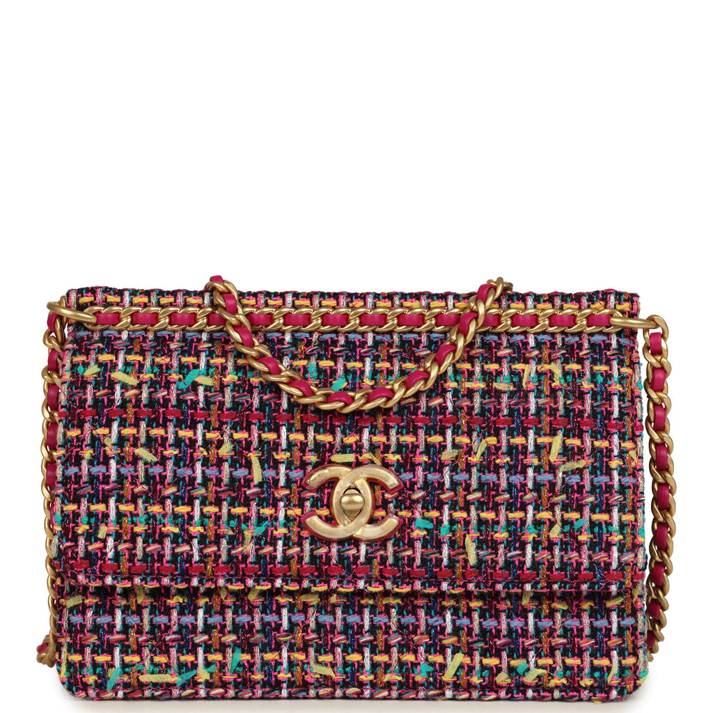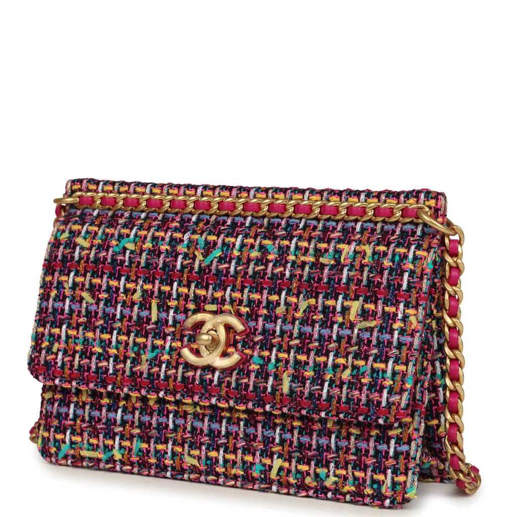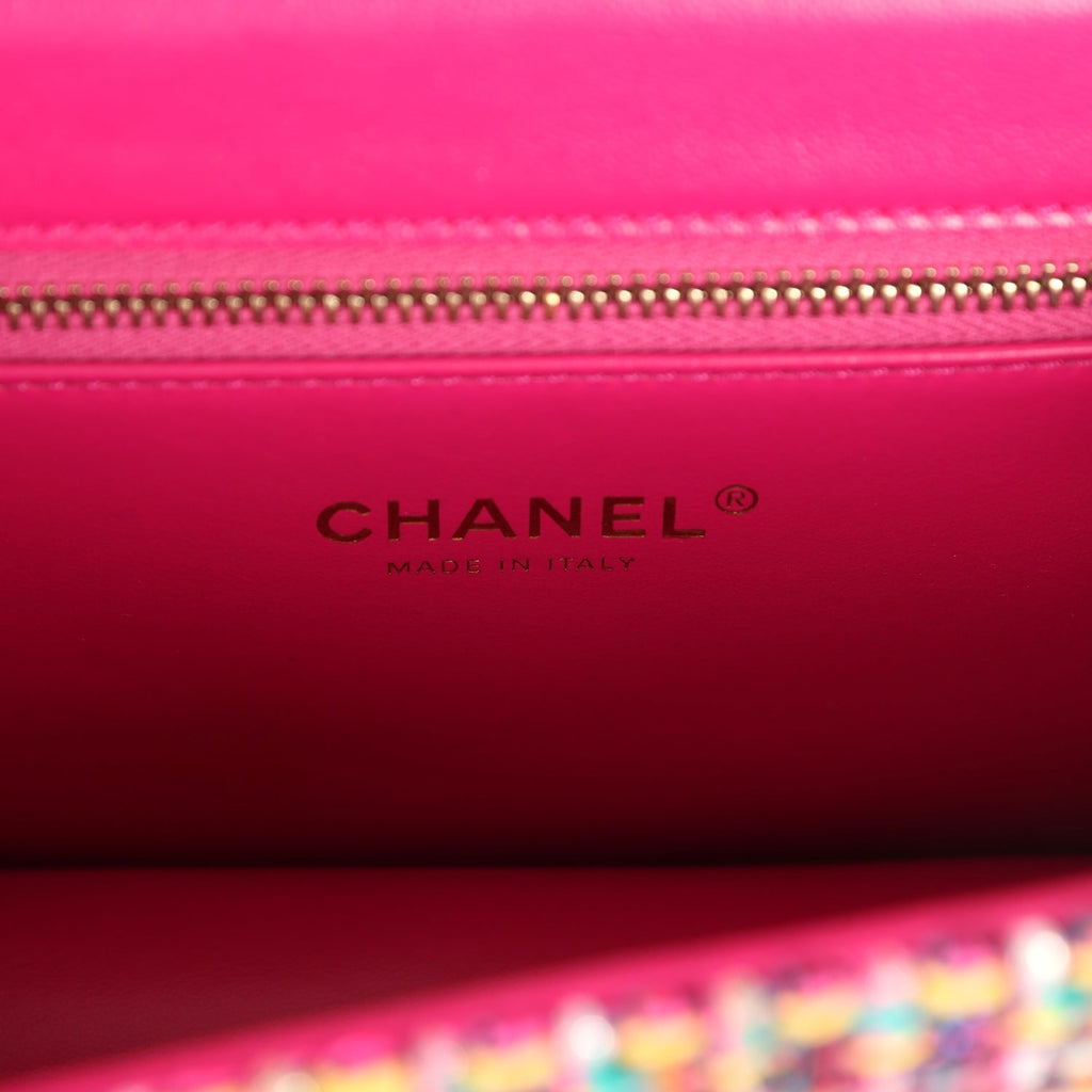 Chanel Mini Flap Bag Pink Multicolored Tweed Antique Gold Hardware