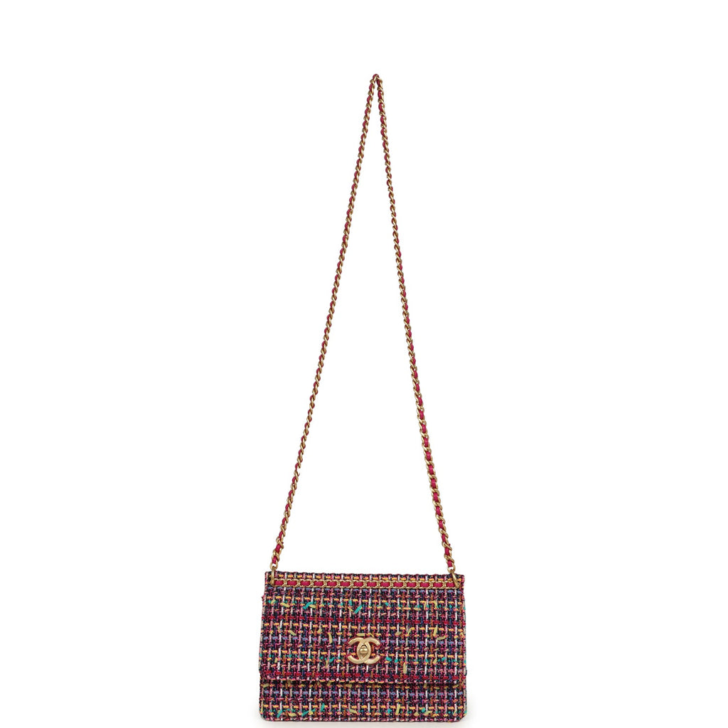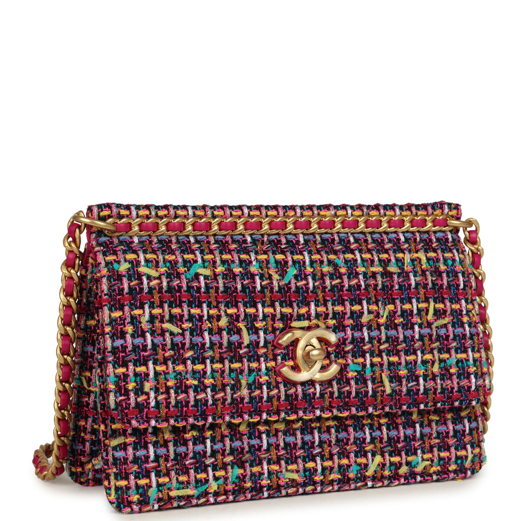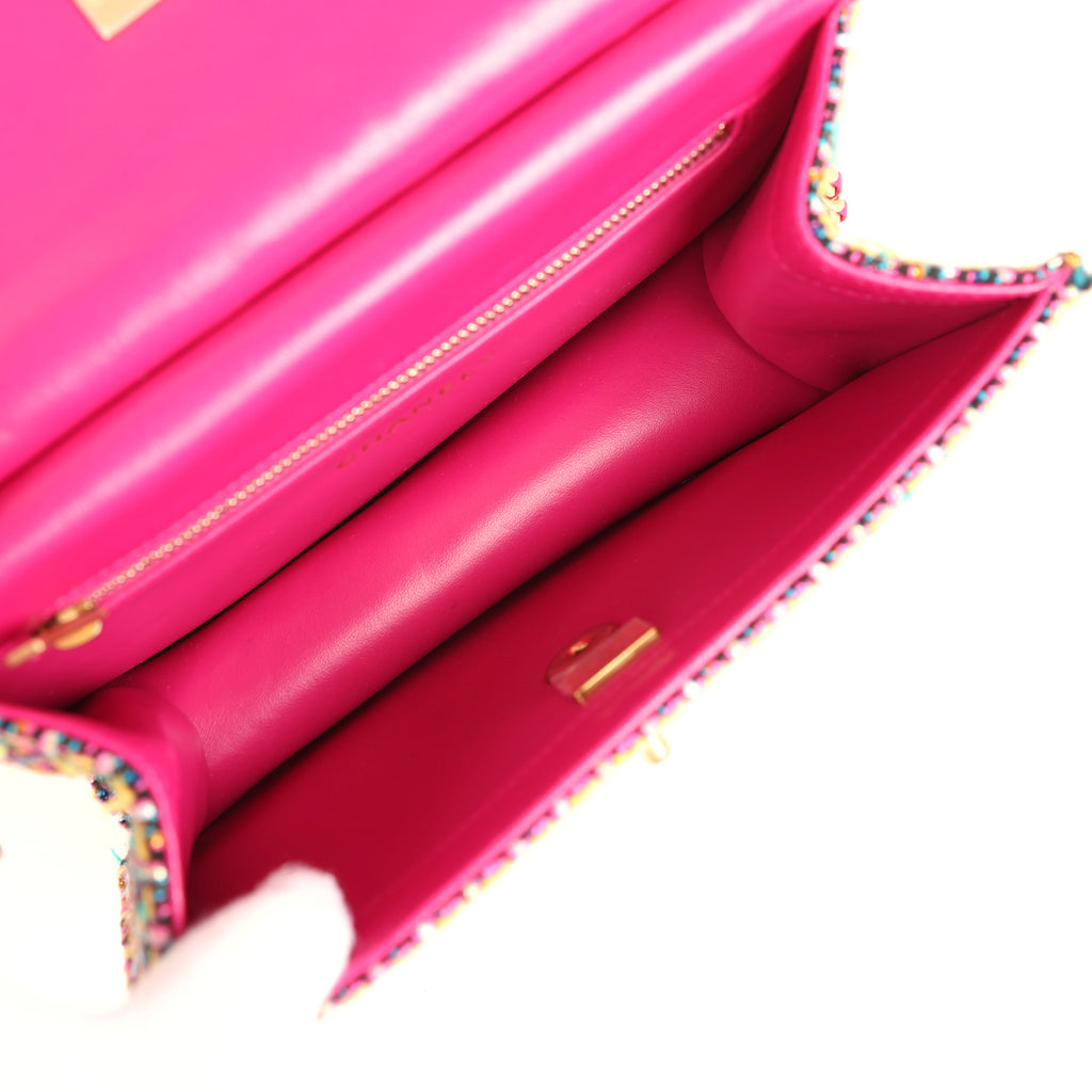 Chanel Mini Flap Bag Pink Multicolored Tweed Antique Gold Hardware