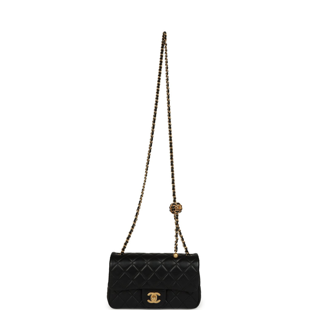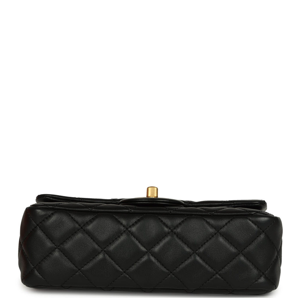 Chanel Mini Pearl Crush Rectangular Flap Bag Black Lambskin Brushed Gold Hardware