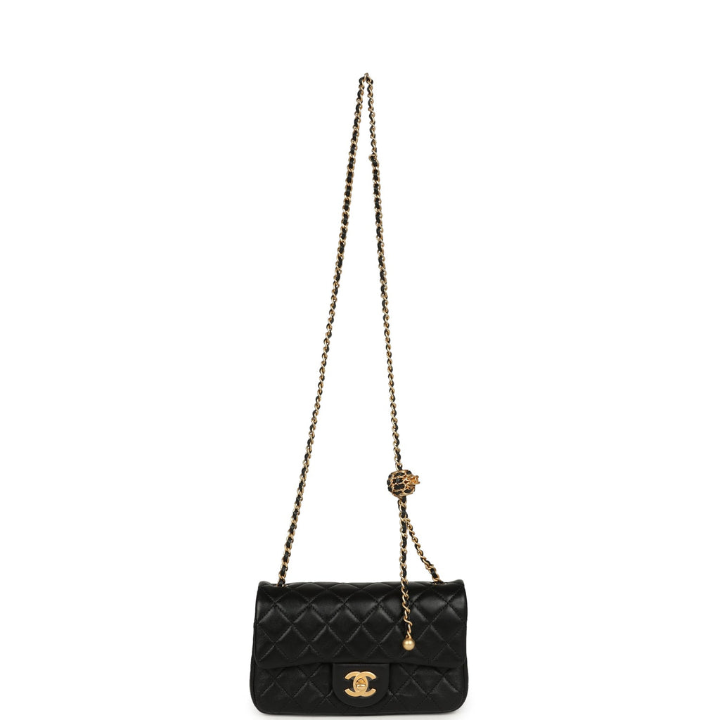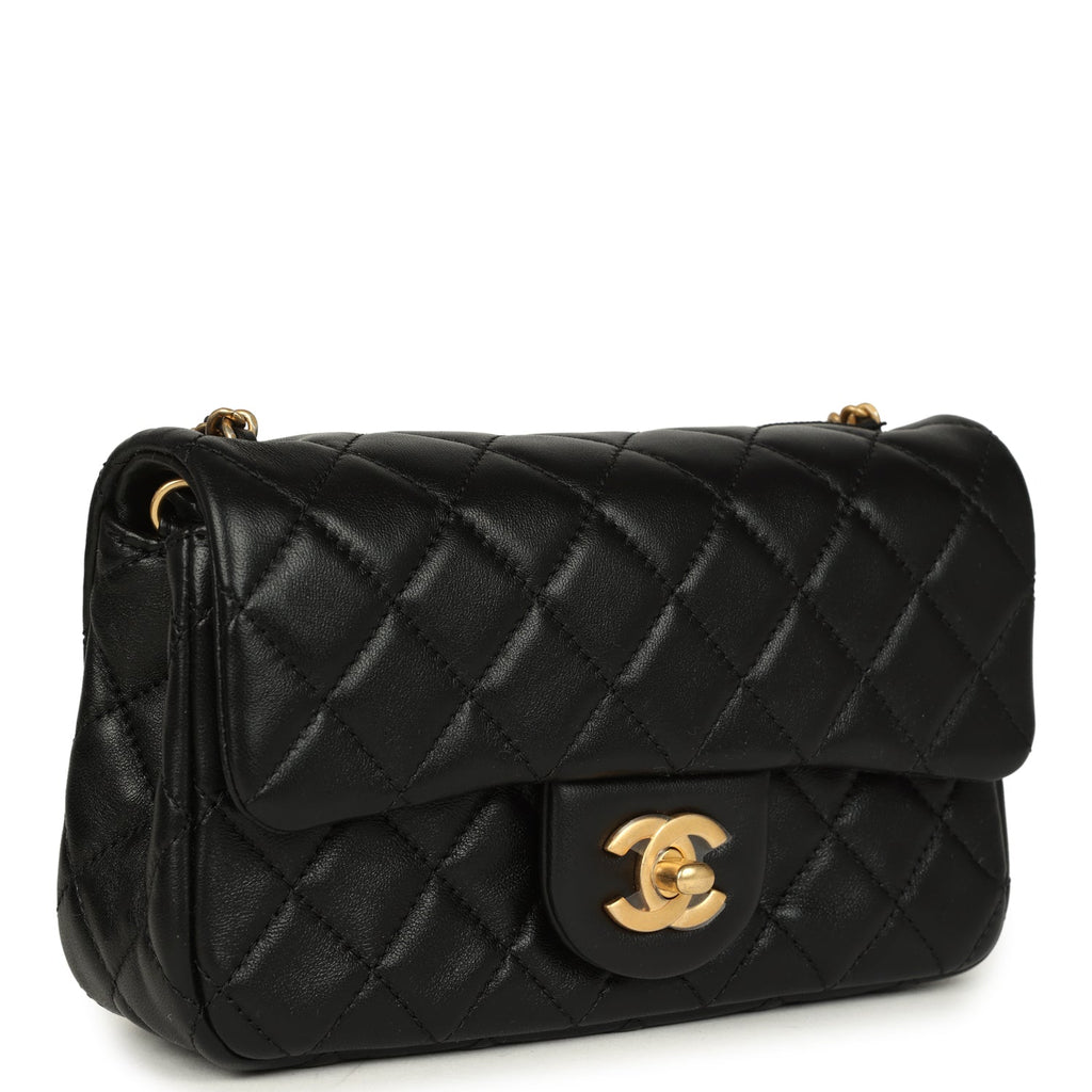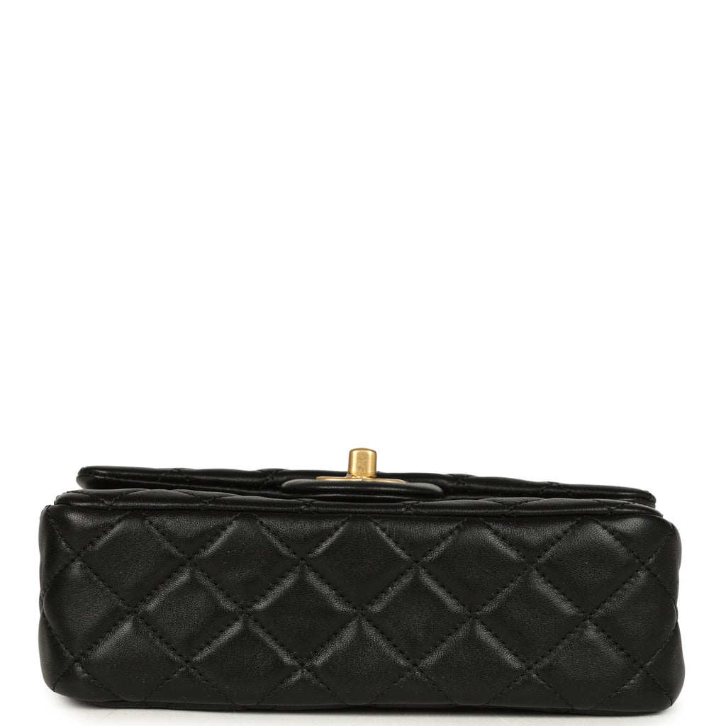 Chanel Mini Pearl Crush Rectangular Flap Bag Black Lambskin Brushed Gold Hardware