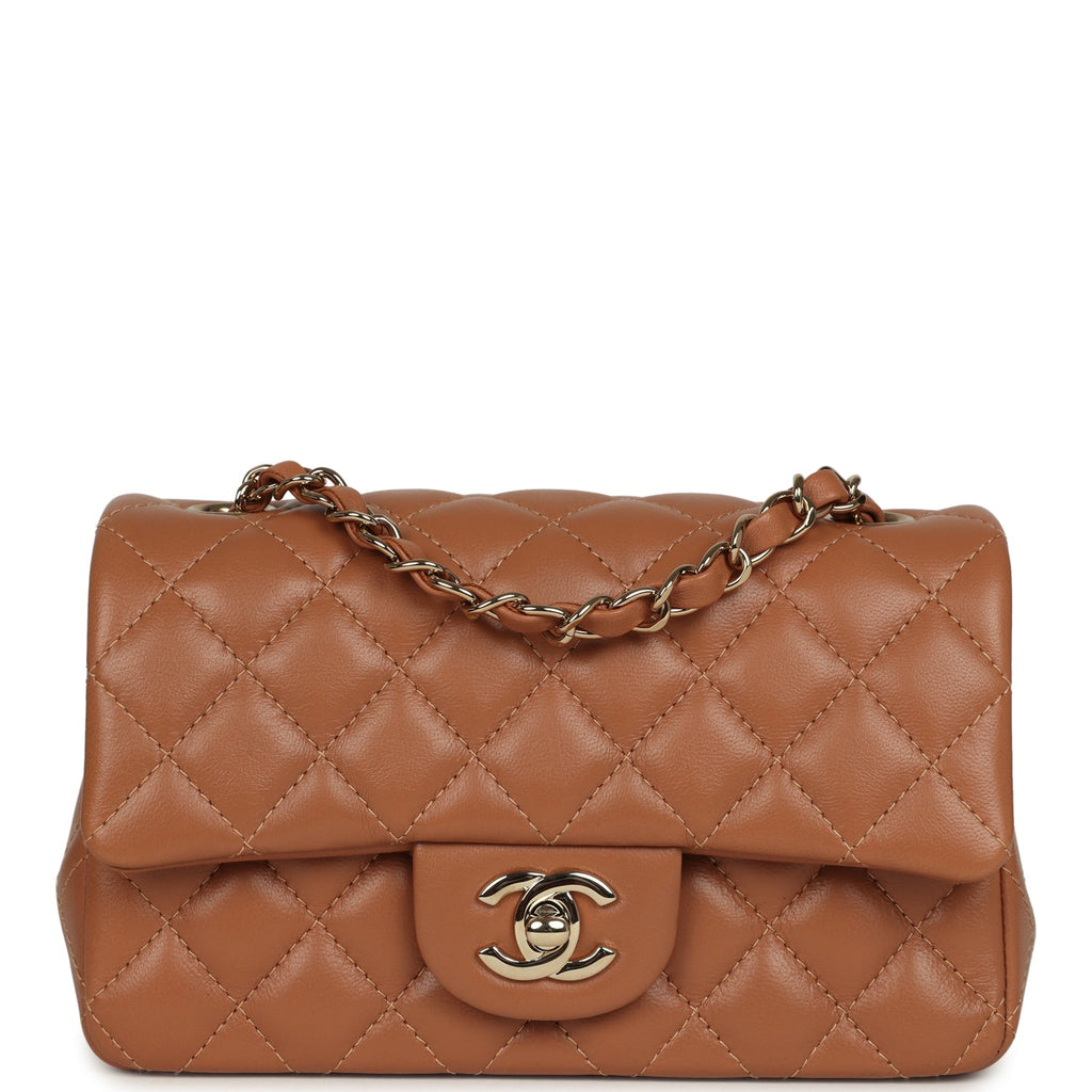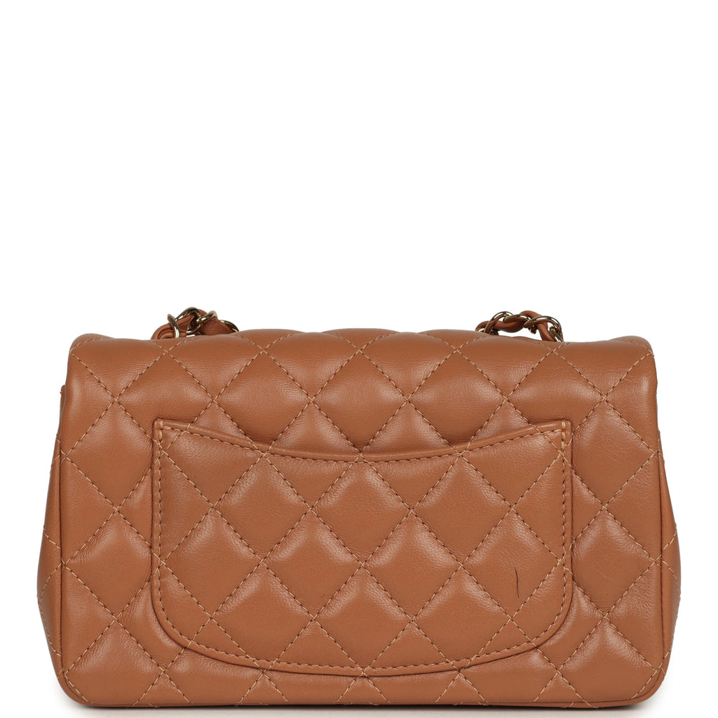 Chanel Mini Rectangular Flap Bag Caramel Lambskin Light Gold Hardware