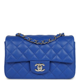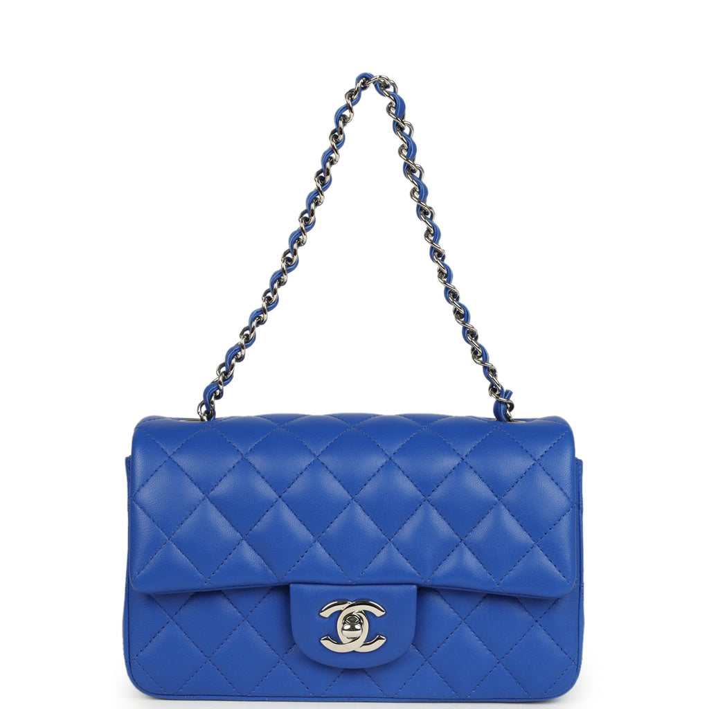 Chanel Mini Rectangular Flap Bag Cobalt Blue Lambskin Silver Hardware