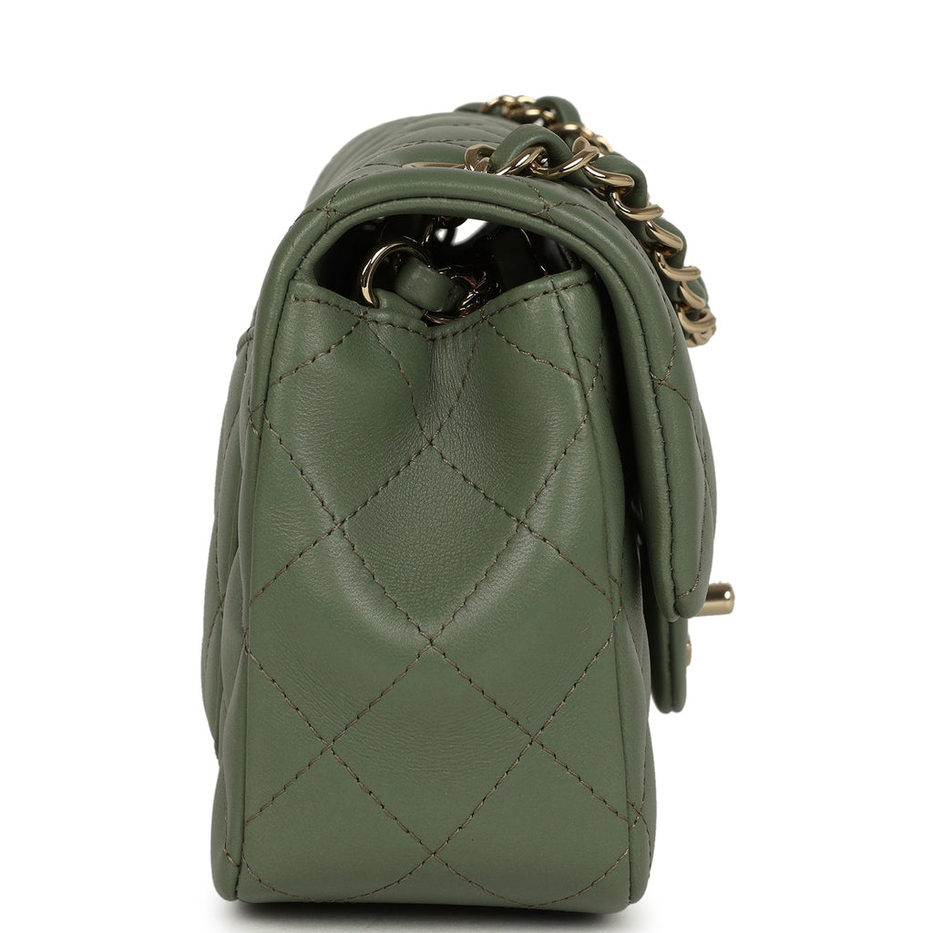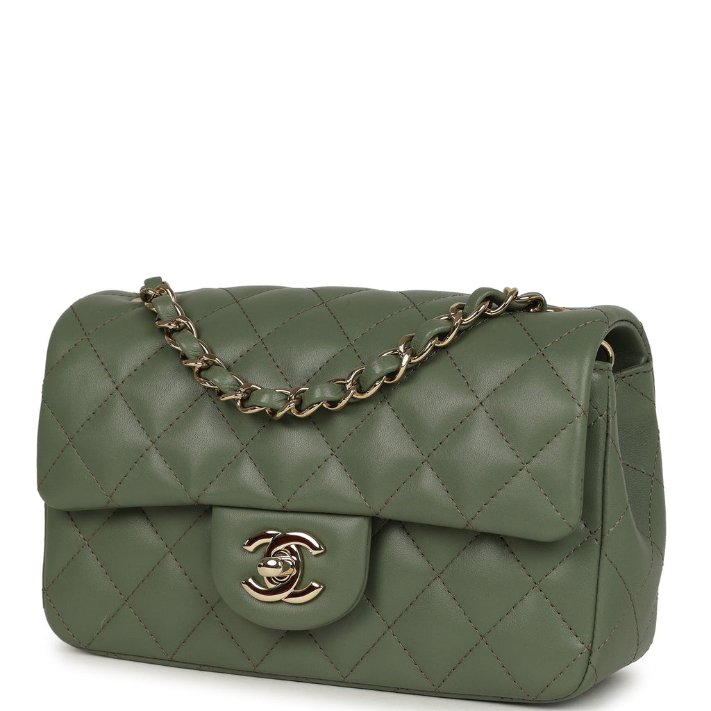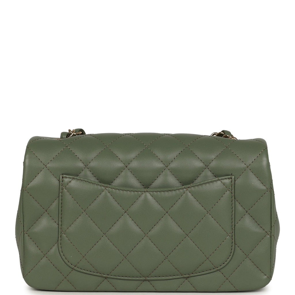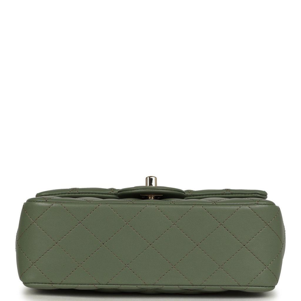 Chanel Mini Rectangular Flap Bag Dark Green Lambskin Light Gold Hardware