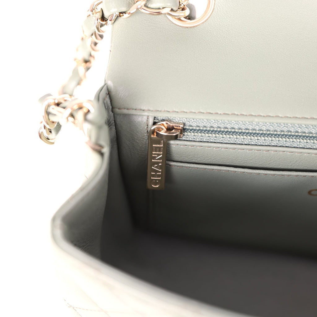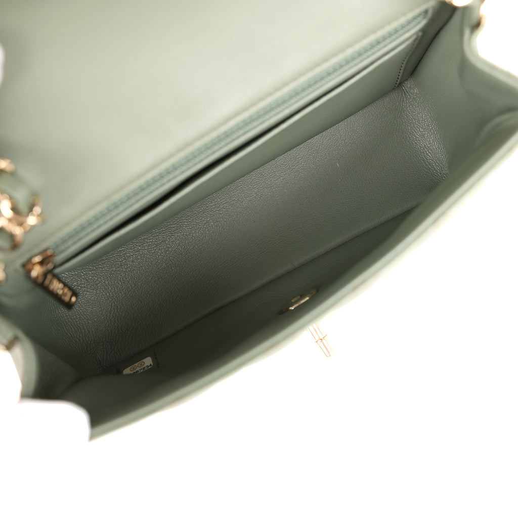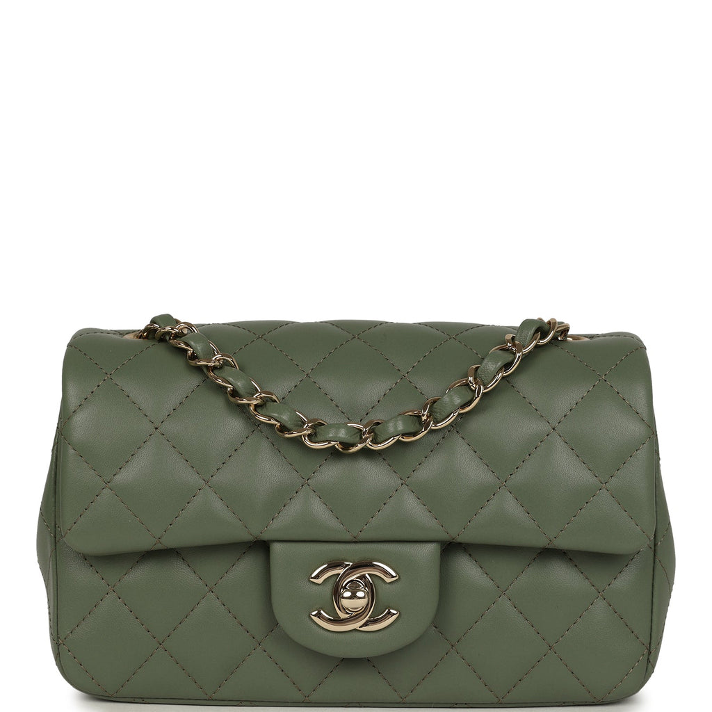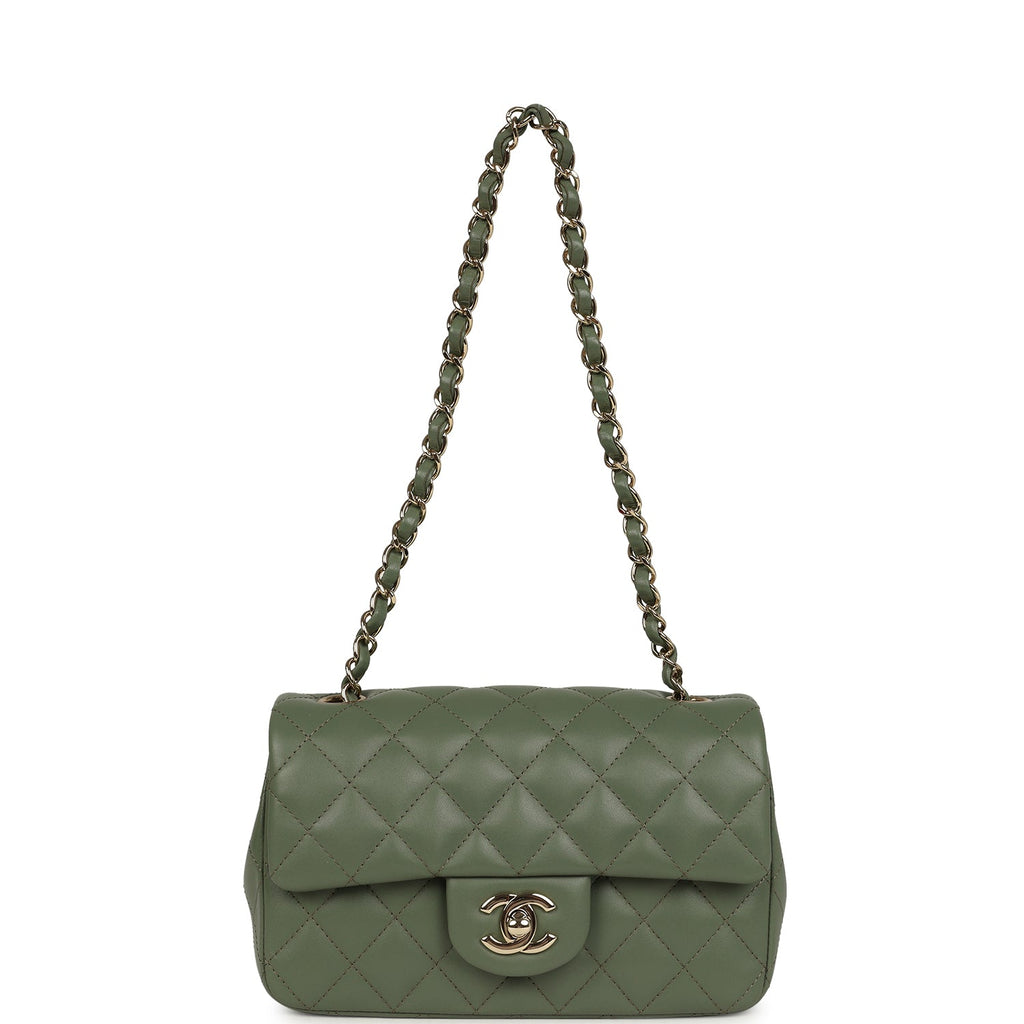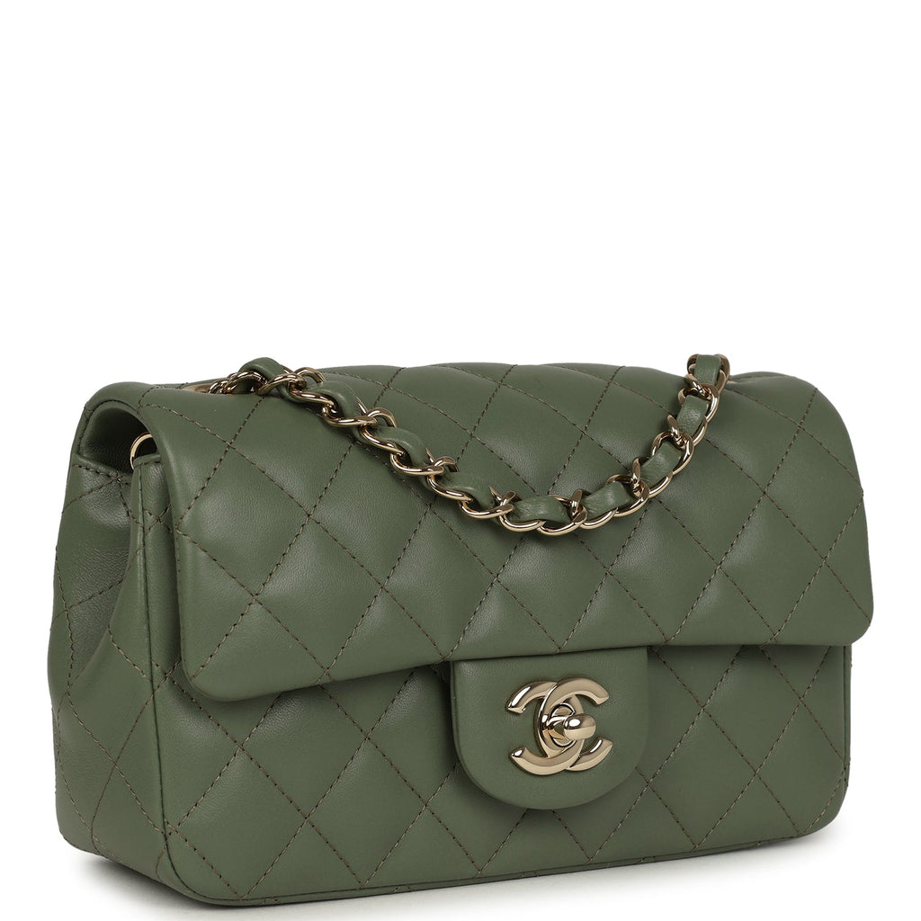 Chanel Mini Rectangular Flap Bag Dark Green Lambskin Light Gold Hardware