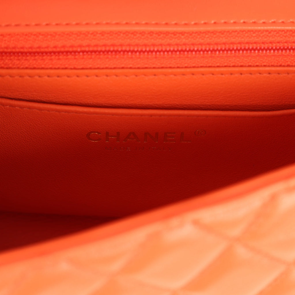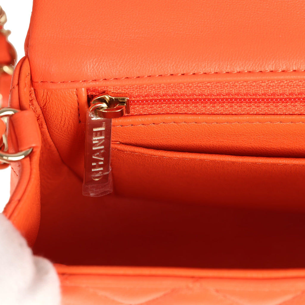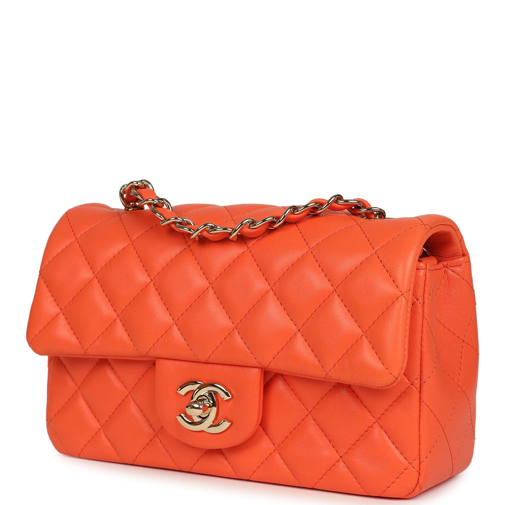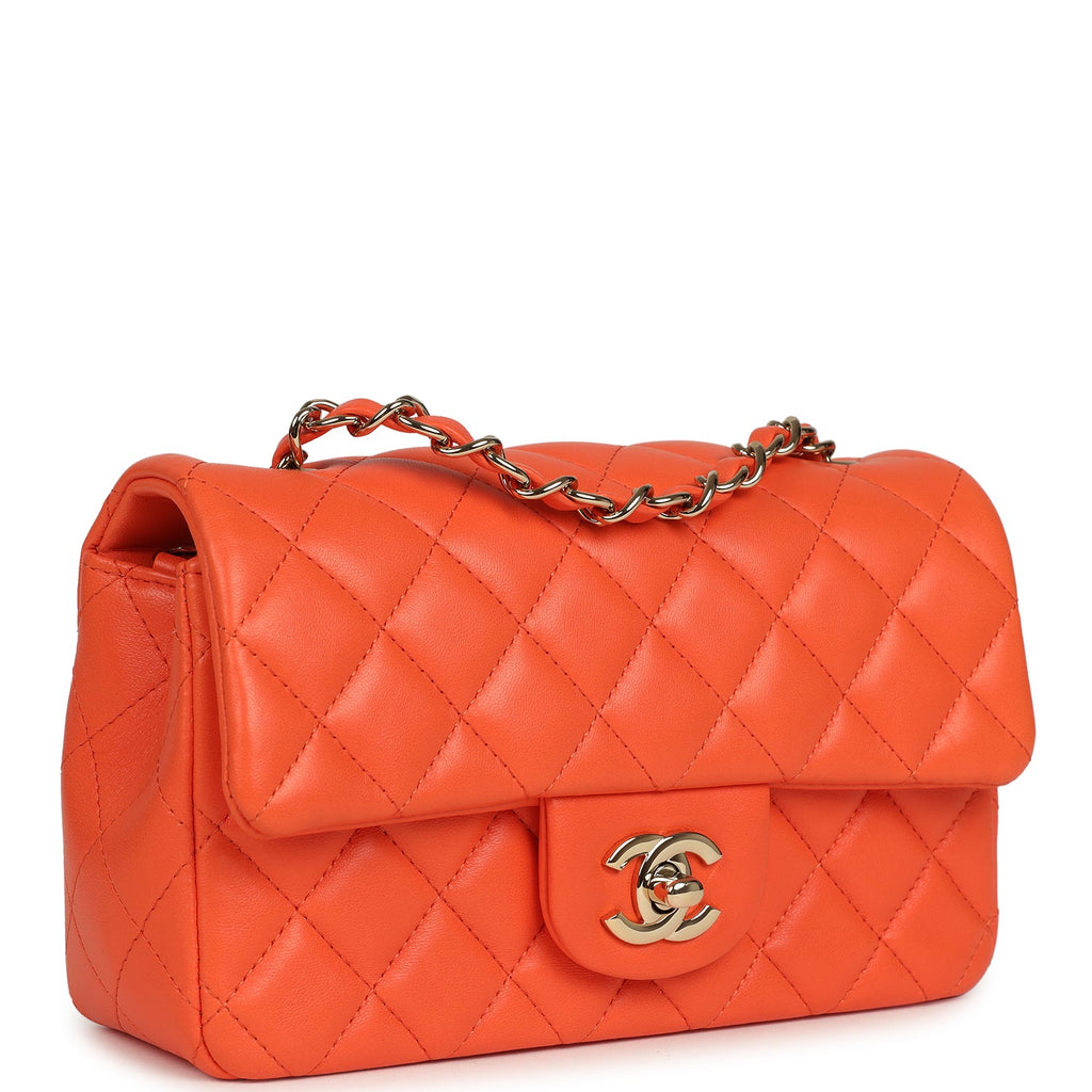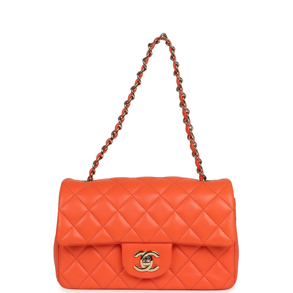 Pre-owned Chanel Mini Rectangular Flap Bag Orange Lambskin Light Gold Hardware