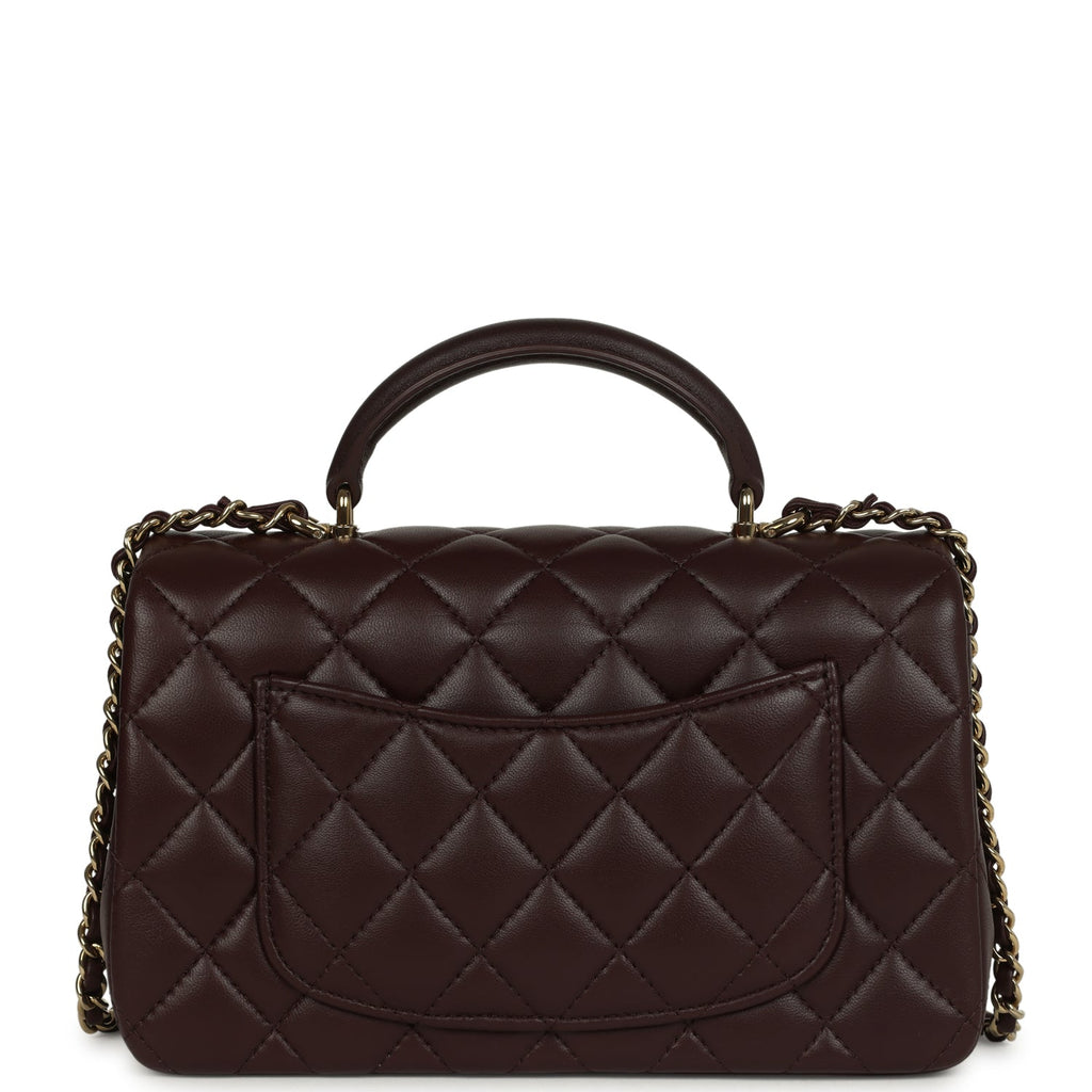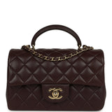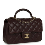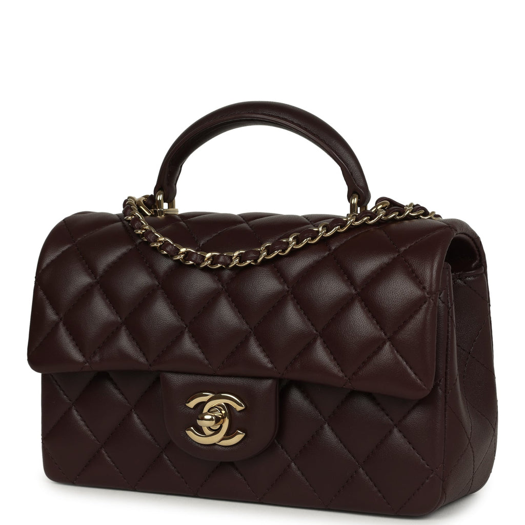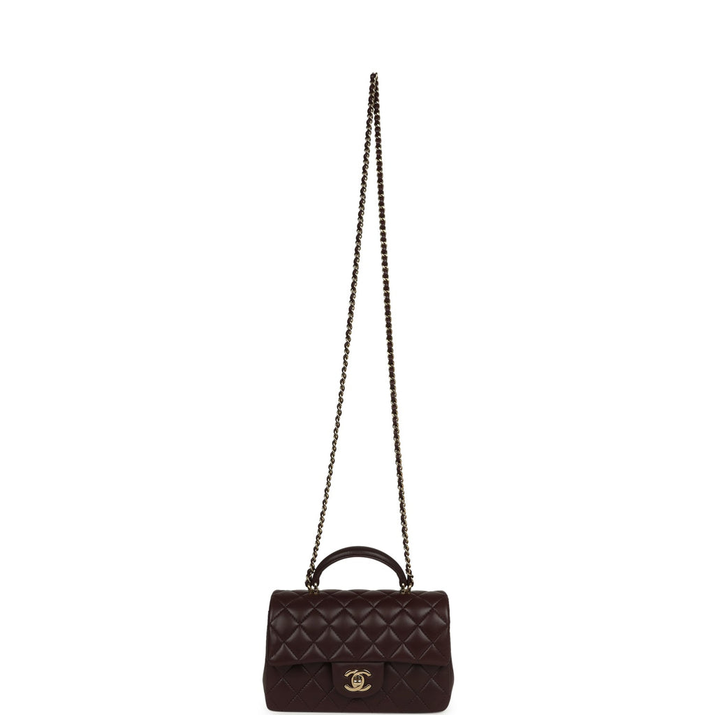 Chanel Mini Rectangular Flap Bag with Top Handle Dark Brown Lambskin Light Gold Hardware