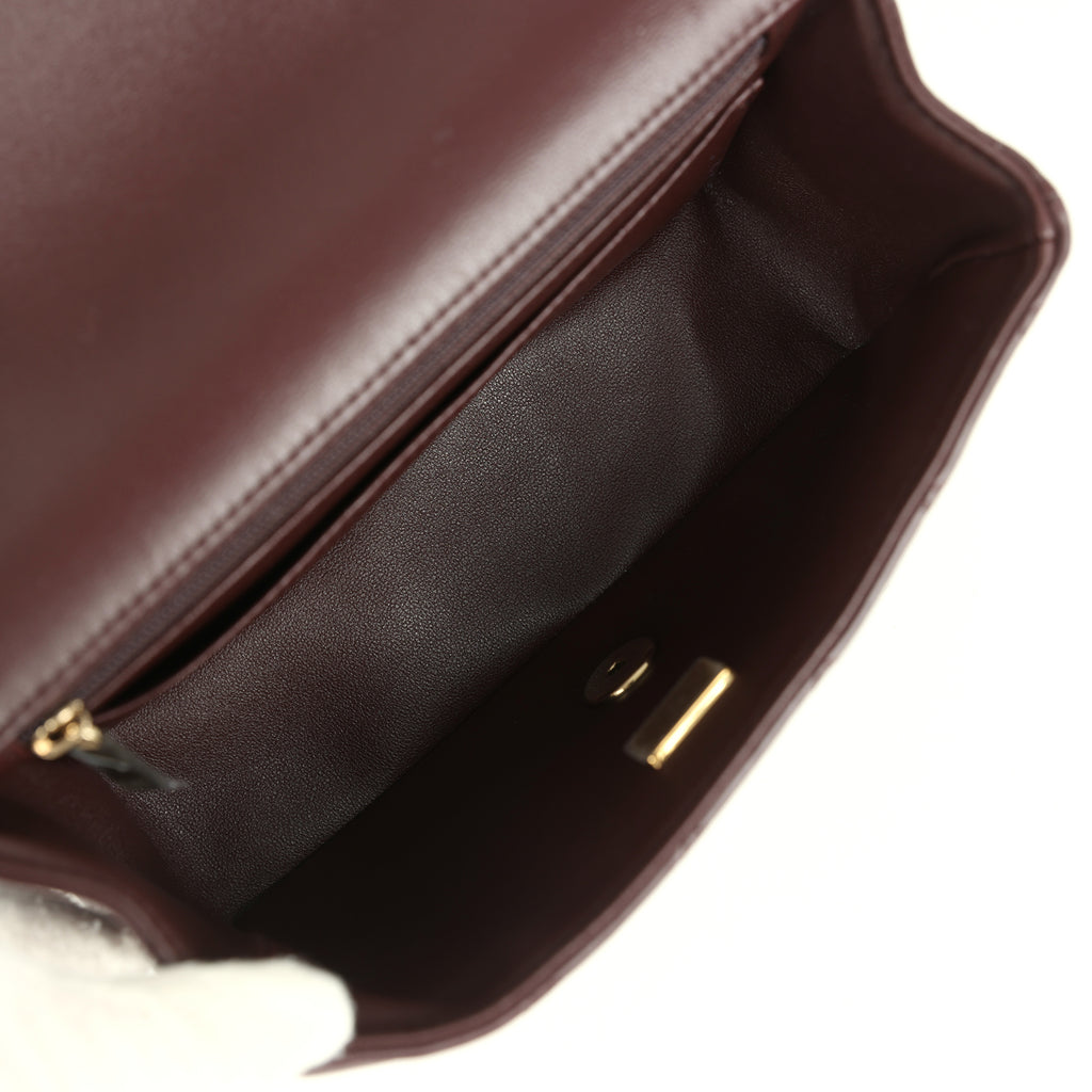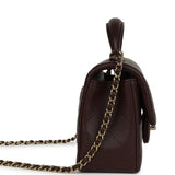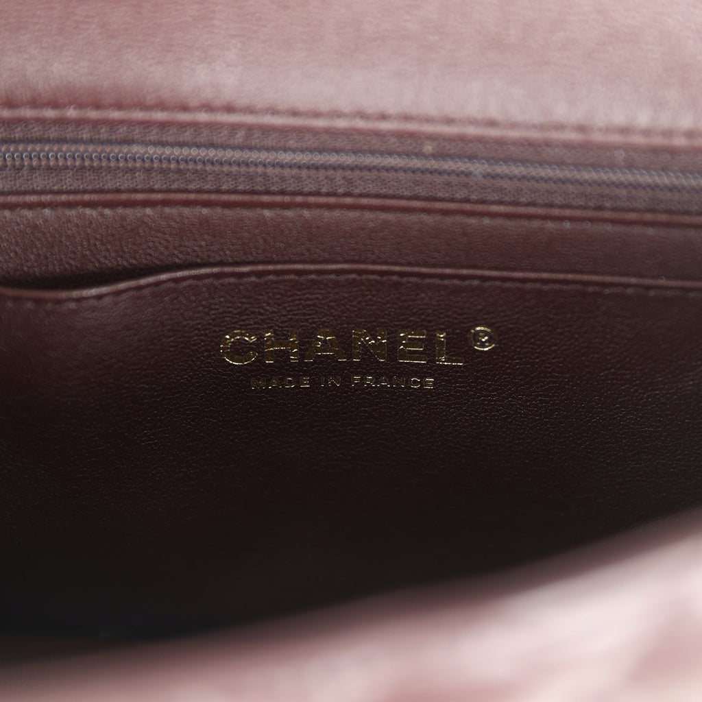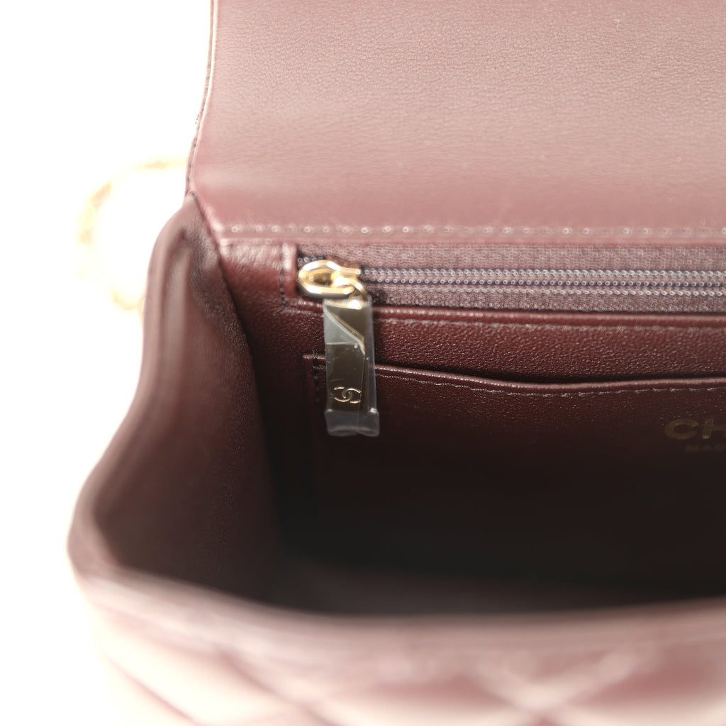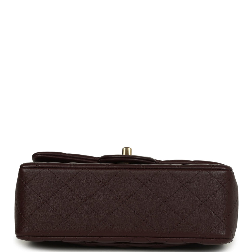 Chanel Mini Rectangular Flap Bag with Top Handle Dark Brown Lambskin Light Gold Hardware