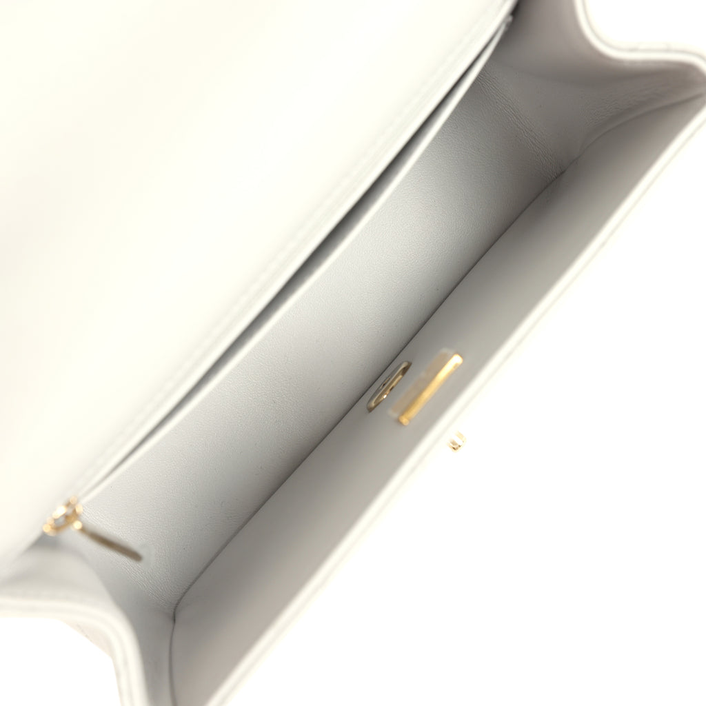 Chanel Mini Rectangular Flap Bag with Top Handle Light Grey Lambskin Light Gold Hardware