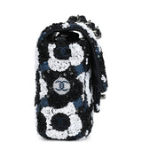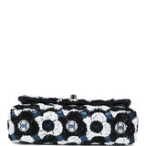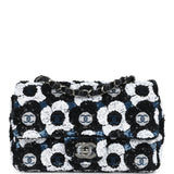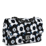 Chanel Mini Rectangular Flower Flap Bag Black, Navy and White Sequin Ruthenium Hardware