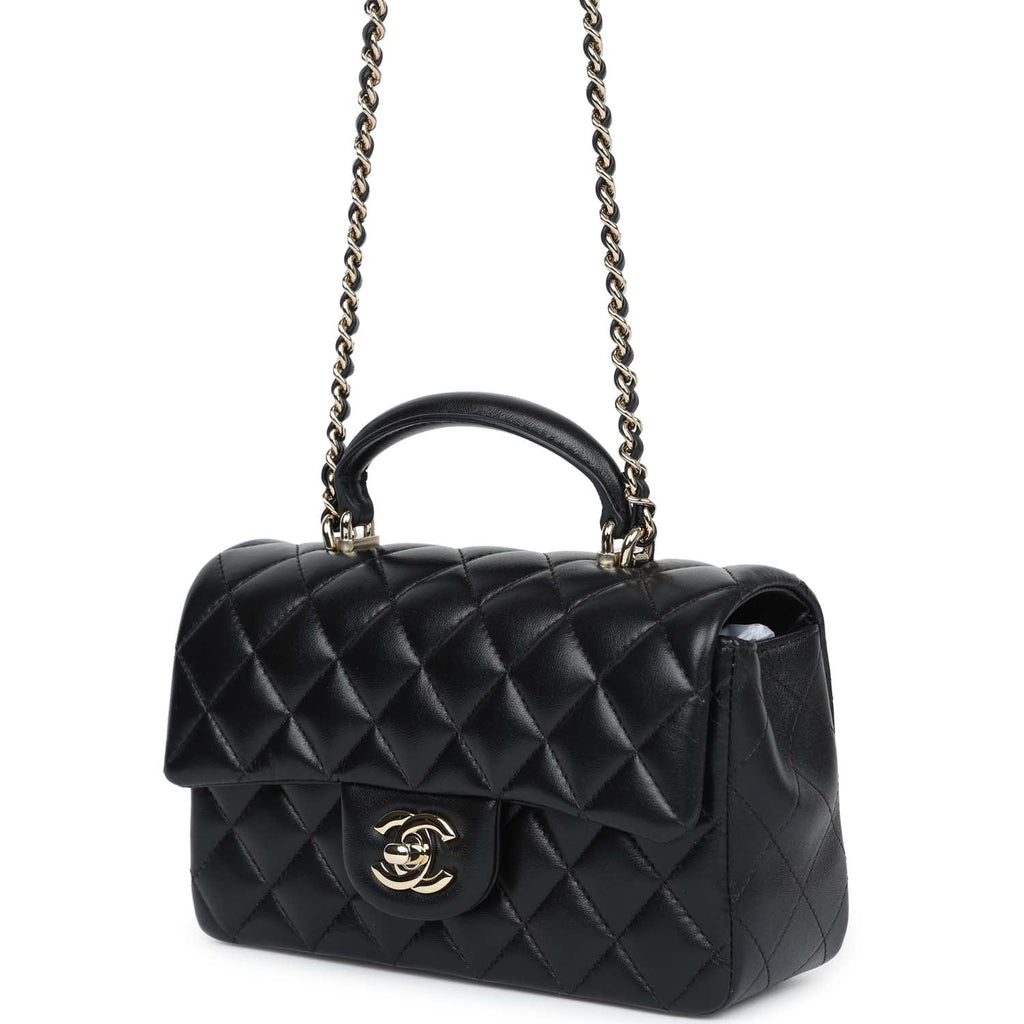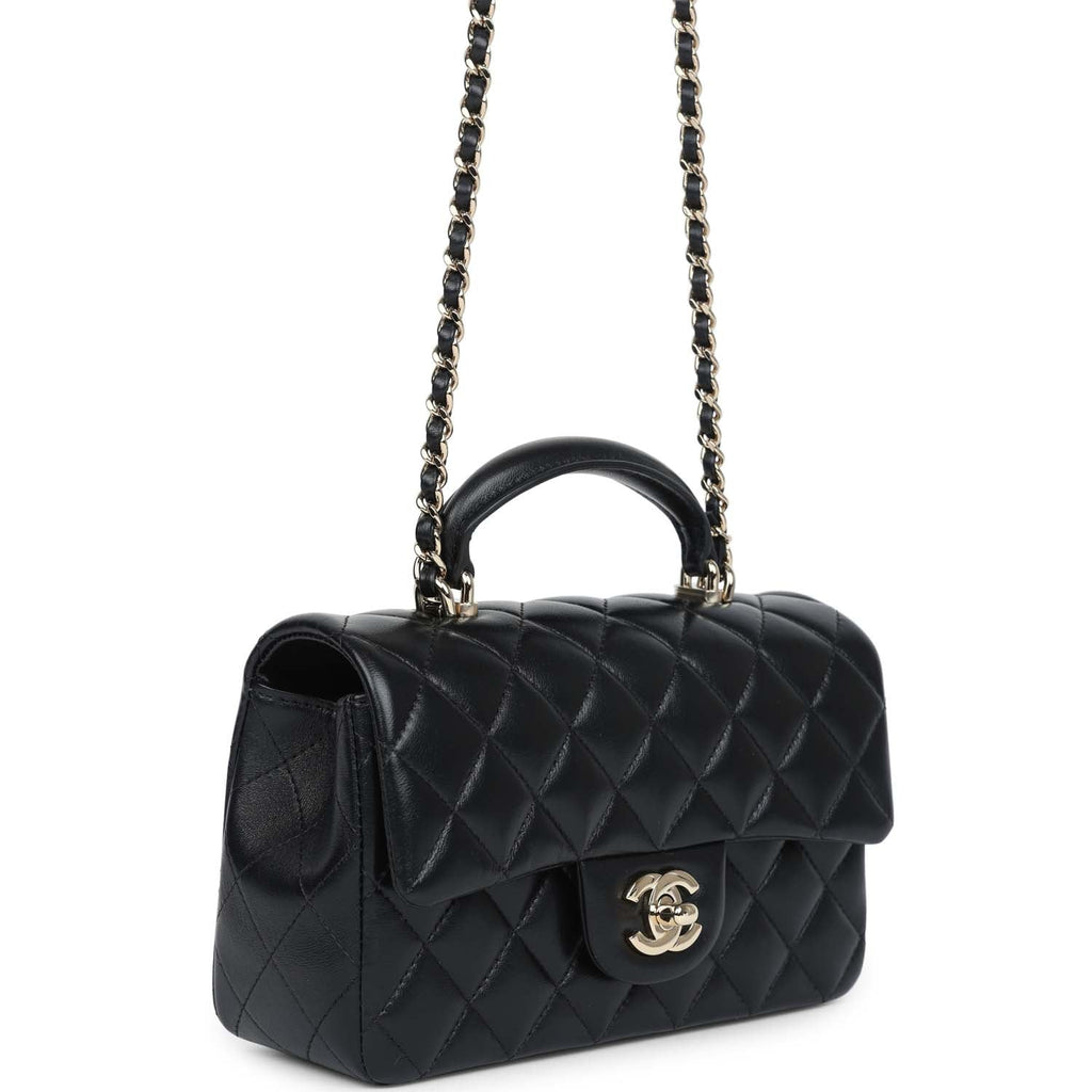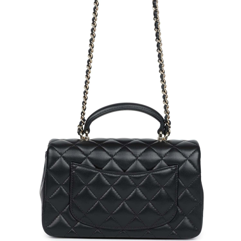 Chanel Mini Rectangular Top Handle Flap Bag Black Lambskin Light Gold Hardware