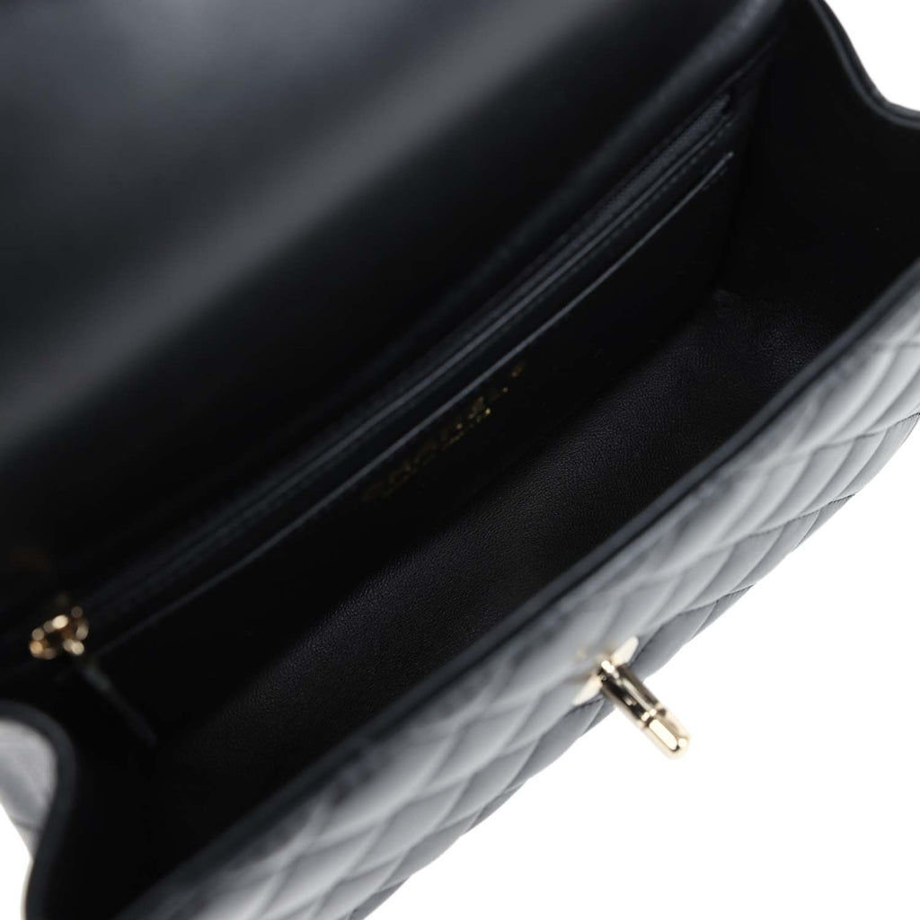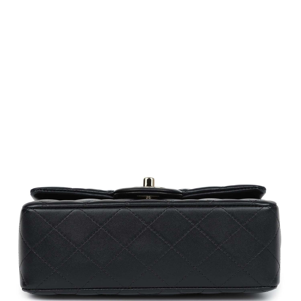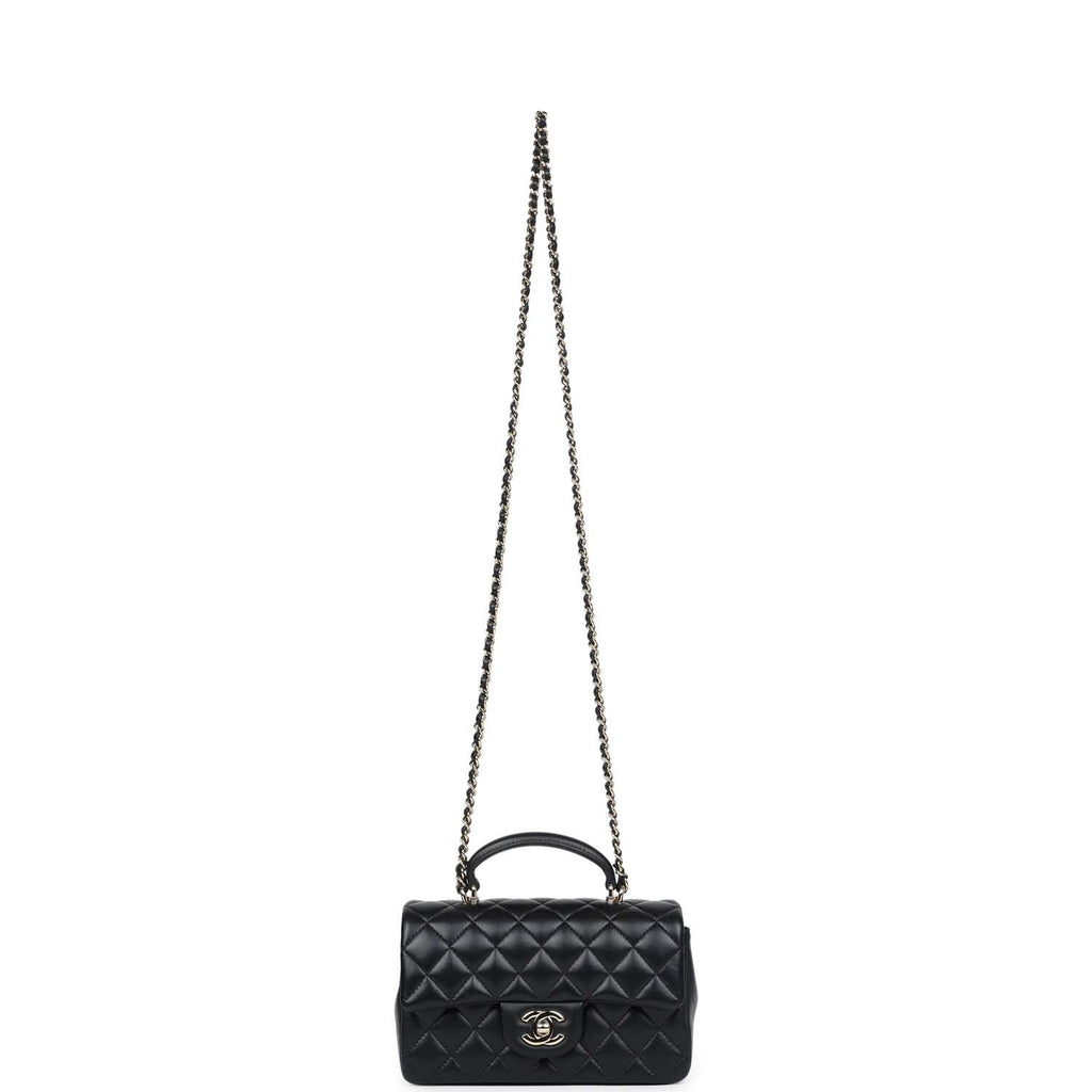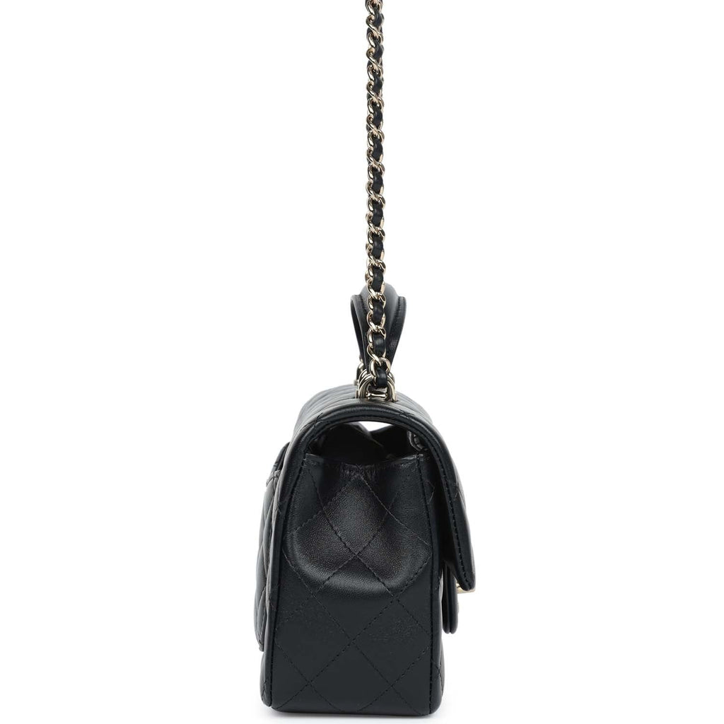 Chanel Mini Rectangular Top Handle Flap Bag Black Lambskin Light Gold Hardware