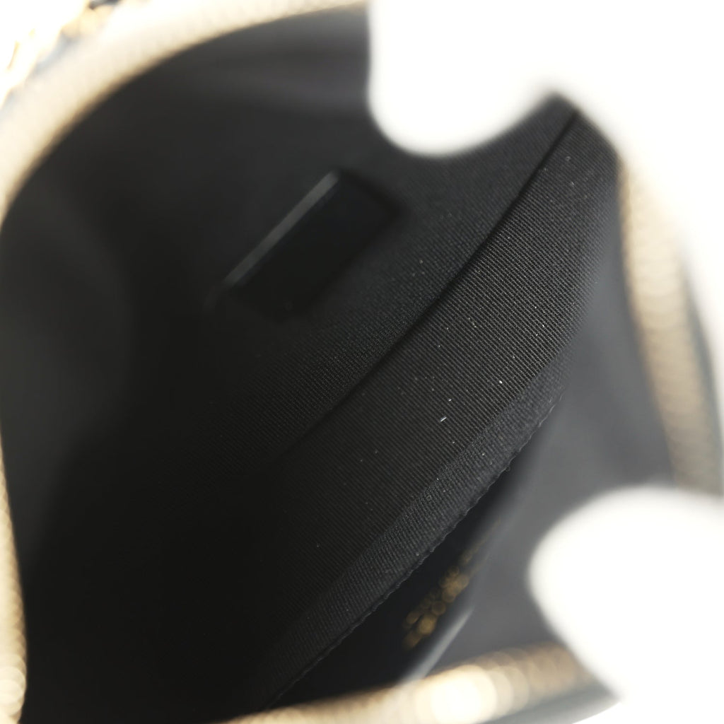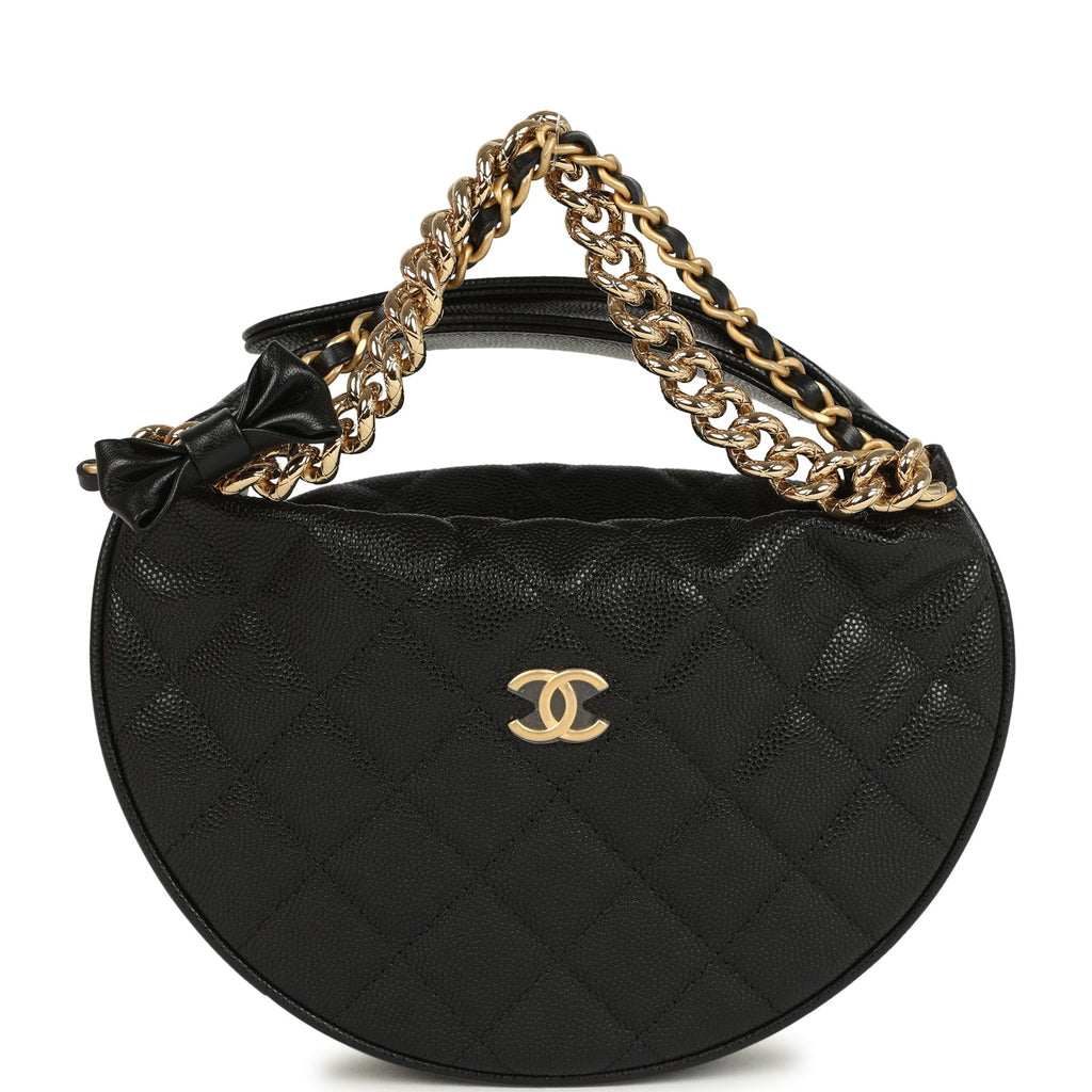 Chanel Mini Round Hobo Pouch Bag Black Shiny Caviar Mixed Metal Hardware