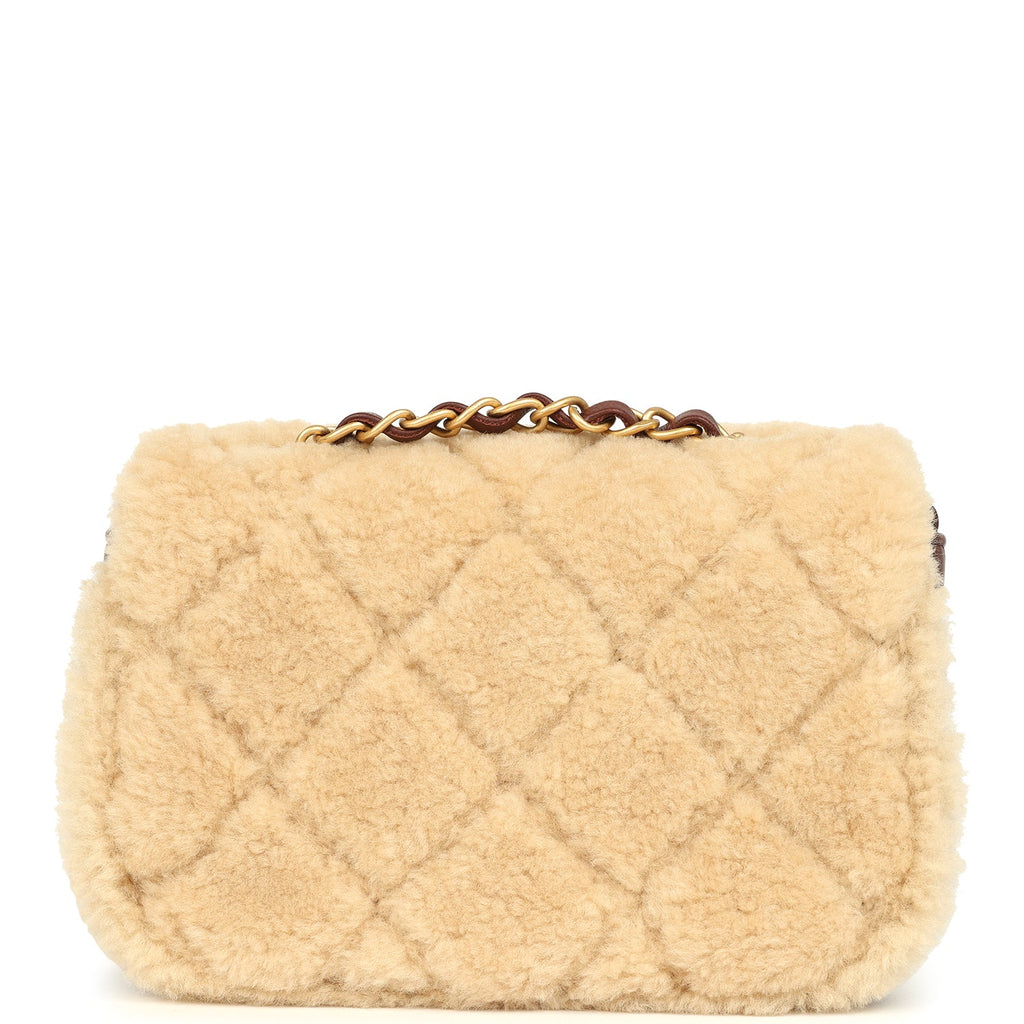 Chanel Mini Shearling Flap Bag Brown Lambskin Brushed Gold Hardware