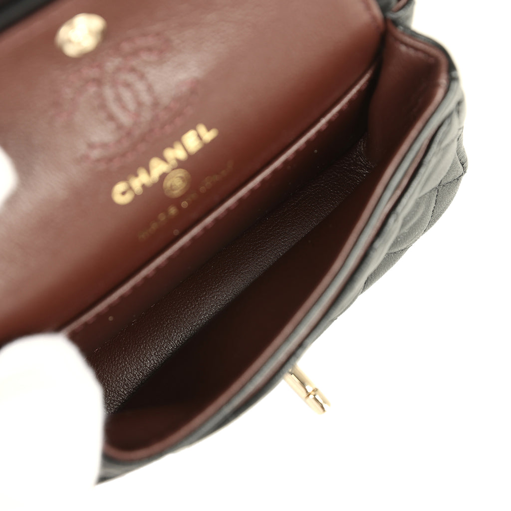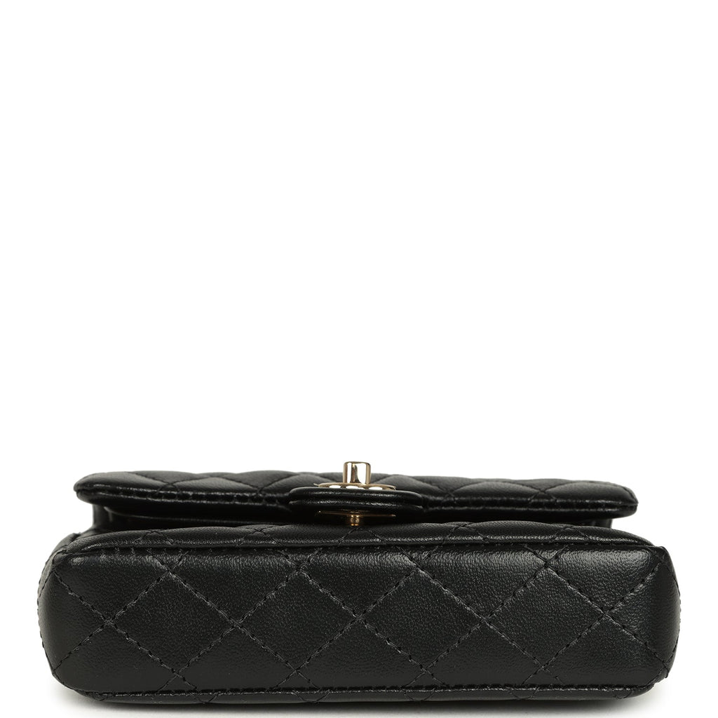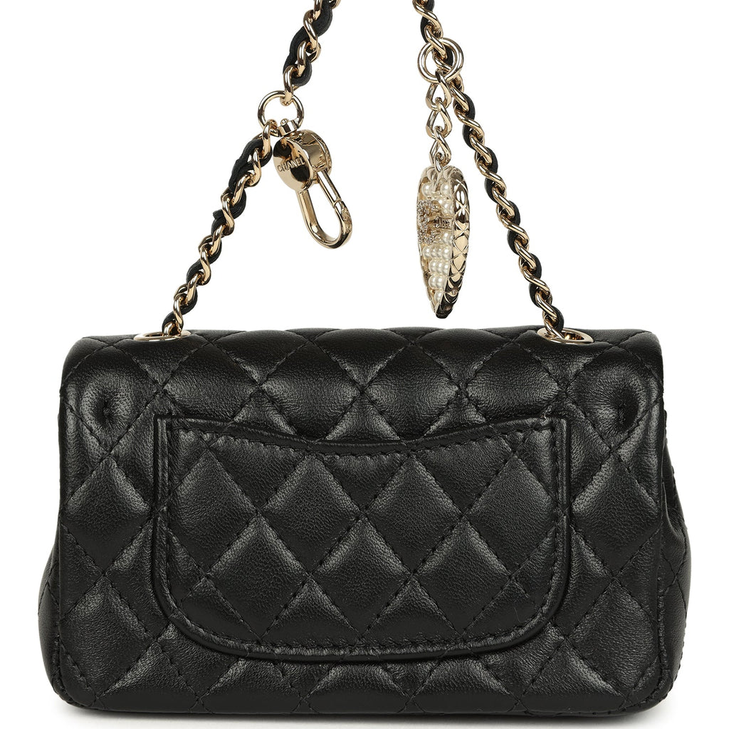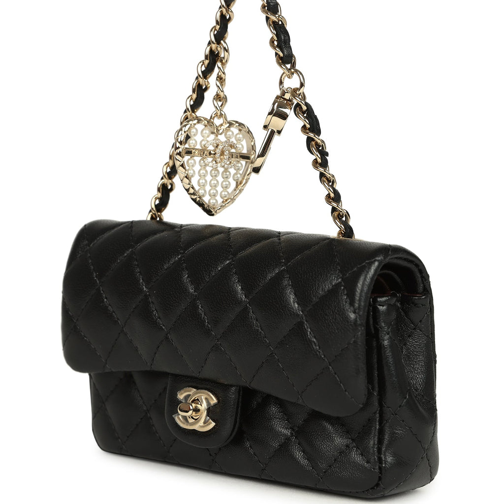 Chanel Nano Classic Double Flap Bag Charm Black Lambskin Light Gold Hardware
