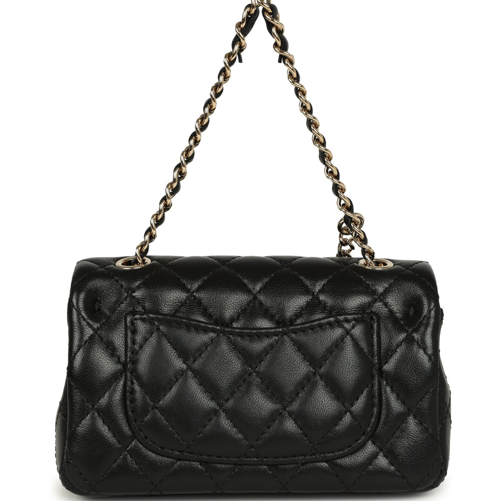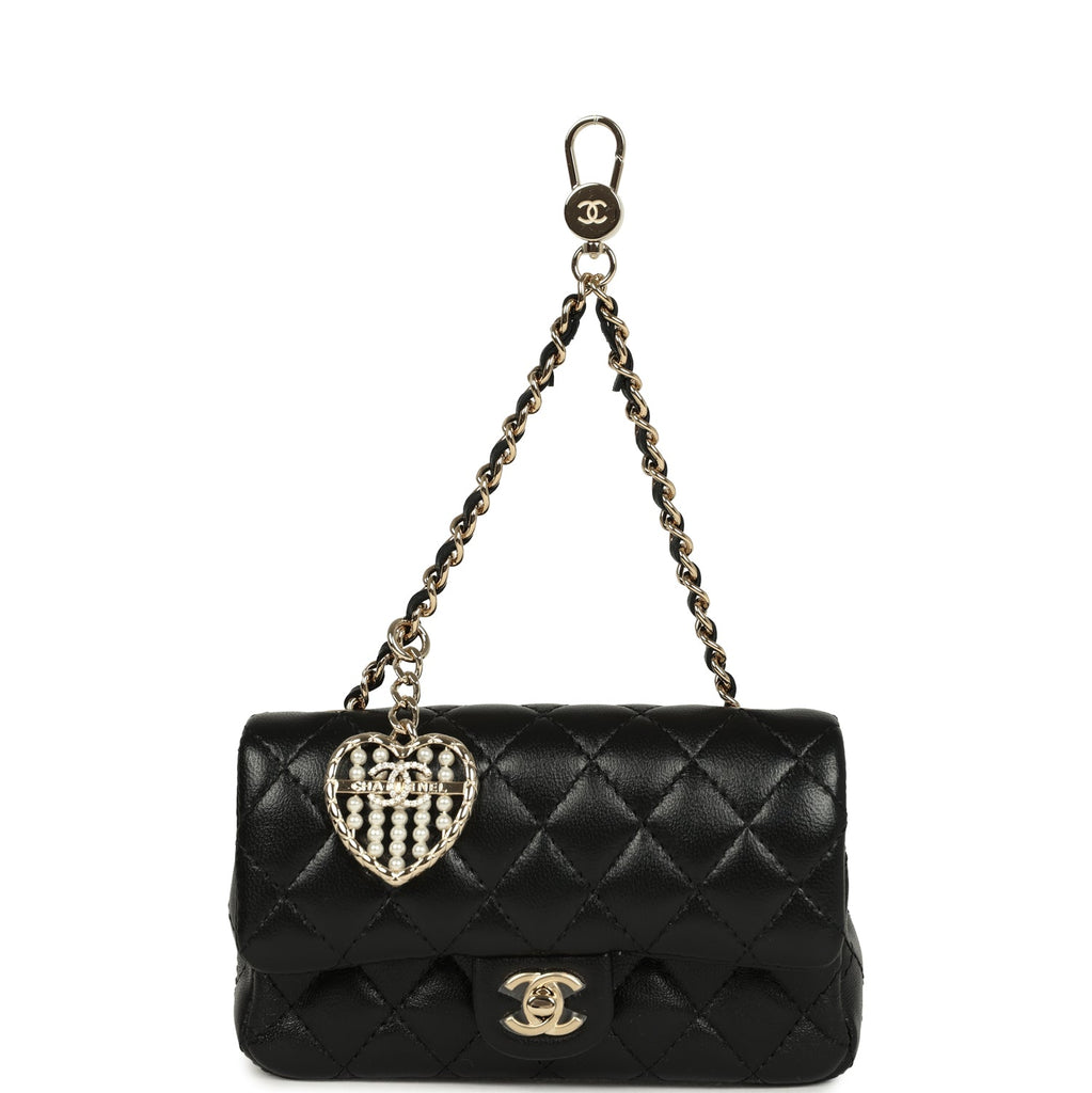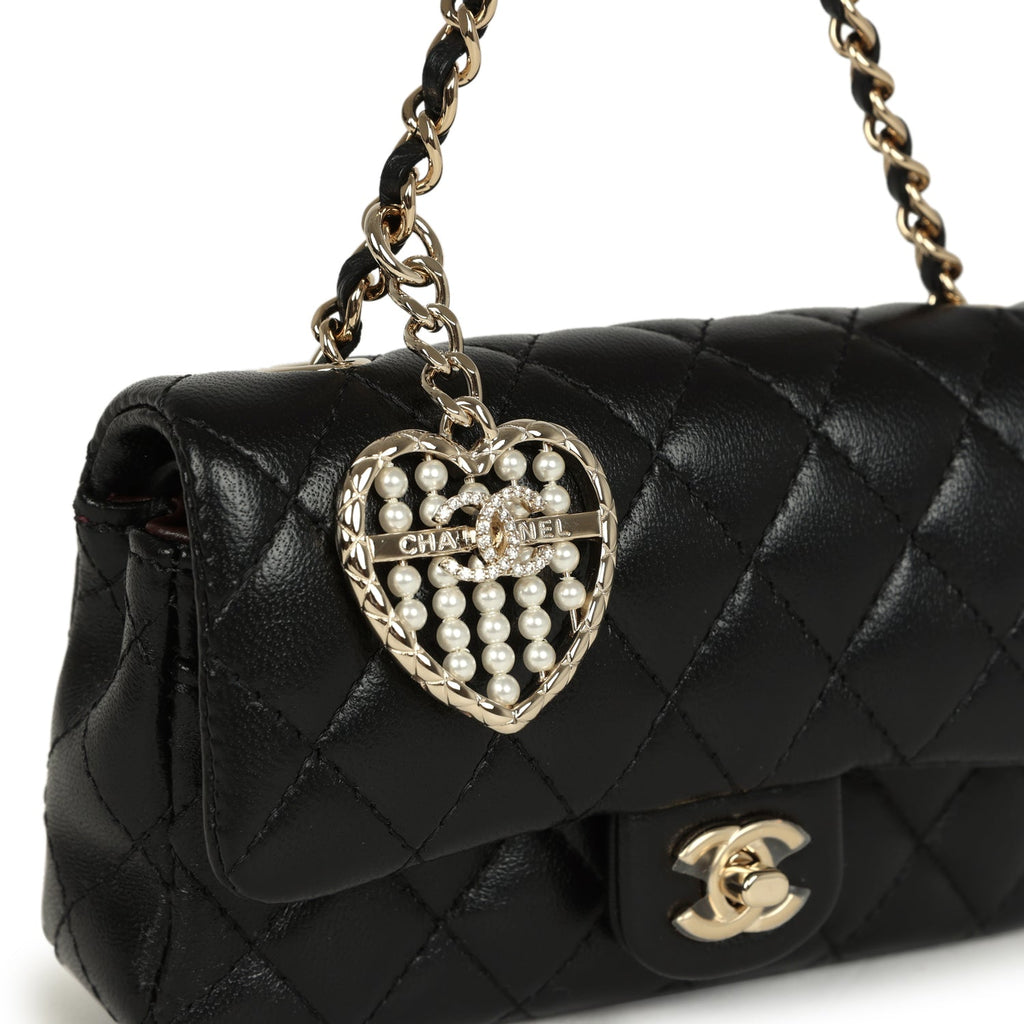 Chanel Nano Classic Double Flap Bag Charm Black Lambskin Light Gold Hardware