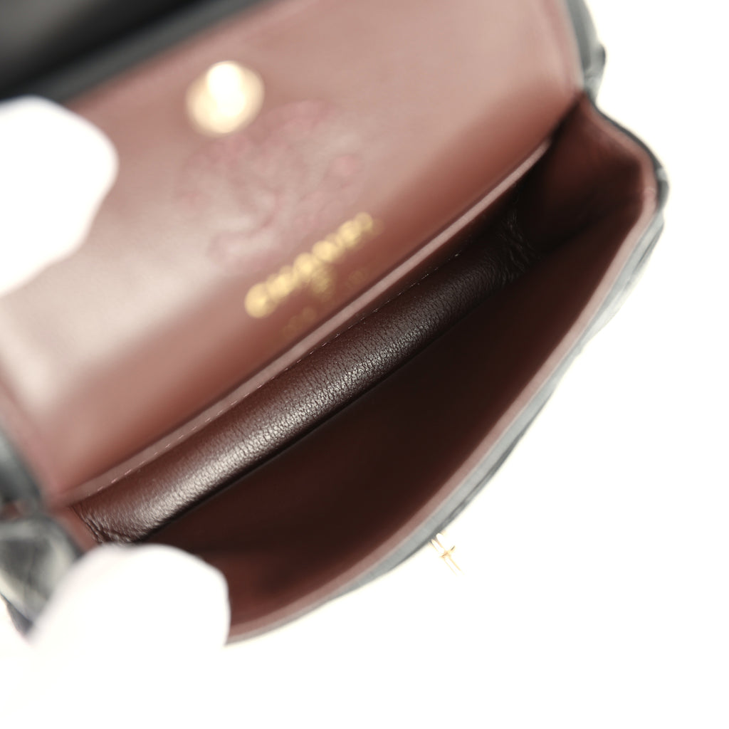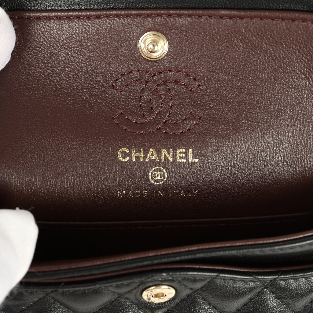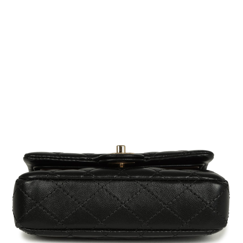 Chanel Nano Classic Double Flap Bag Charm Black Lambskin Light Gold Hardware
