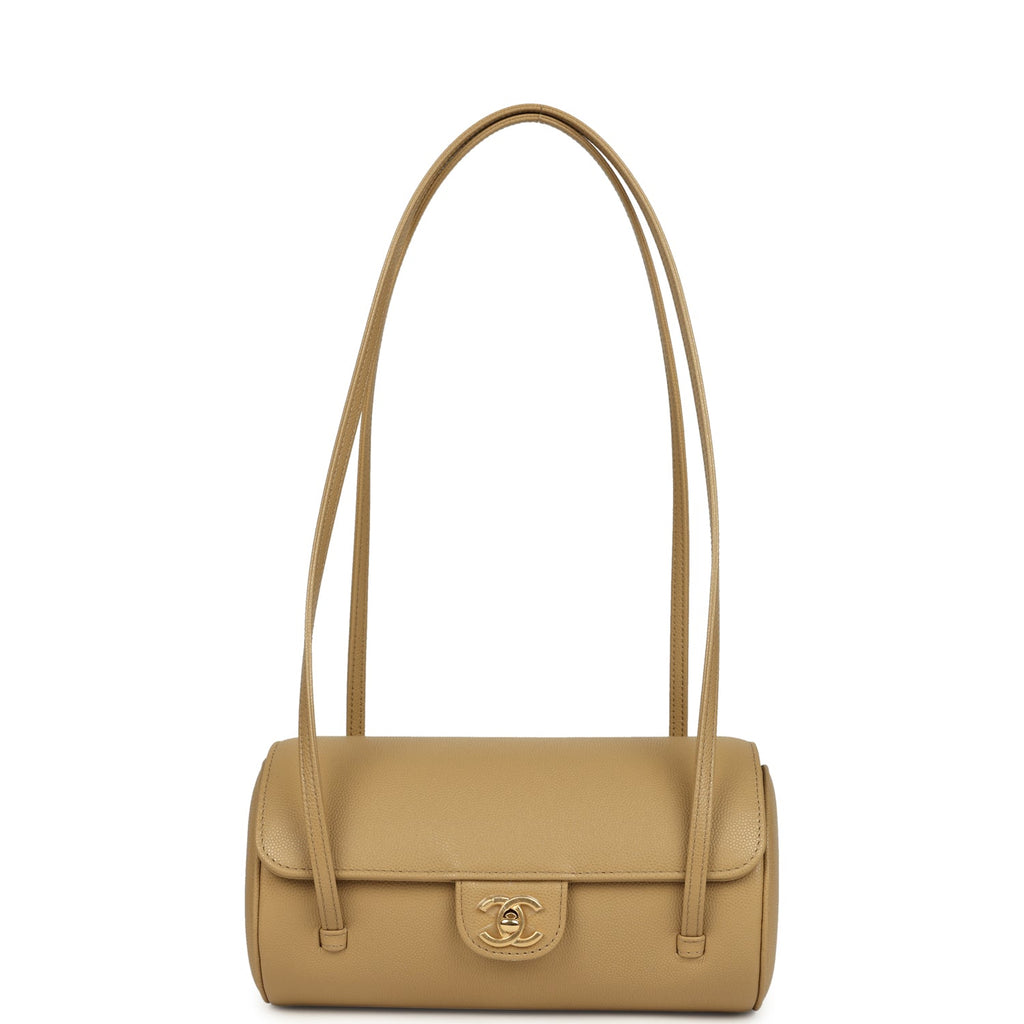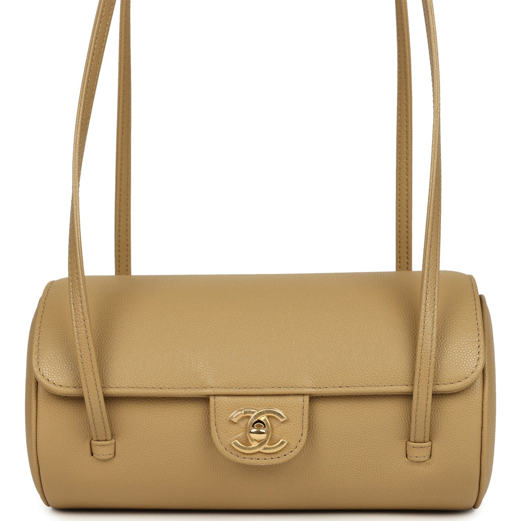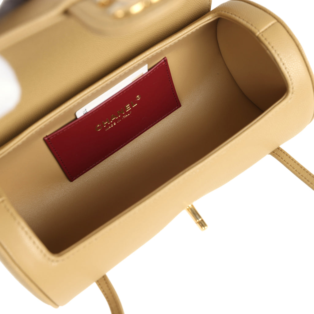 Chanel Preppy Coco Bowling Bag Dark Beige Shiny Caviar Brushed Gold Hardware