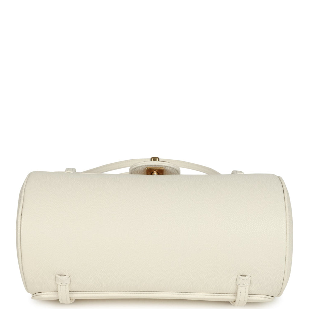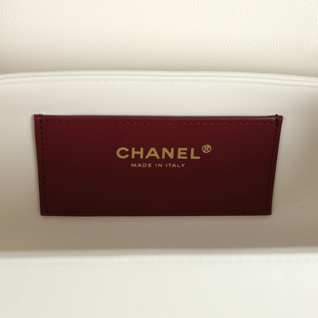 Chanel Preppy Coco Bowling Bag White Shiny Caviar Brushed Gold Hardware