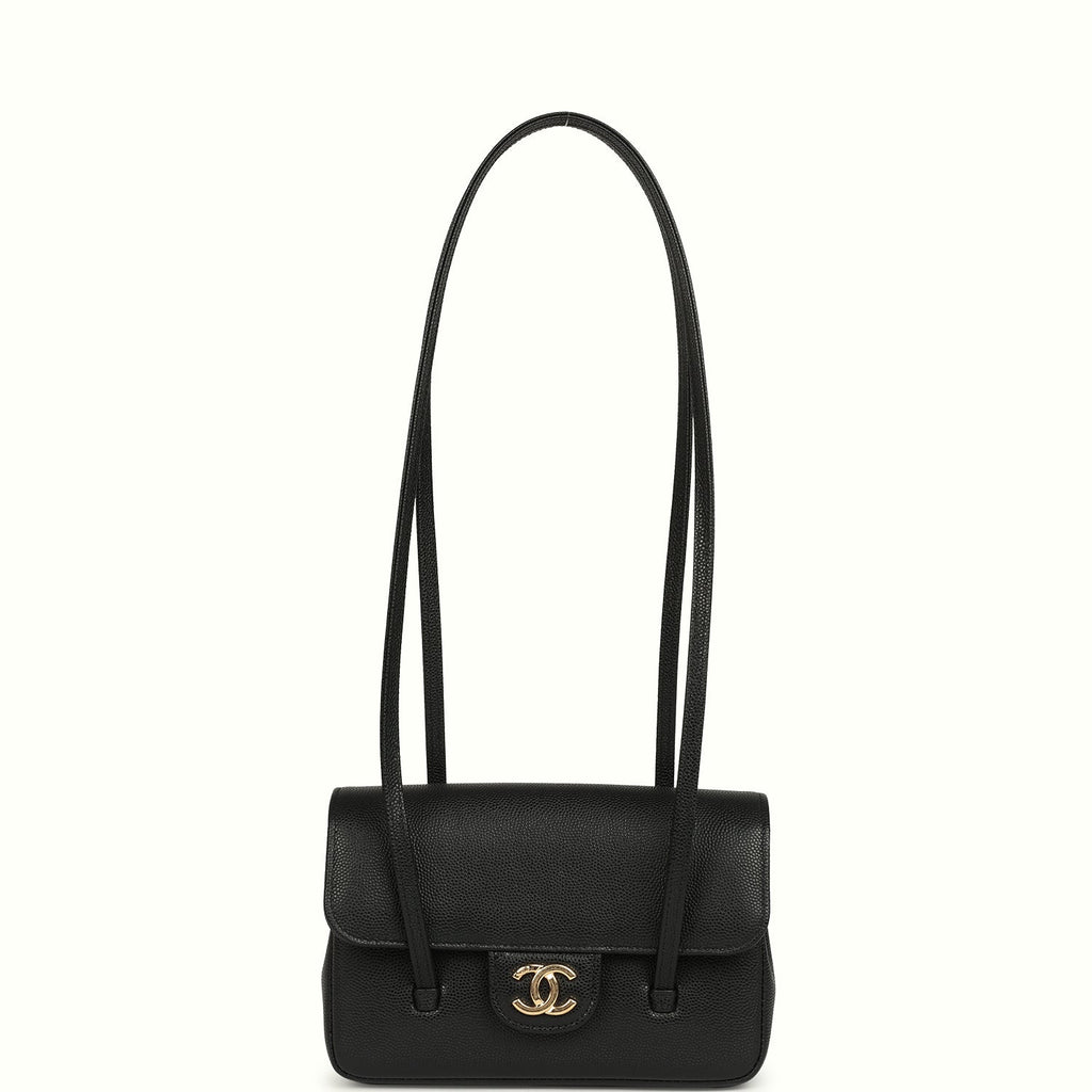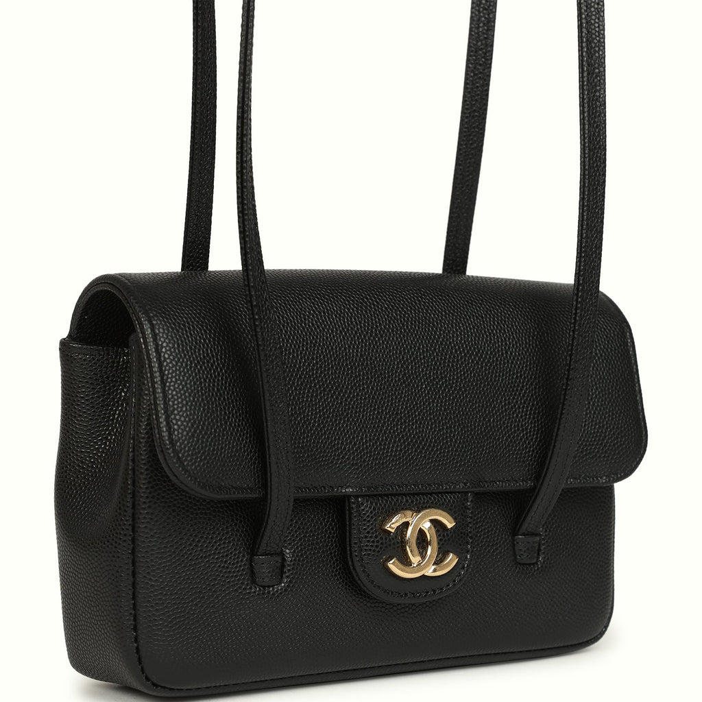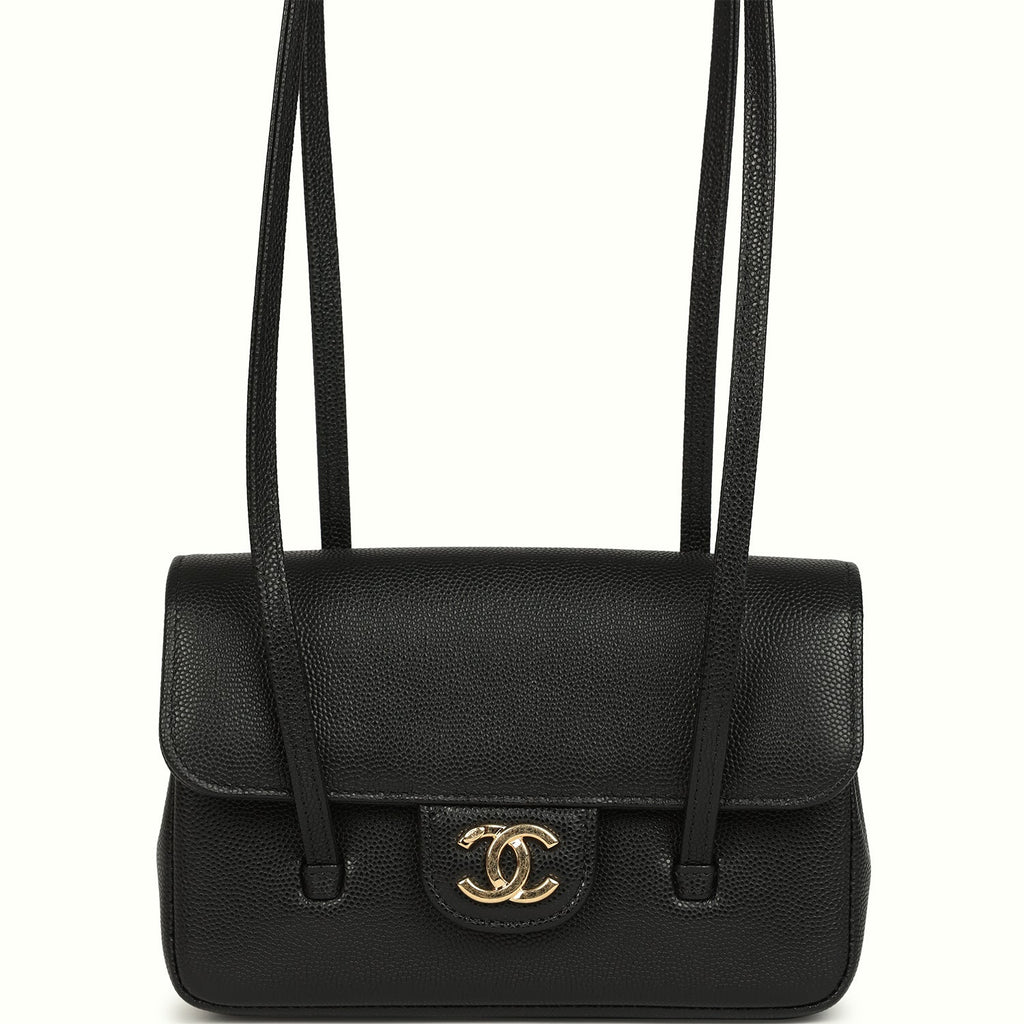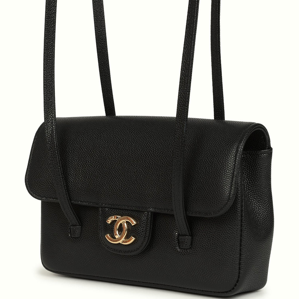 Chanel Preppy Coco Clutch with Straps Black Shiny Caviar Brushed Gold Hardware