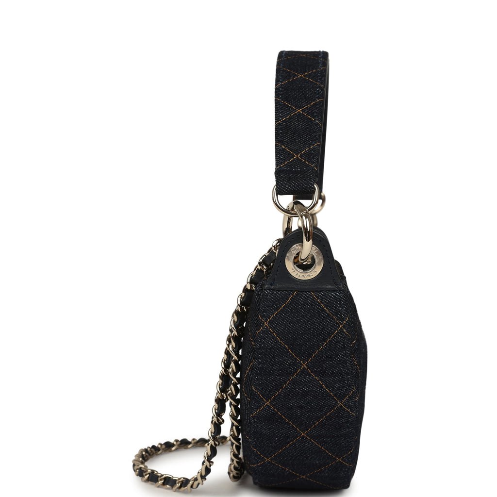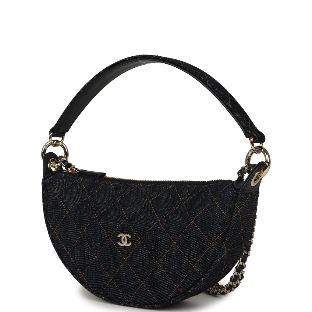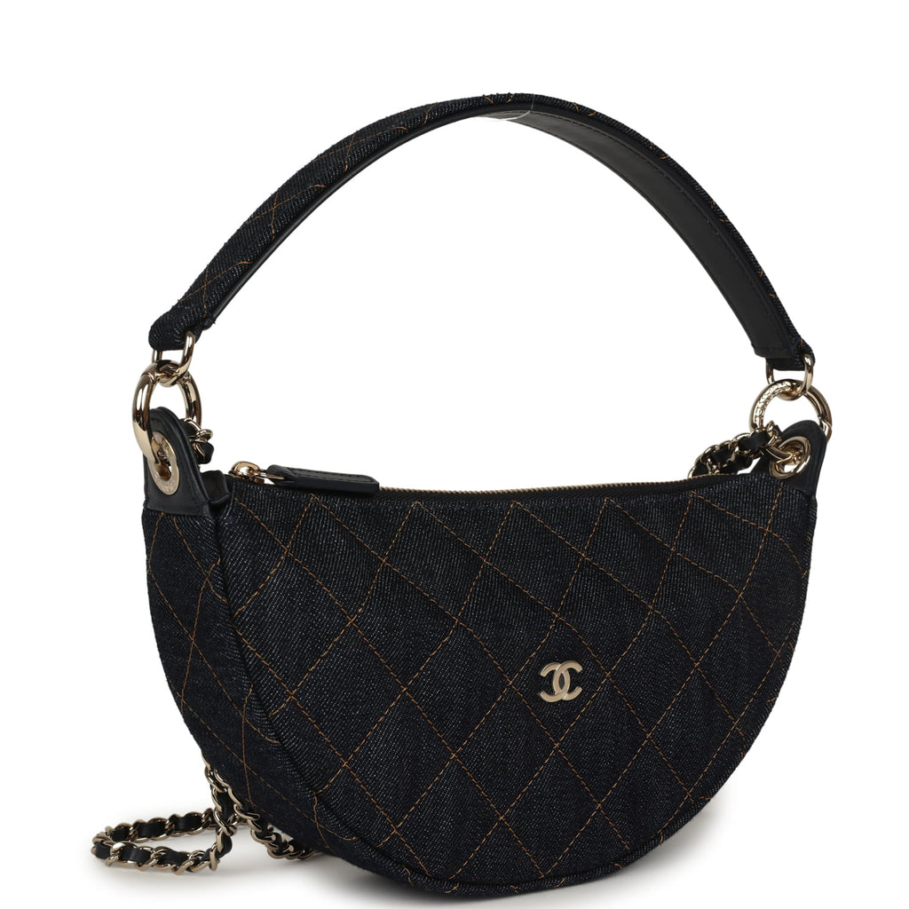 Chanel Round Clutch with Chain Dark Blue Denim Light Gold Hardware