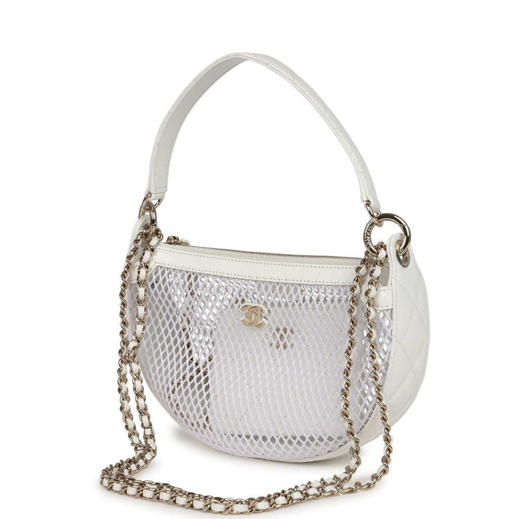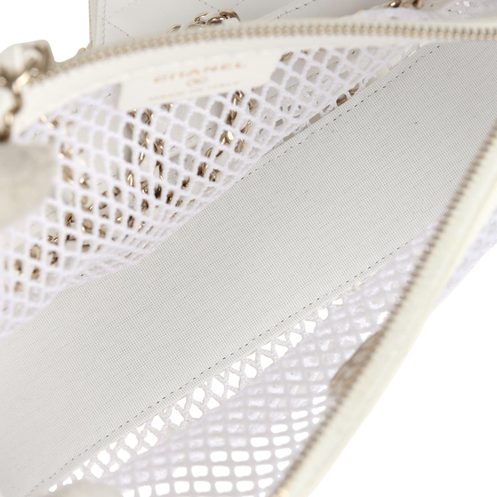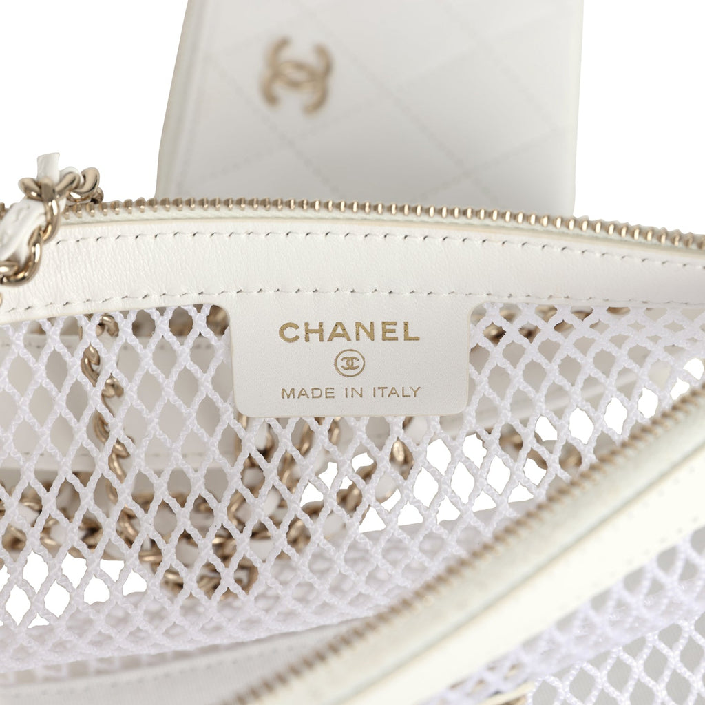 Chanel Round Clutch with Chain White Mesh Light Gold Hardware