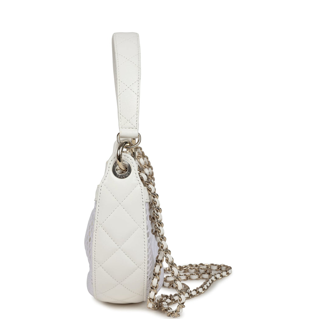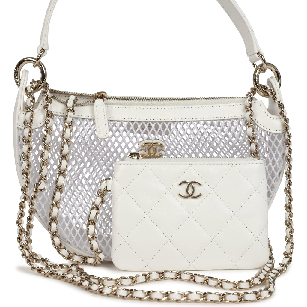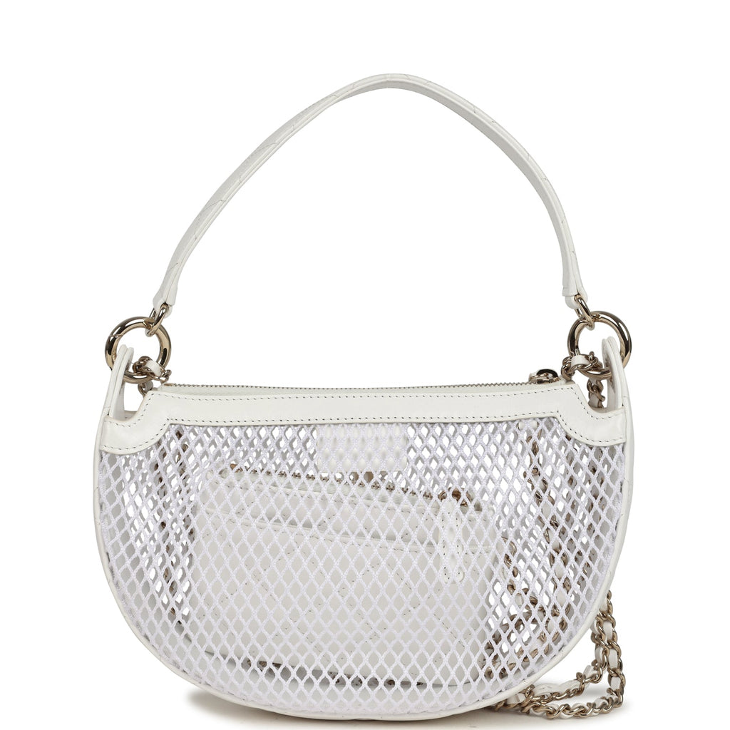 Chanel Round Clutch with Chain White Mesh Light Gold Hardware