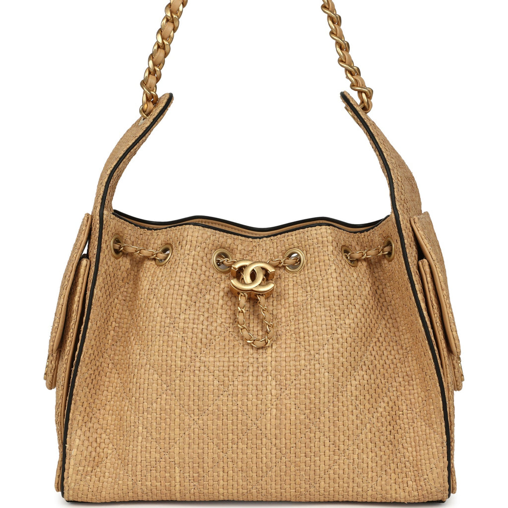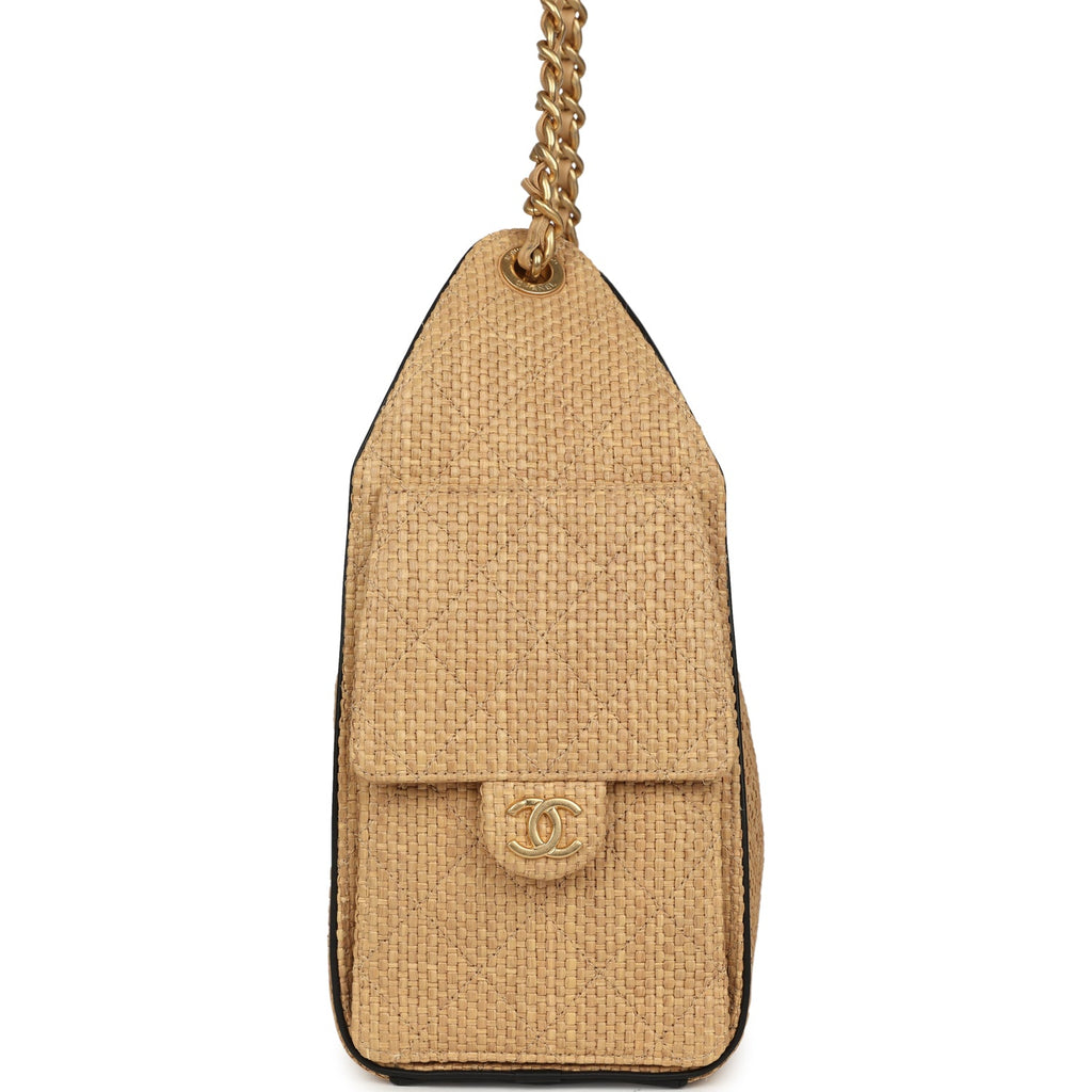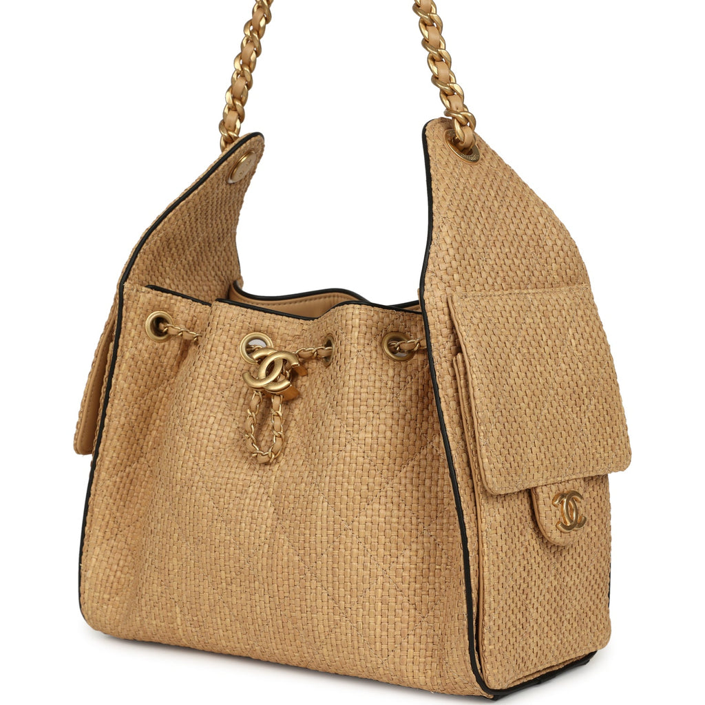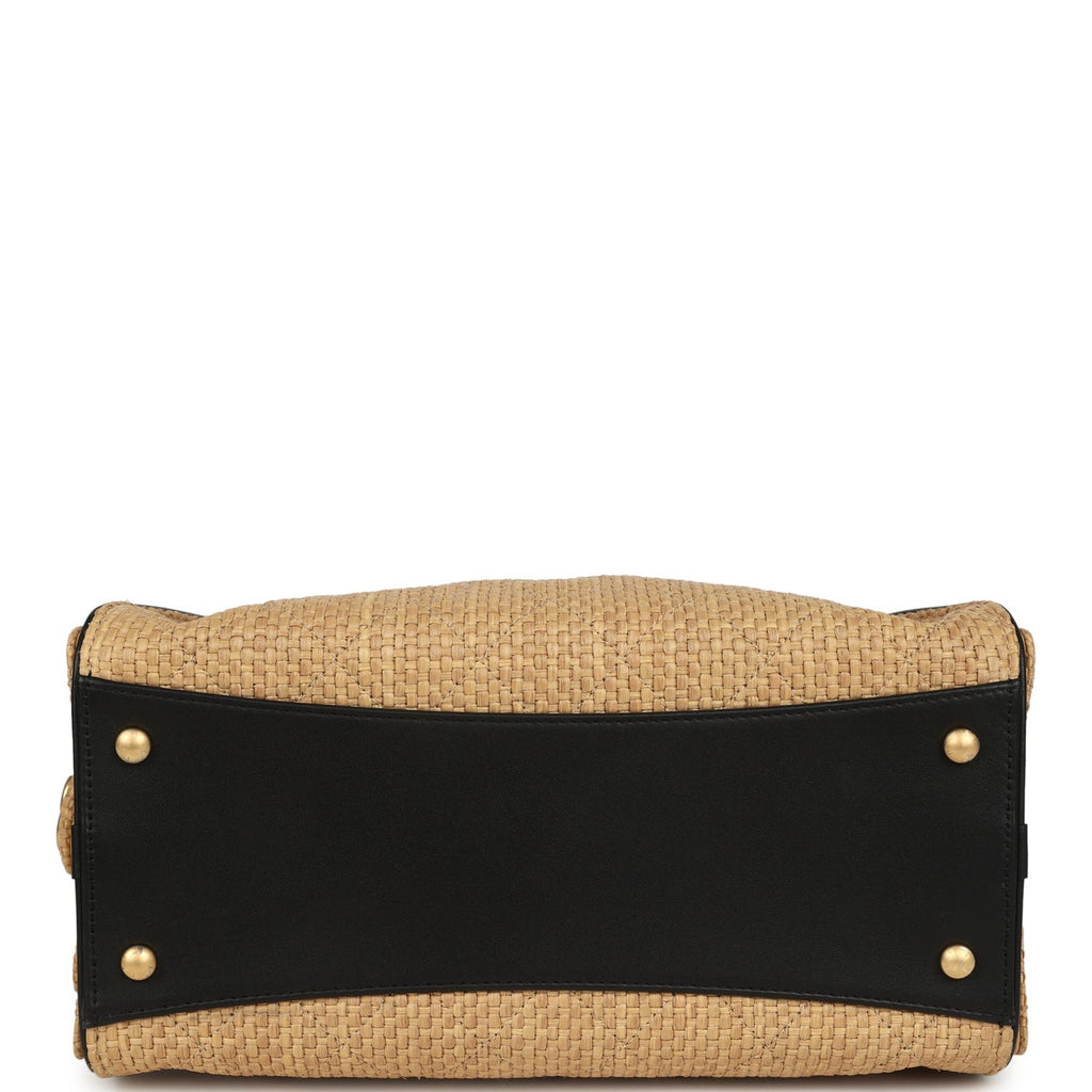 Chanel Small 25 Hobo Bag Beige Raffia and Black Calfskin Antique Gold Hardware