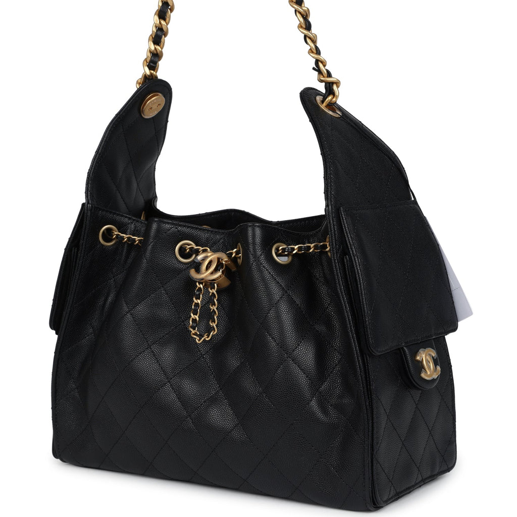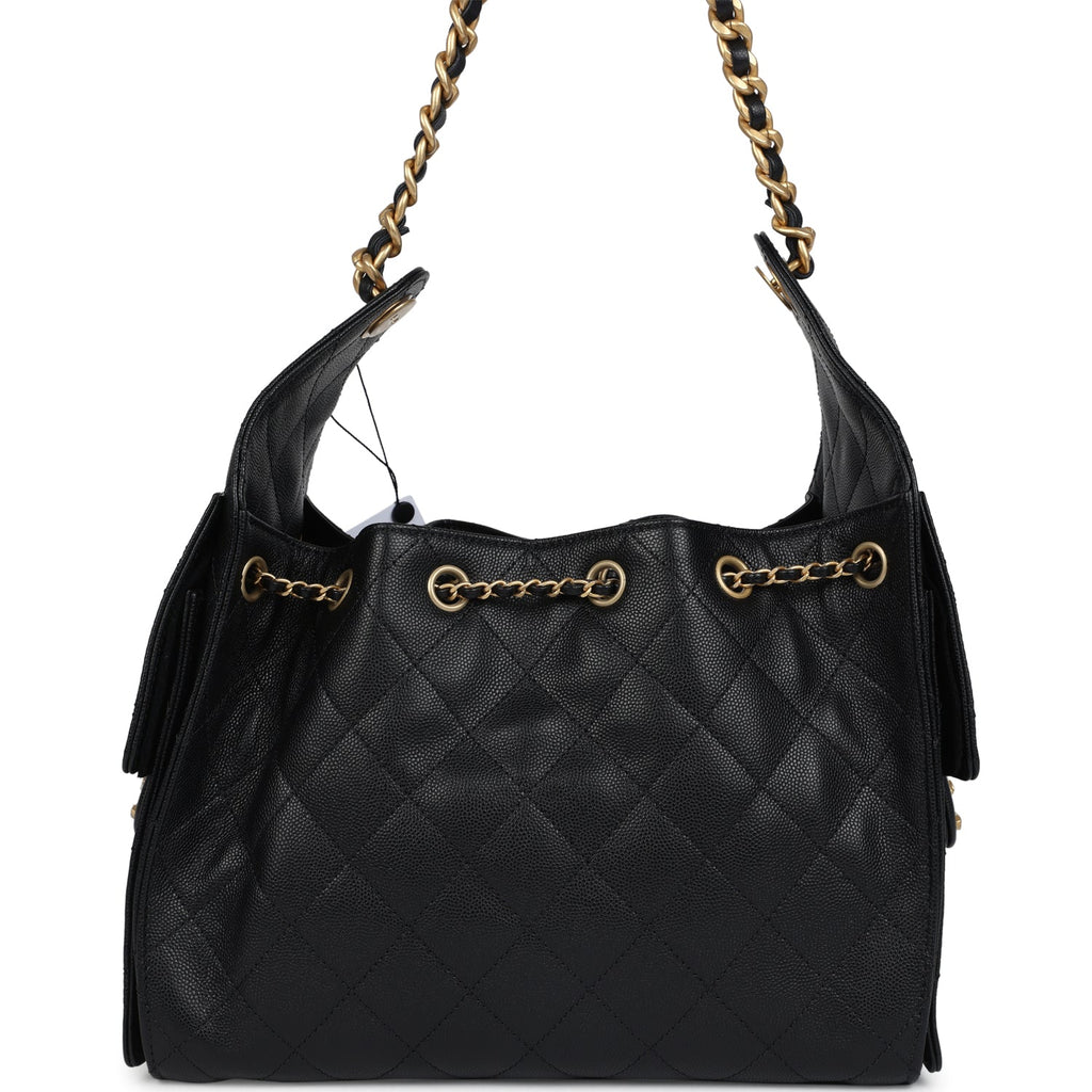Chanel Small 25 Hobo Bag Black Caviar Antique Gold Hardware