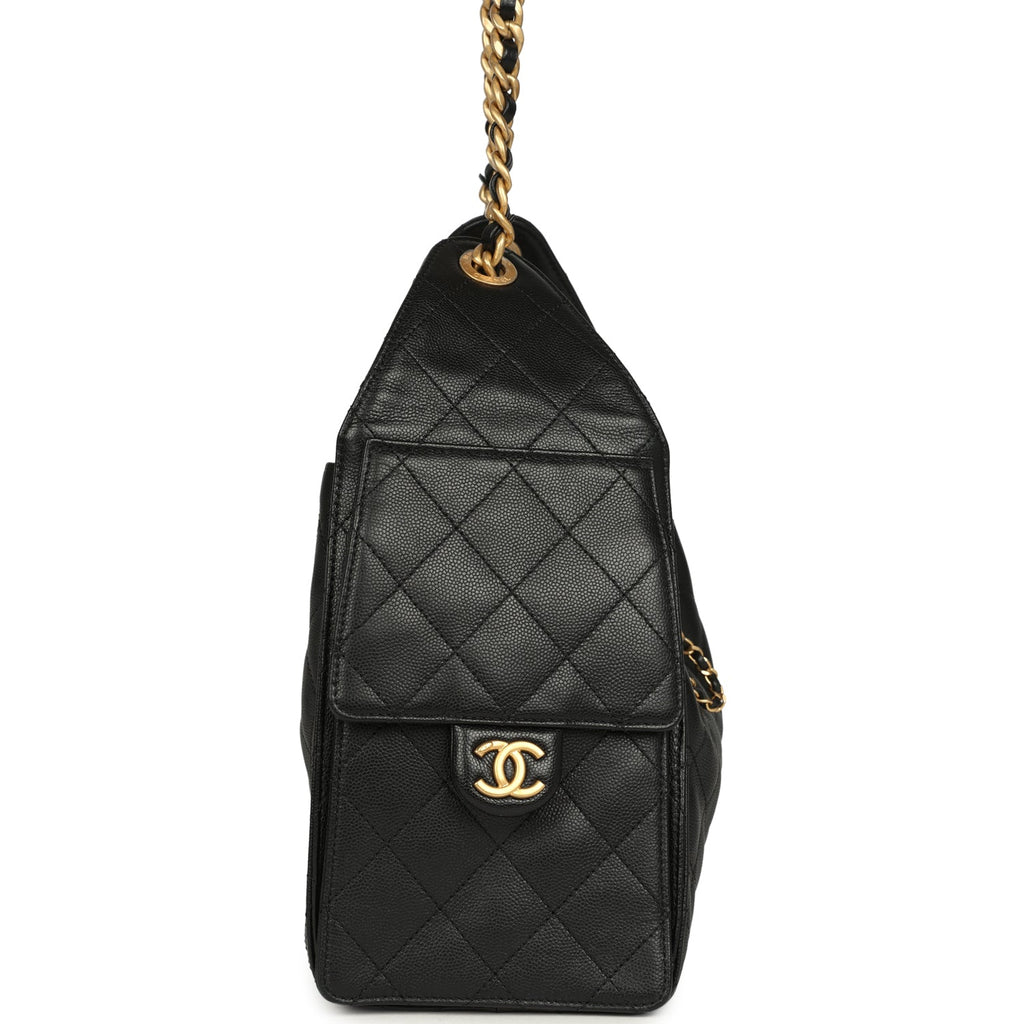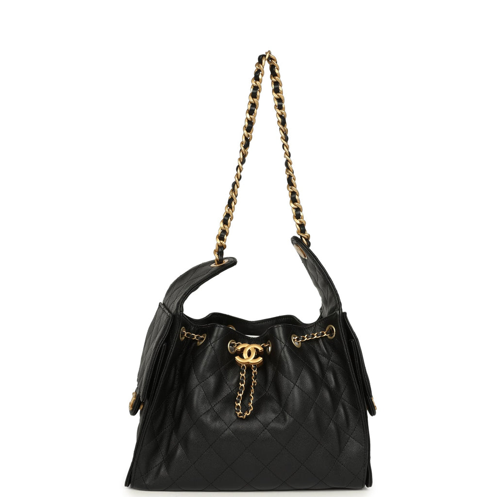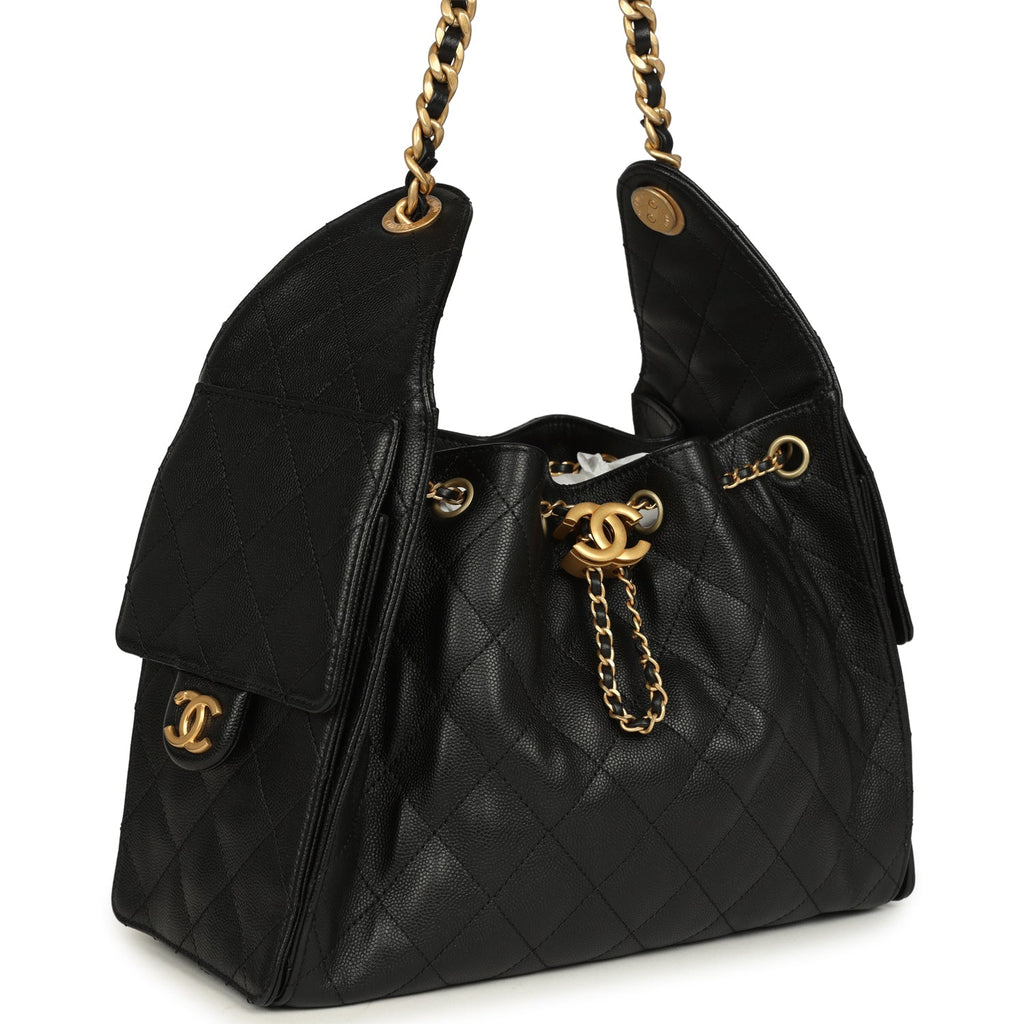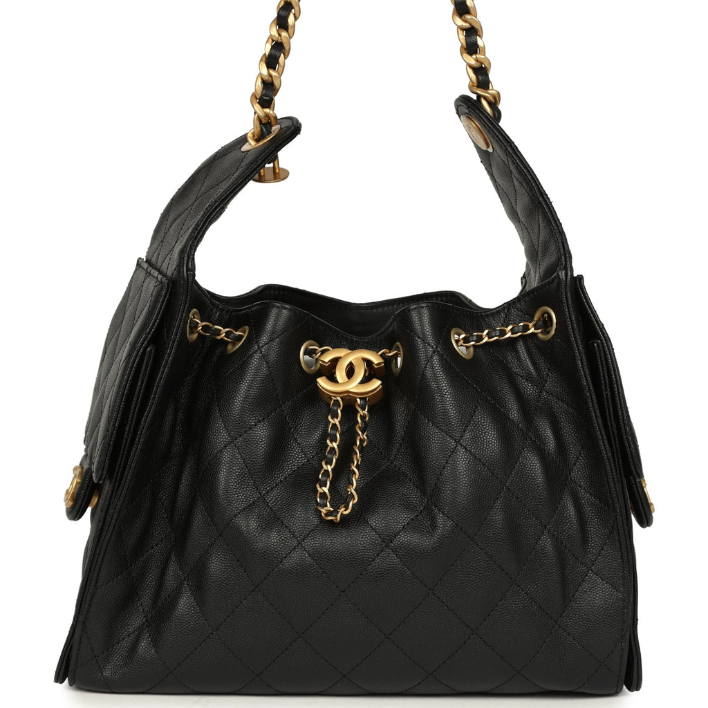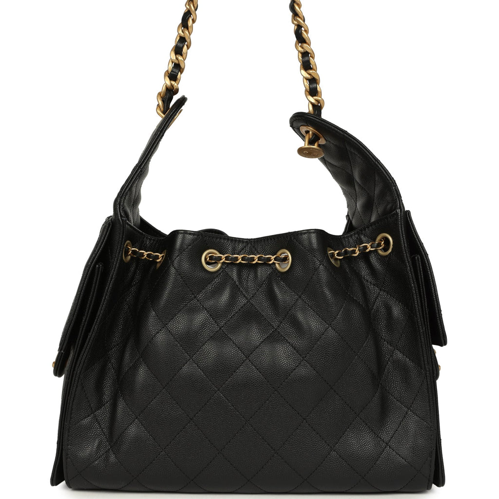 Chanel Small 25 Hobo Bag Black Caviar Antique Gold Hardware