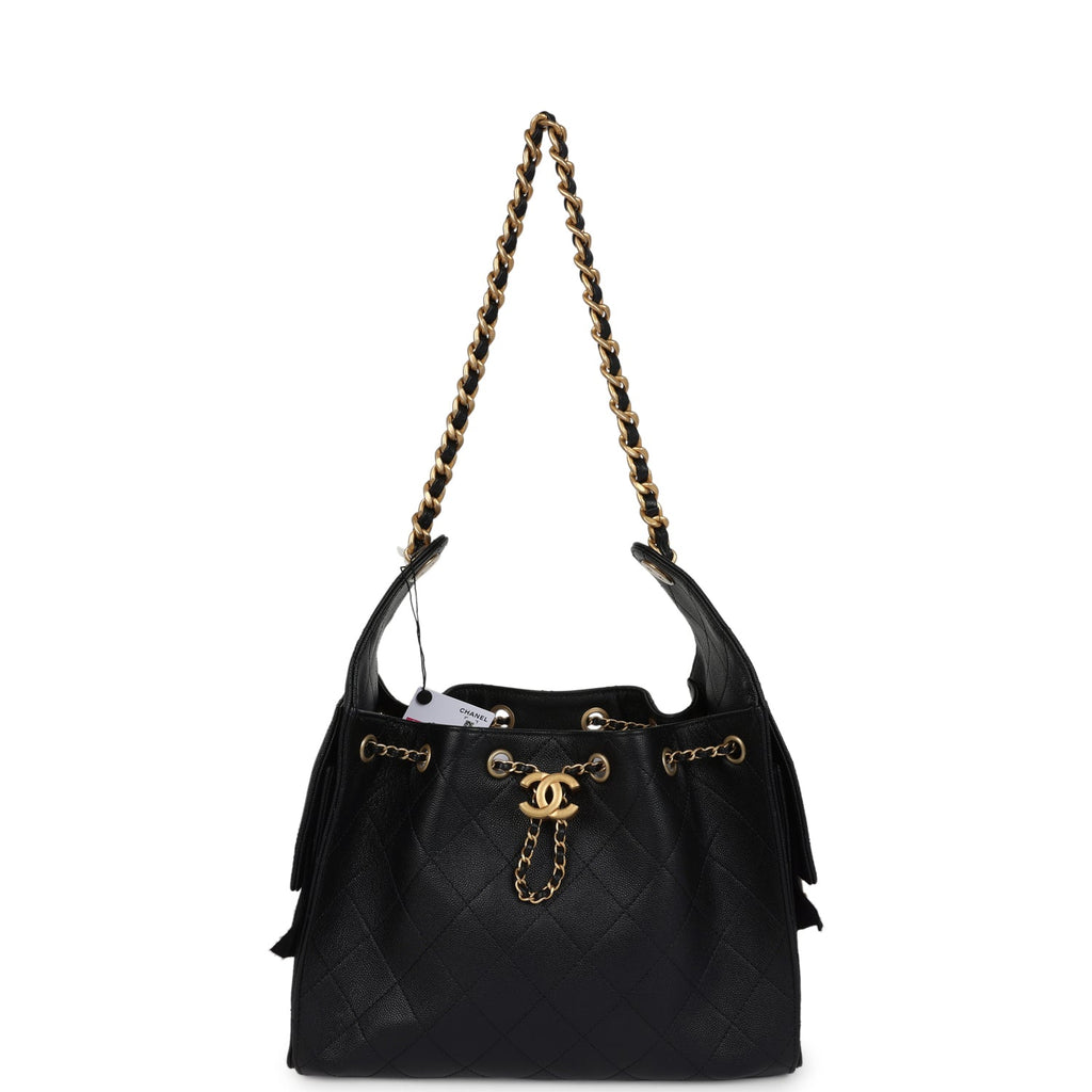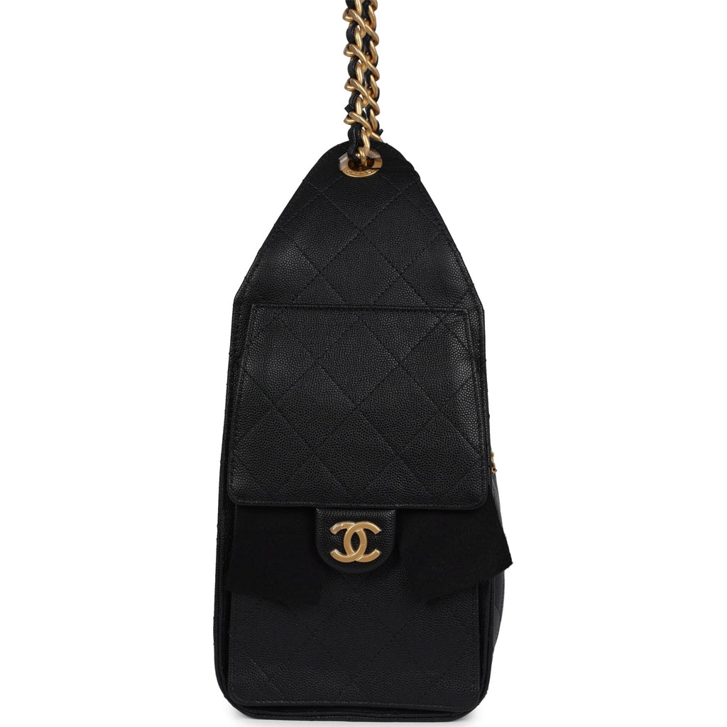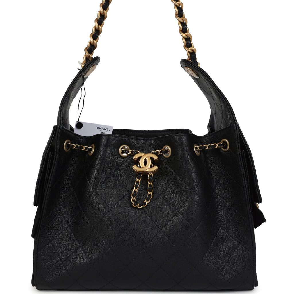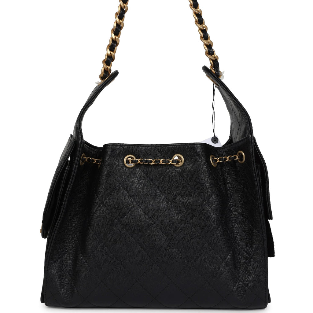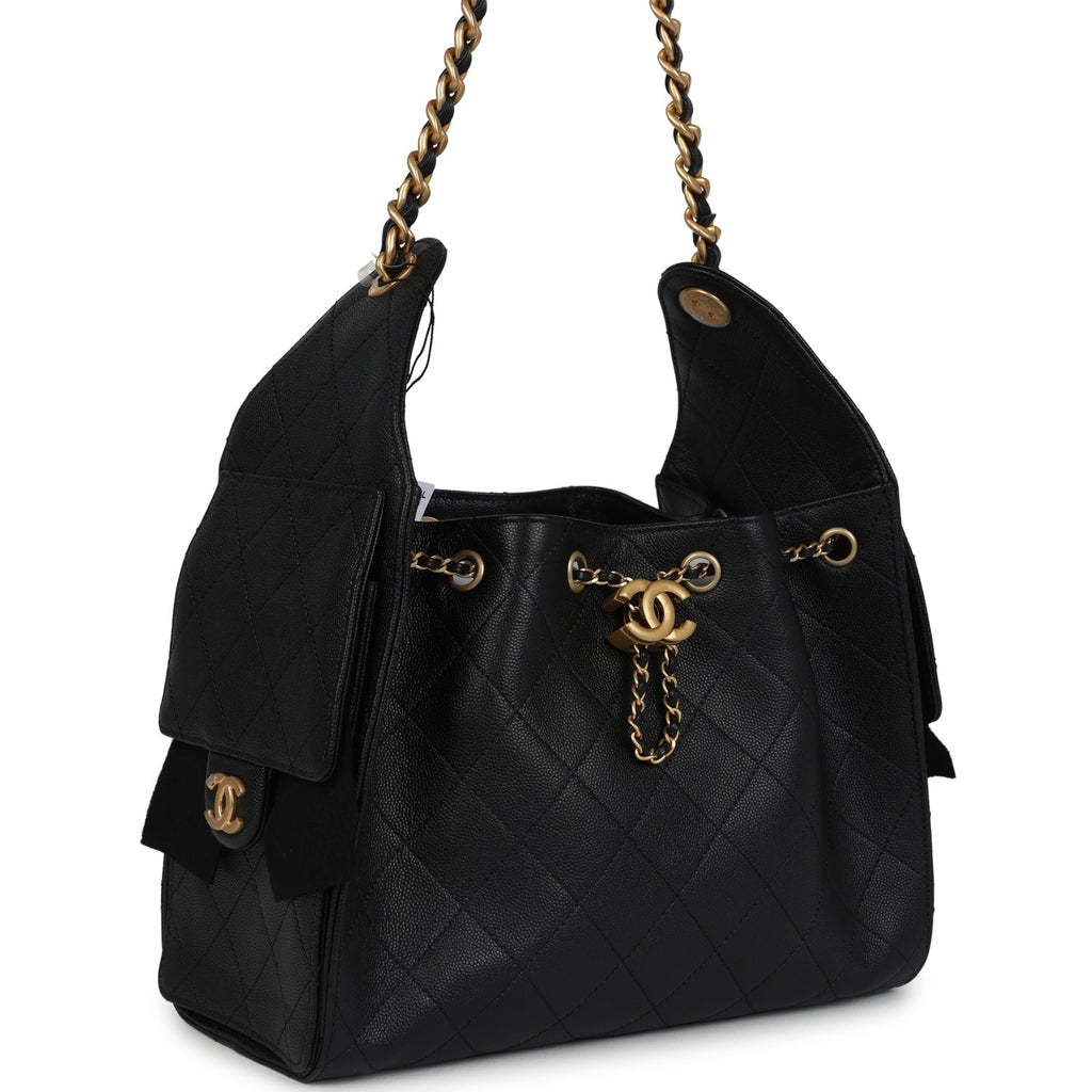 Chanel Small 25 Hobo Bag Black Caviar Antique Gold Hardware