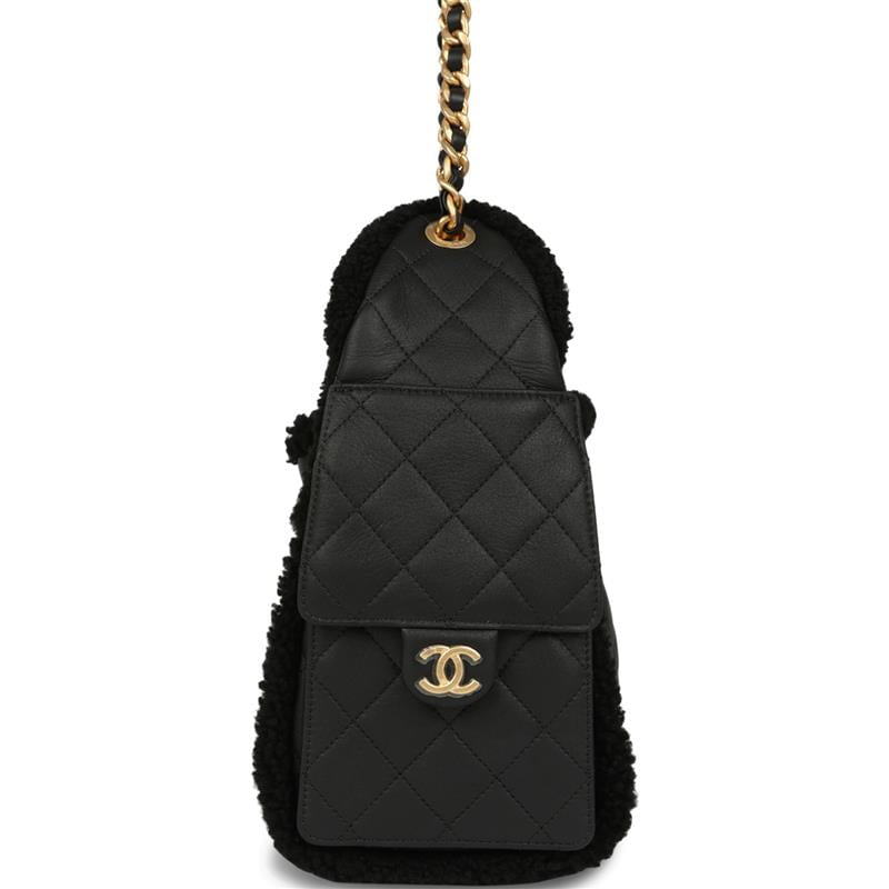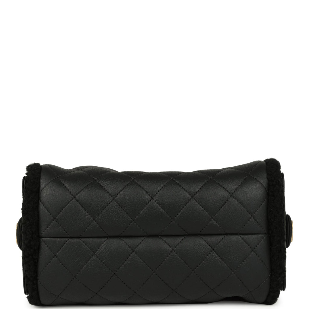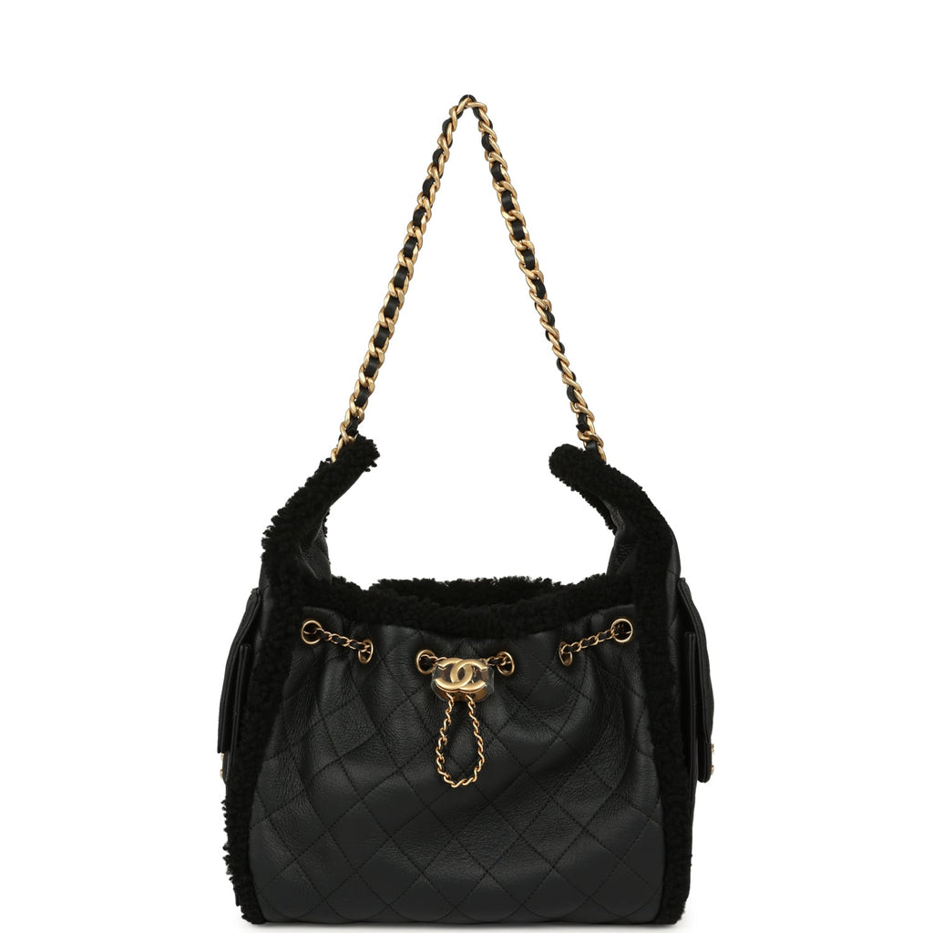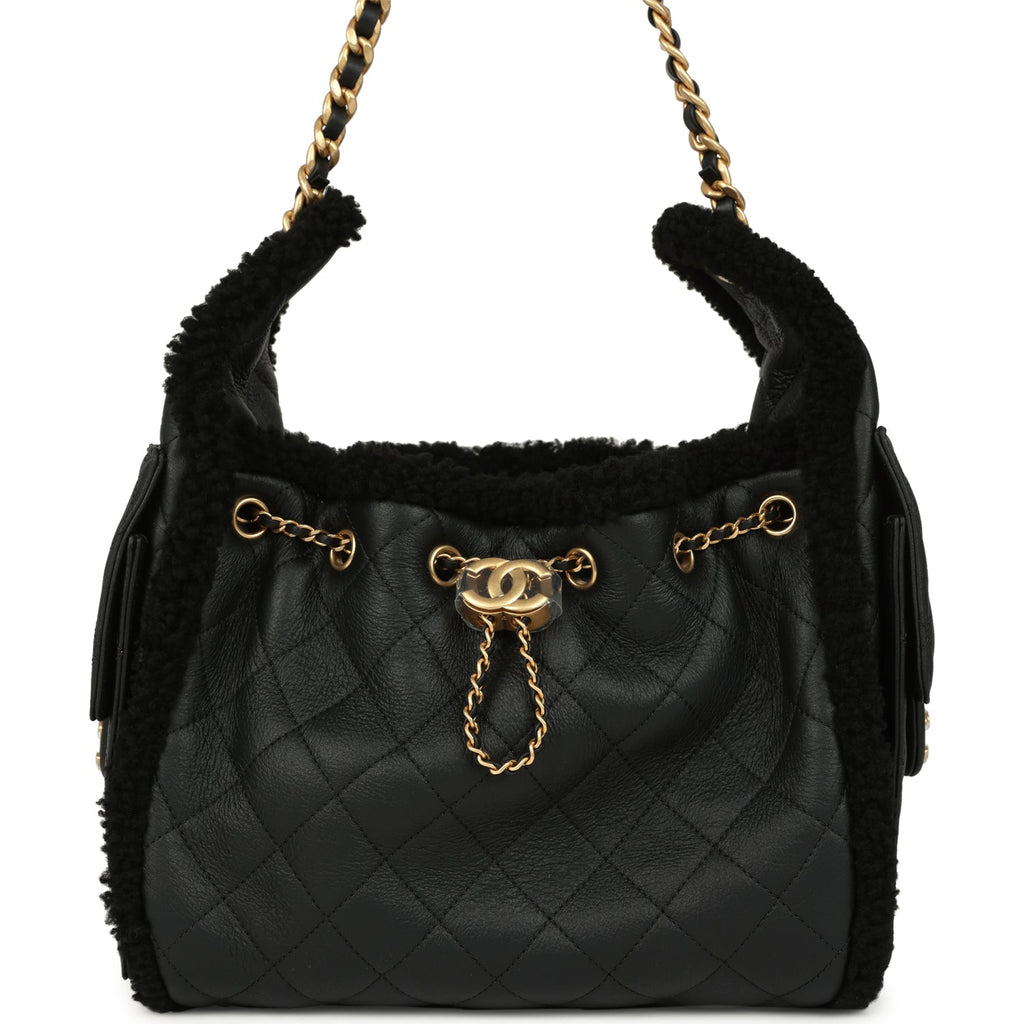 Chanel Small 25 Hobo Bag Black Crumpled Sheepskin and Shearling Antique Gold Hardware