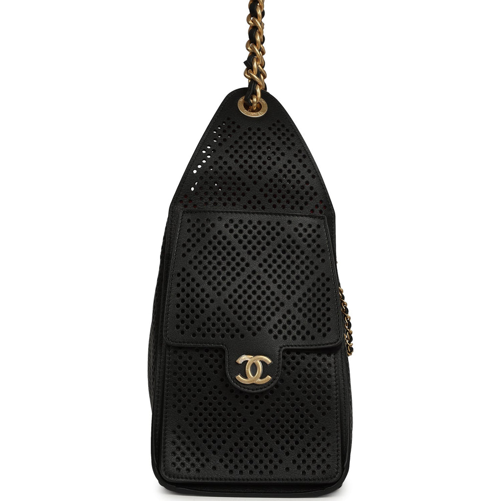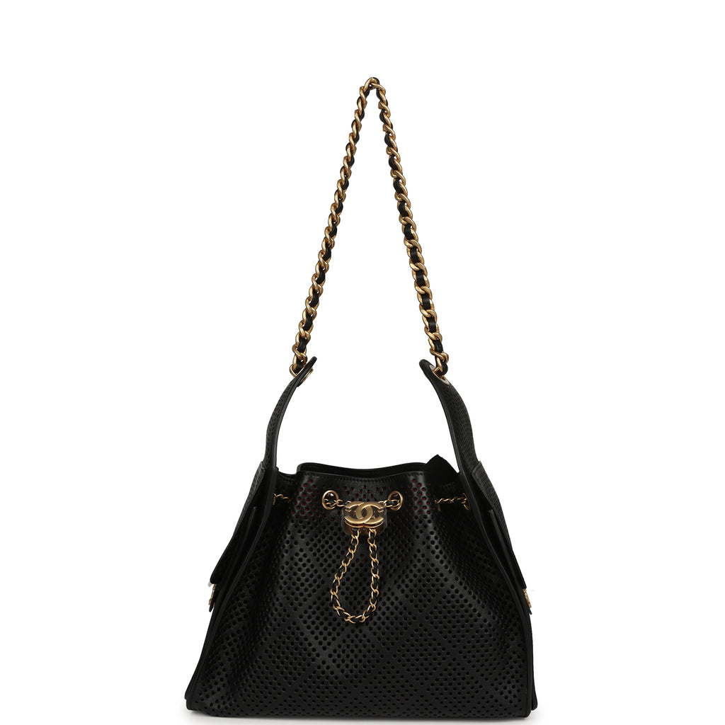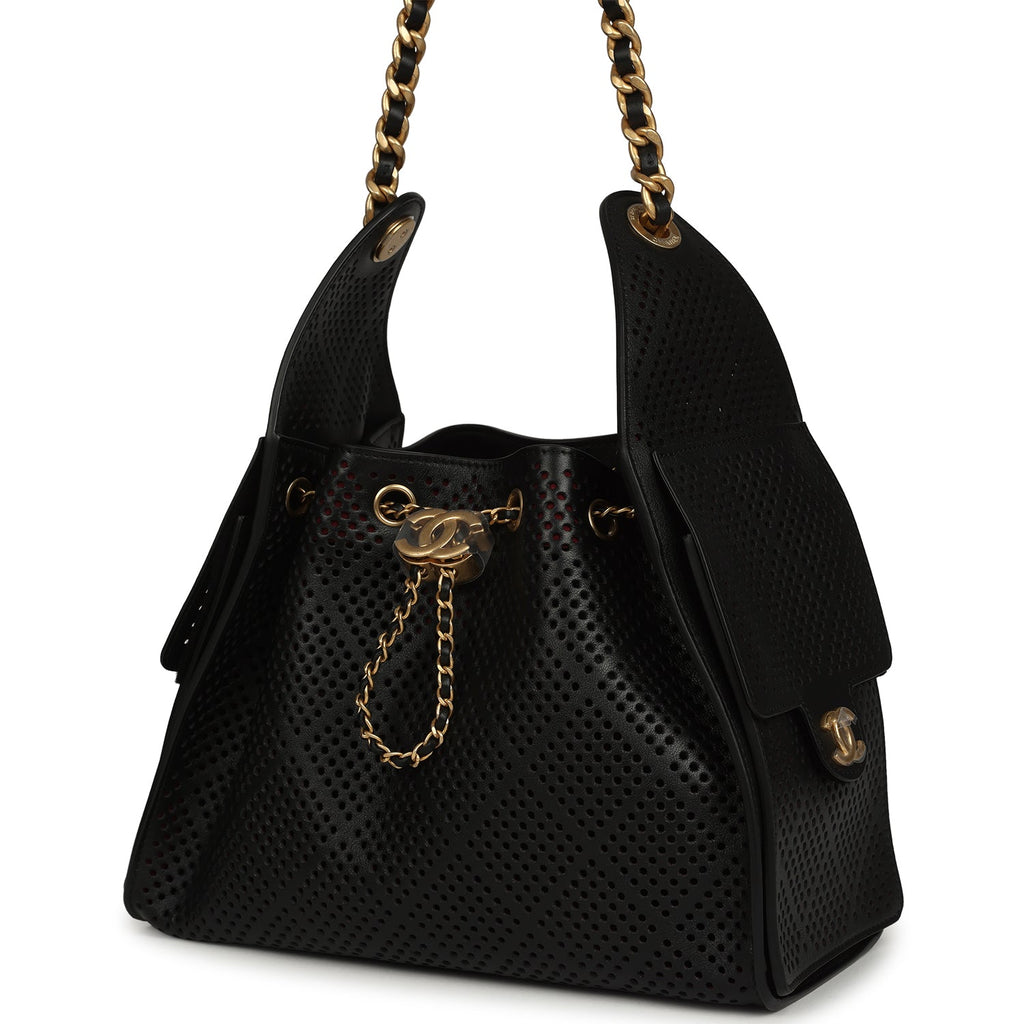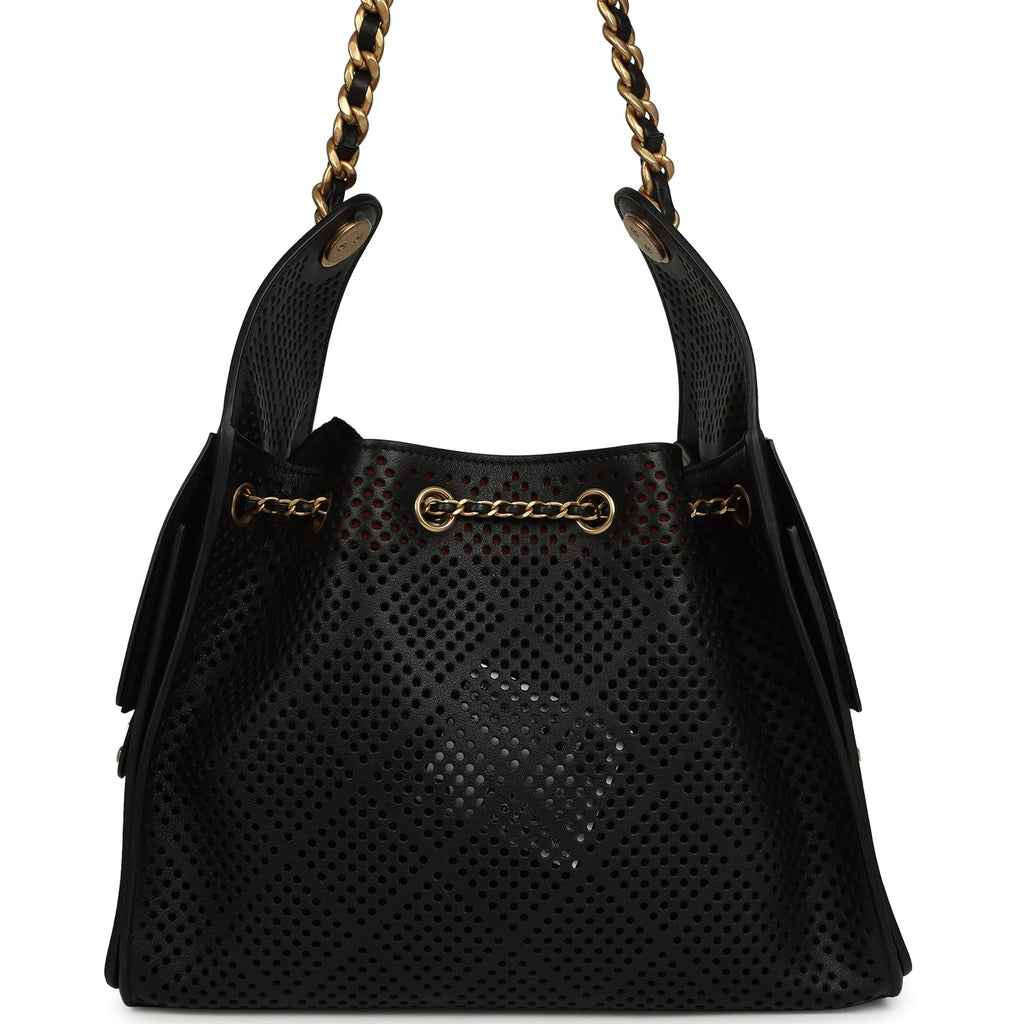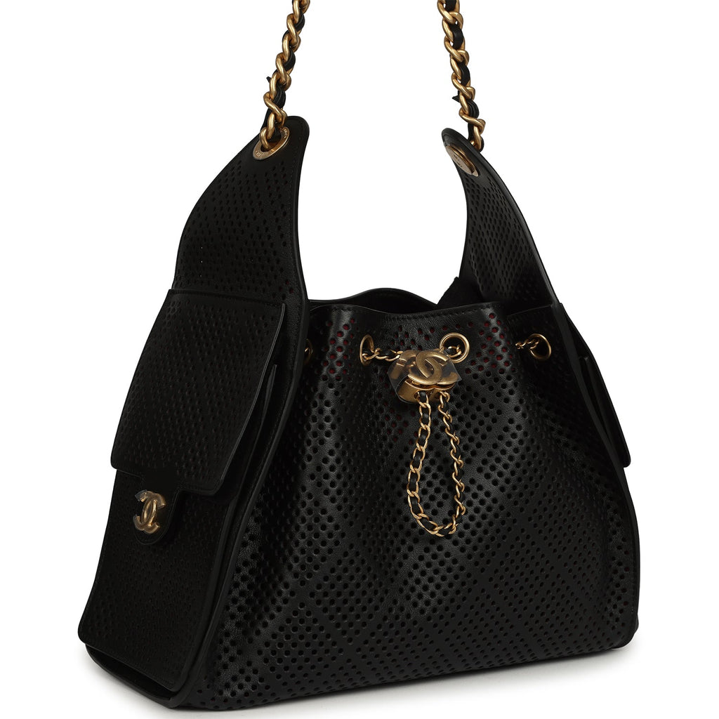 Chanel Small 25 Hobo Bag Black Perforated Calfskin Antique Gold Hardware