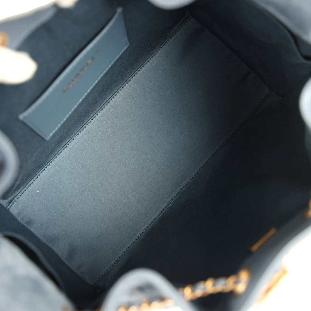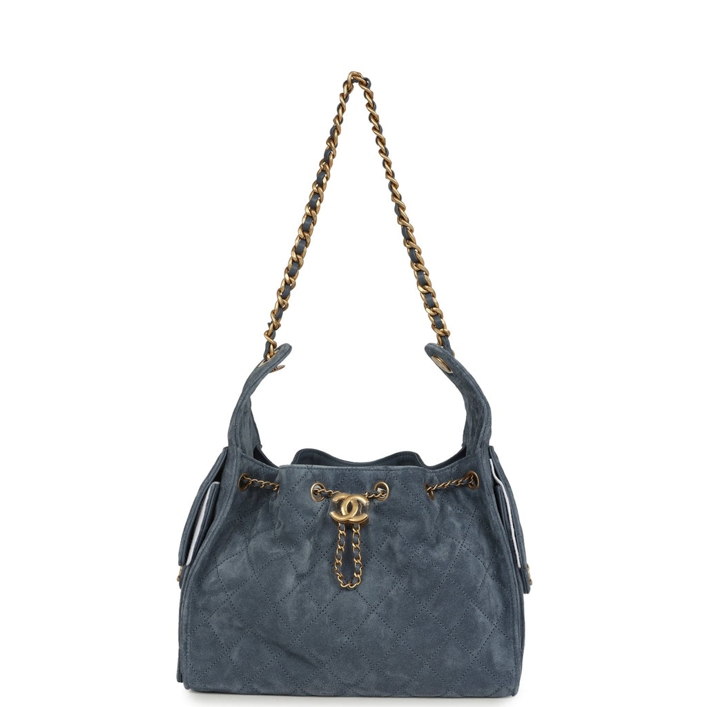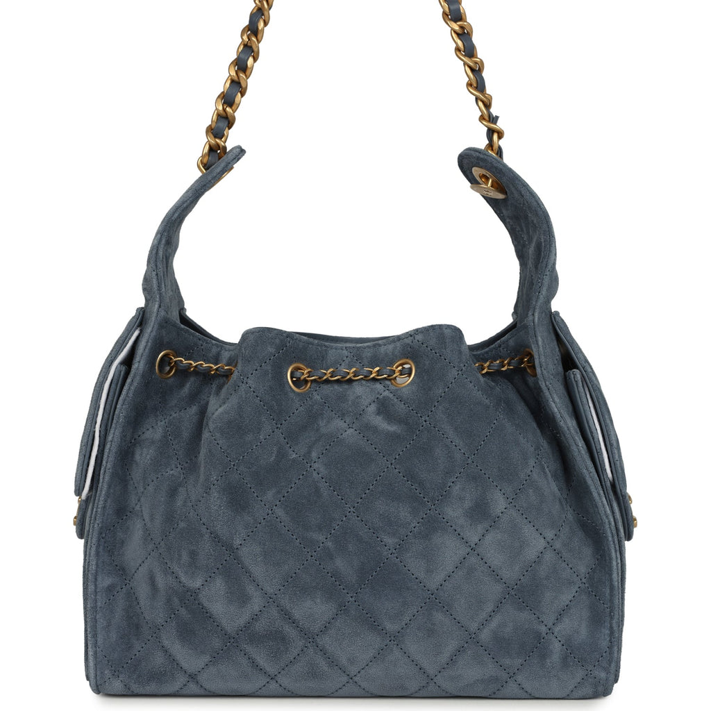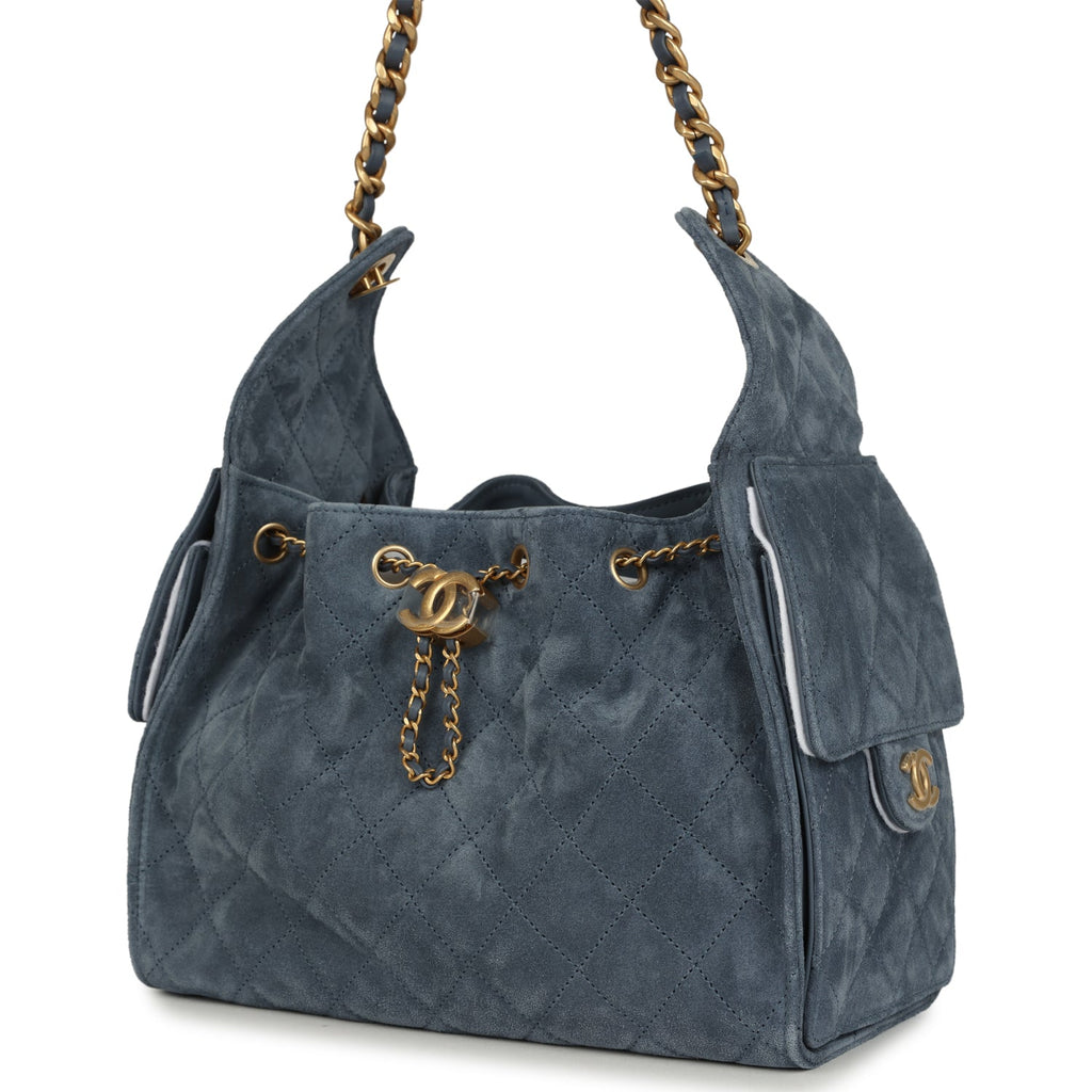 Chanel Small 25 Hobo Bag Blue Suede Antique Gold Hardware