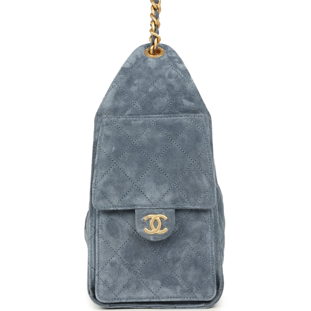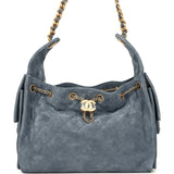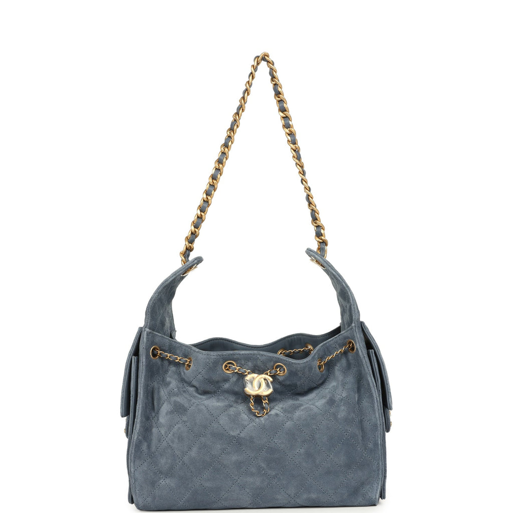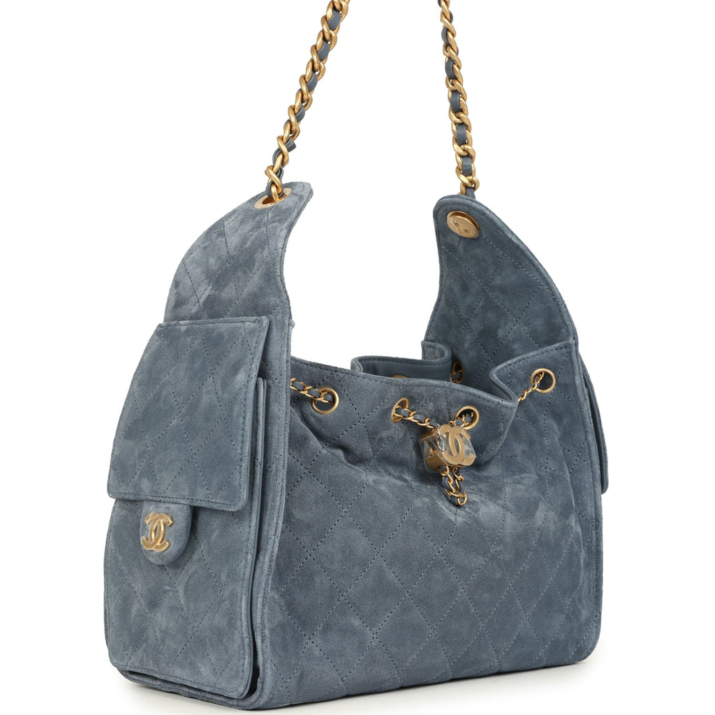 Chanel Small 25 Hobo Bag Blue Suede Antique Gold Hardware