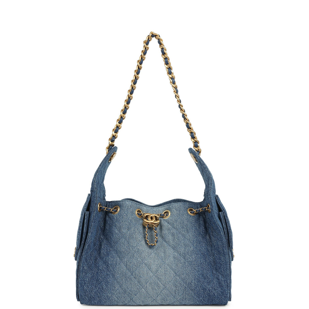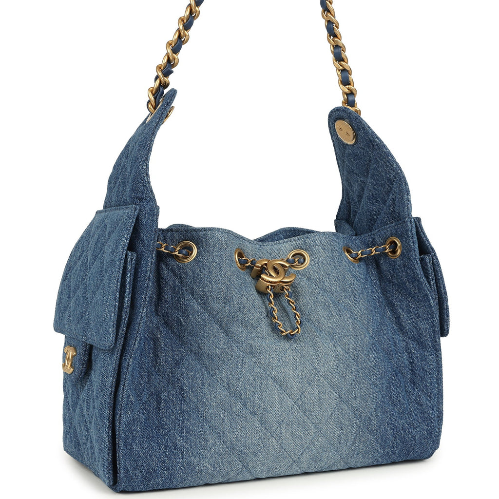 Chanel Small 25 Hobo Bag Blue Washed Denim Antique Gold Hardware