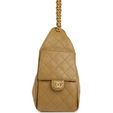 Chanel Small 25 Hobo Bag Dark Beige Caviar Antique Gold Hardware