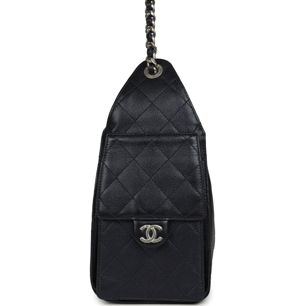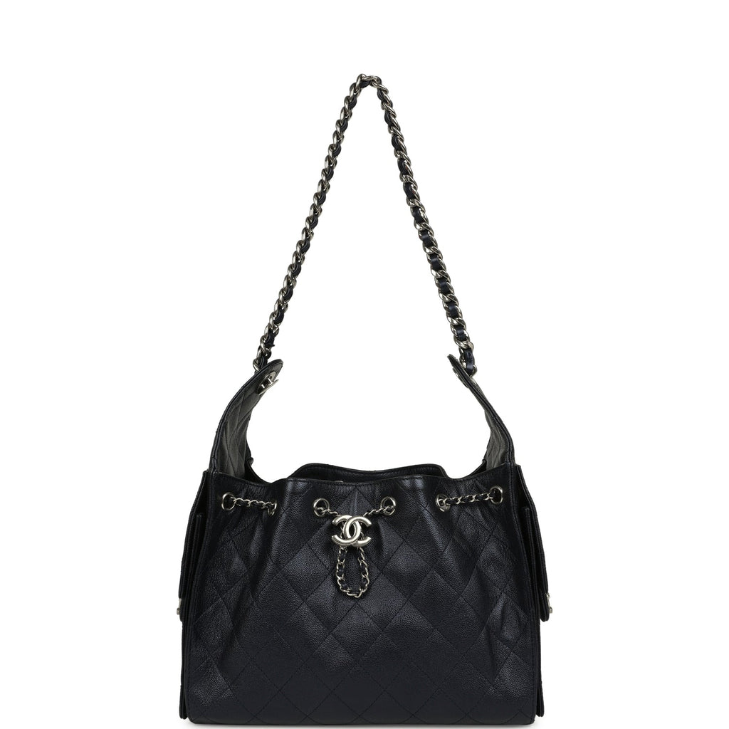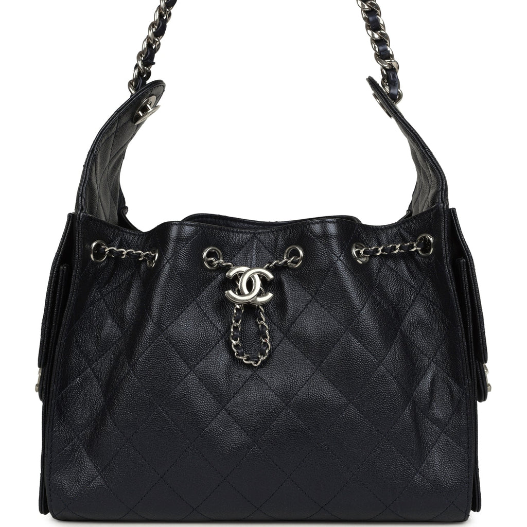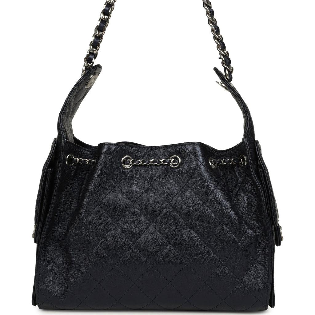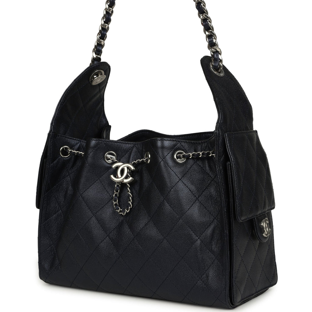 Chanel Small 25 Hobo Bag Dark Blue Metallic Caviar Silver Hardware